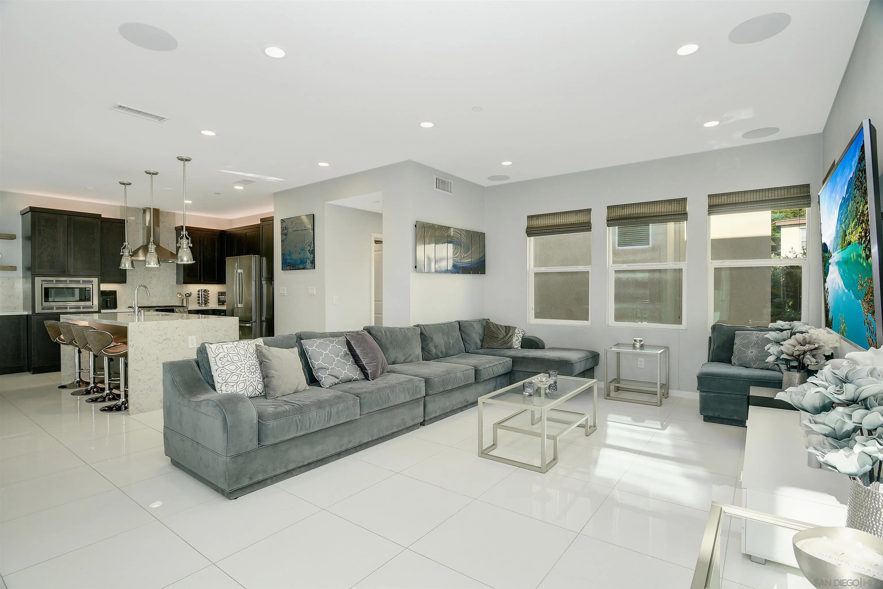 Experience the ultimate in modern luxury living from this detached residence in the Apex Development, an esteemed community within the newly developed Civita. Nestled atop a tranquil scenic hill, the location invites easy access with its proximity to beaches, downtown, scenic hiking trails, and a wealth of experiences waiting to be embraced. This stunning residence with 4 spacious bedrooms, 3.5 bathrooms, a home office, solar and 2-car attached garage, elevate the concept of single-family living to a new level. Flooded with natural light, the spacious interiors seamlessly blend indoor and outdoor living through inviting patios. Every inch exudes casual elegance with designer-appointed features, luxurious details,and upgraded Bosch appliances, that redefine the art of living. The upper level accommodates 3 bedrooms and a conveniently located laundry room, while the lower level unveils a masterfully designed 4th bedroom, presenting a private retreat with a walk-out patio adorned with a captivating fire pit seating area. Tucked away in a tranquil locale, this residence boasts owned solar electricity, central air conditioning, and ameticulously finished epoxy garage for two cars, ensuring the epitome of San Diego living. Beyond the confines of your luxurious home lies avibrant community, offering a 14-acre park that hosts an outdoor amphitheater, splash pad, and inviting picnic tables amidst a communitygarden. A clubhouse, pools, spa, an exclusive state-of-the-art fitness center, and an array of additional amenities await, making this residencethe ultimate destination.