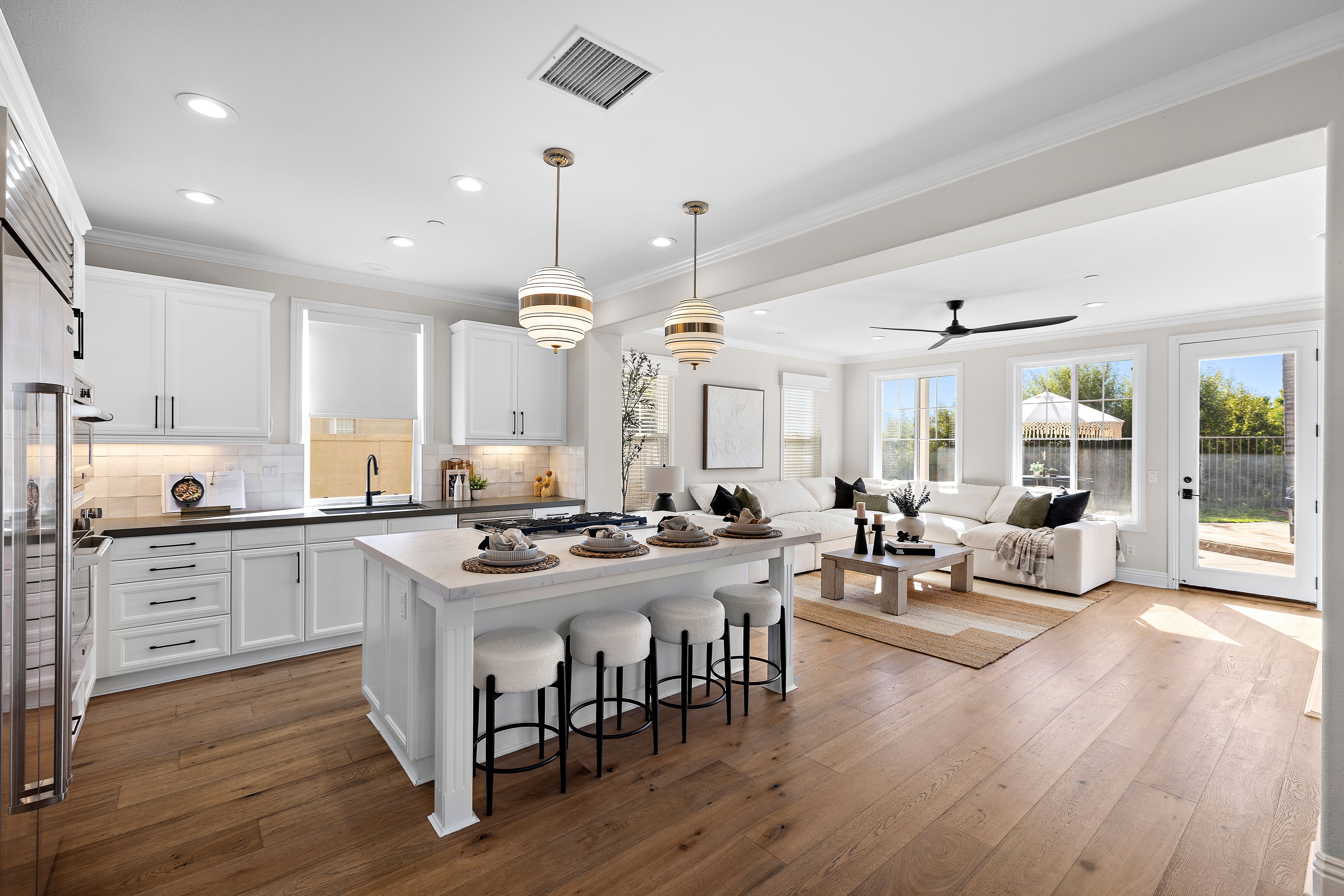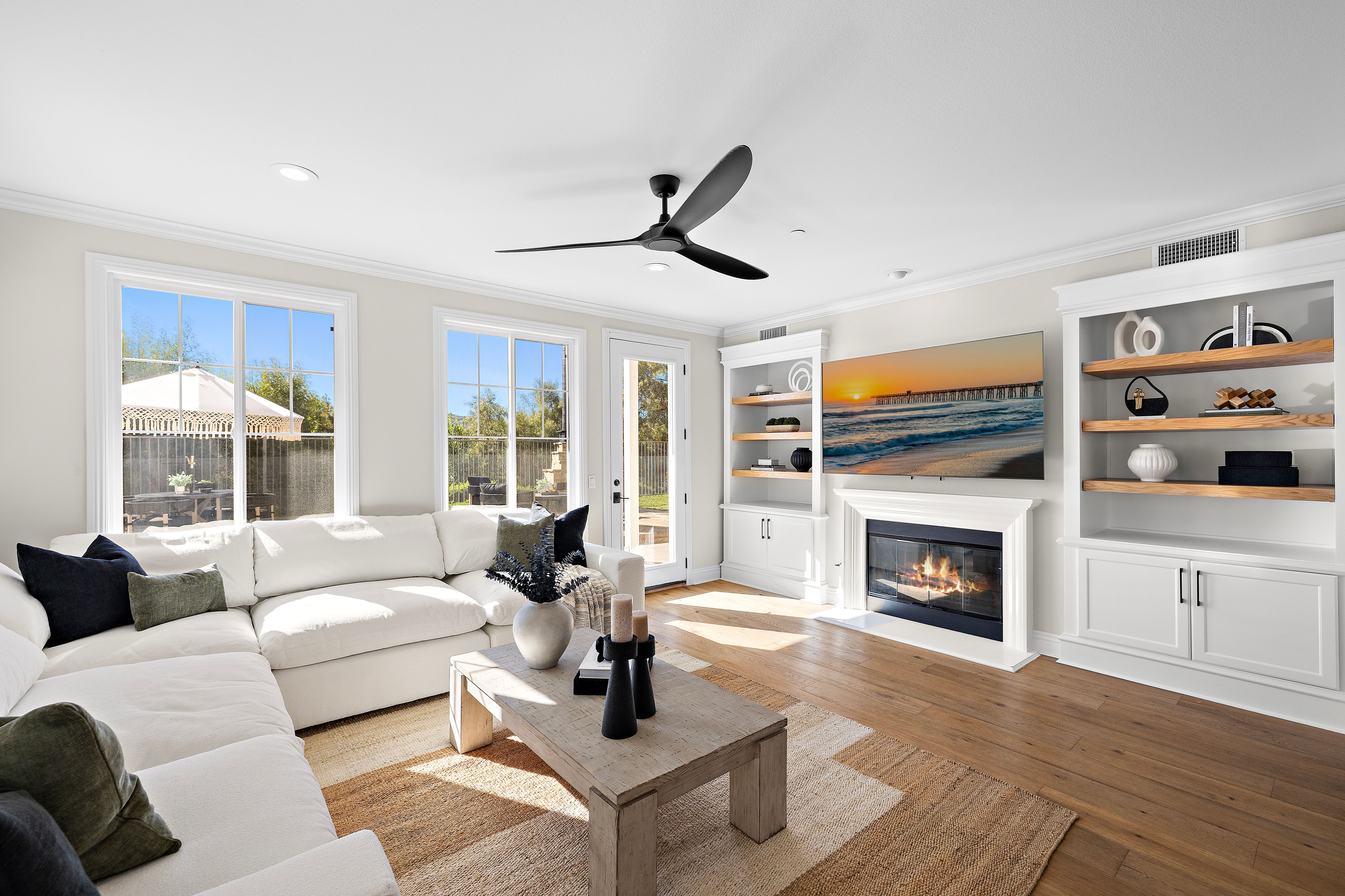 Welcome to this stunning residence where modern comfort meets California coastal charm. A graceful entry welcomes you into an open, light-filled floor plan — where sweeping windows, tasteful finishes and spacious rooms invite daily life and effortless entertaining. Cook and entertain with ease in the entertainers-inspired kitchen. Large built-in fridge and top of the line appliances marry perfectly with the Quartzite counters and ample cabinetry. Spacious living areas flow seamlessly along with the gorgeous wood flooring, offering flexibility for family time or relaxing evenings. The private and expertly landscaped yard and patio right off the main living area calls for hosting guests, eating al fresco or settling in for a cozy moment in front of the built-in custom fireplace. Additionally downstairs, the flexibility provided for visiting guests is found with a downstairs bedroom and full bath. Upstairs, the primary suite provides a private retreat. The endless view of the hills spans the space, leading into the recently remodeled bathroom that features a large shower, separate soaking tub and spacious walk-in closet with custom organizers. Two additional bedrooms joined with a jack-n-jill bath and office nook upstairs offer the perfect layout for the family. The home has leased solar panels. As a resident of Talega, you enjoy exclusive access to resort-level amenities just steps from your door: pools (heated lap + recreation), splash areas, sports courts, scenic hiking and biking trails, lush parks, and more. Combine that with top-rated schools, nearby beaches just minutes away, and the vibrant coastal-town lifestyle of San Clemente — and you’ll see this home is more than a house, it’s your new way of life.