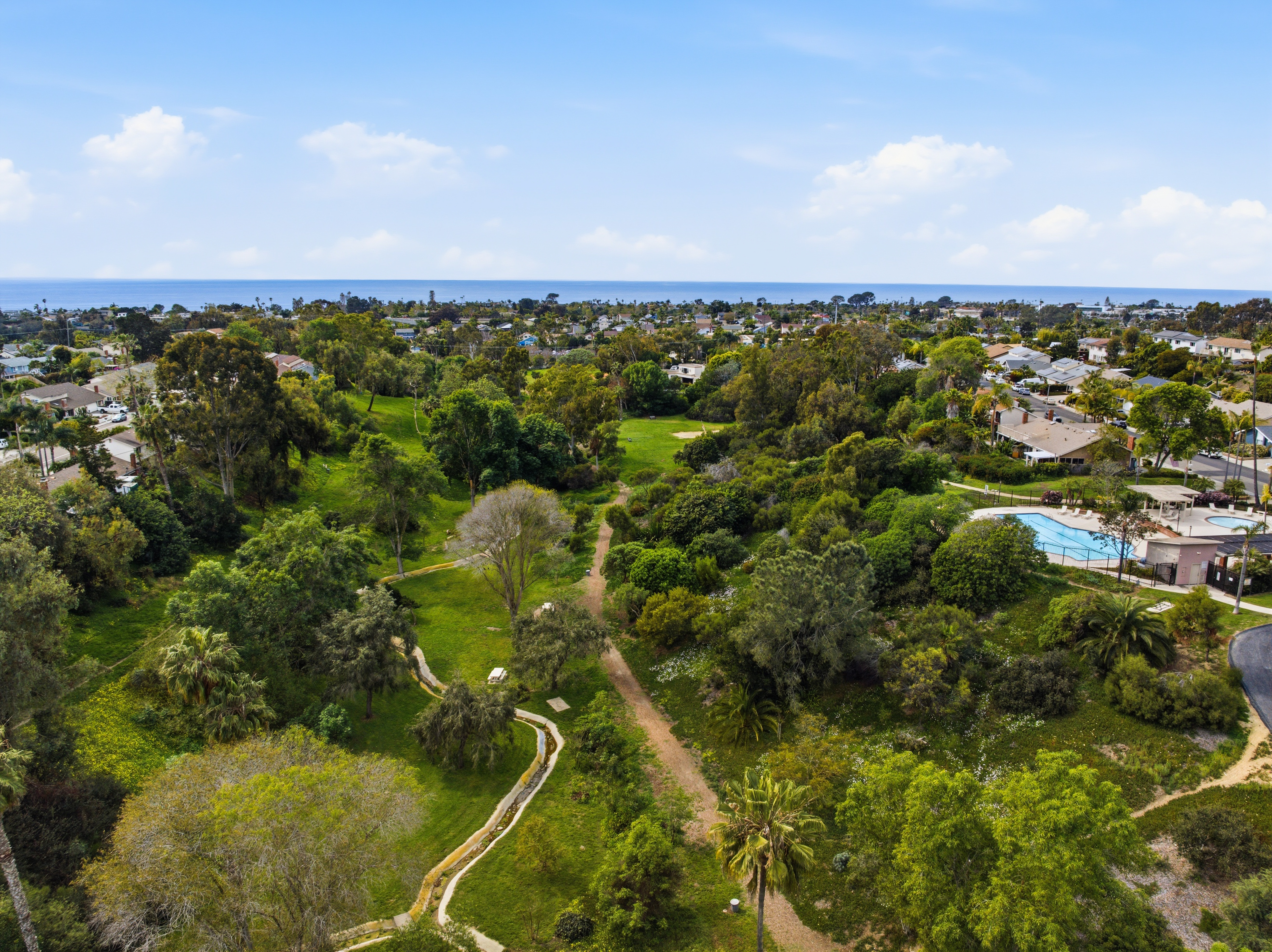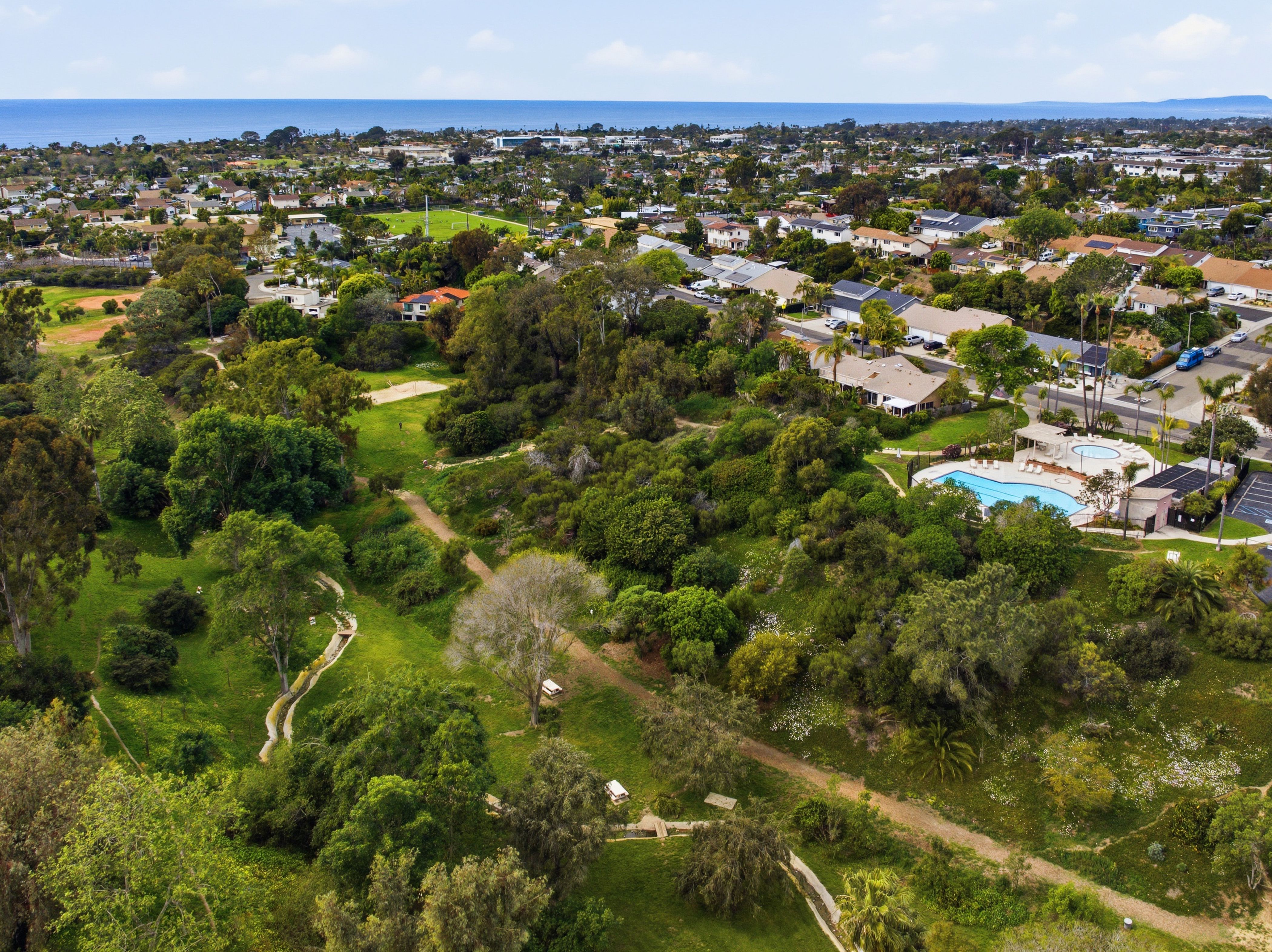 This beautifully renovated 3BR/3BA Cardiff residence with an attached garage and expansive patio has been thoughtfully and elegantly updated throughout. Ideally positioned on a premium end-unit lot, the home offers exceptional privacy along with serene landscaped views and subtle peek ocean glimpse, just 1.5 miles to the sand! A rare opportunity, this townhome features Fee Simple ownership—not condominium-owned—while still enjoying the advantages of a well-managed homeowners association that shares responsibility for many maintenance aspects, offering both independence and convenience. Located within Park Place Bluffs, residents enjoy access to an impressive 25-acre, dog-friendly park featuring scenic hiking trails, a swimming pool, volleyball courts, and a dedicated RV parking area. This exceptional setting combines refined living with resort-style amenities, making it an outstanding place to call home.