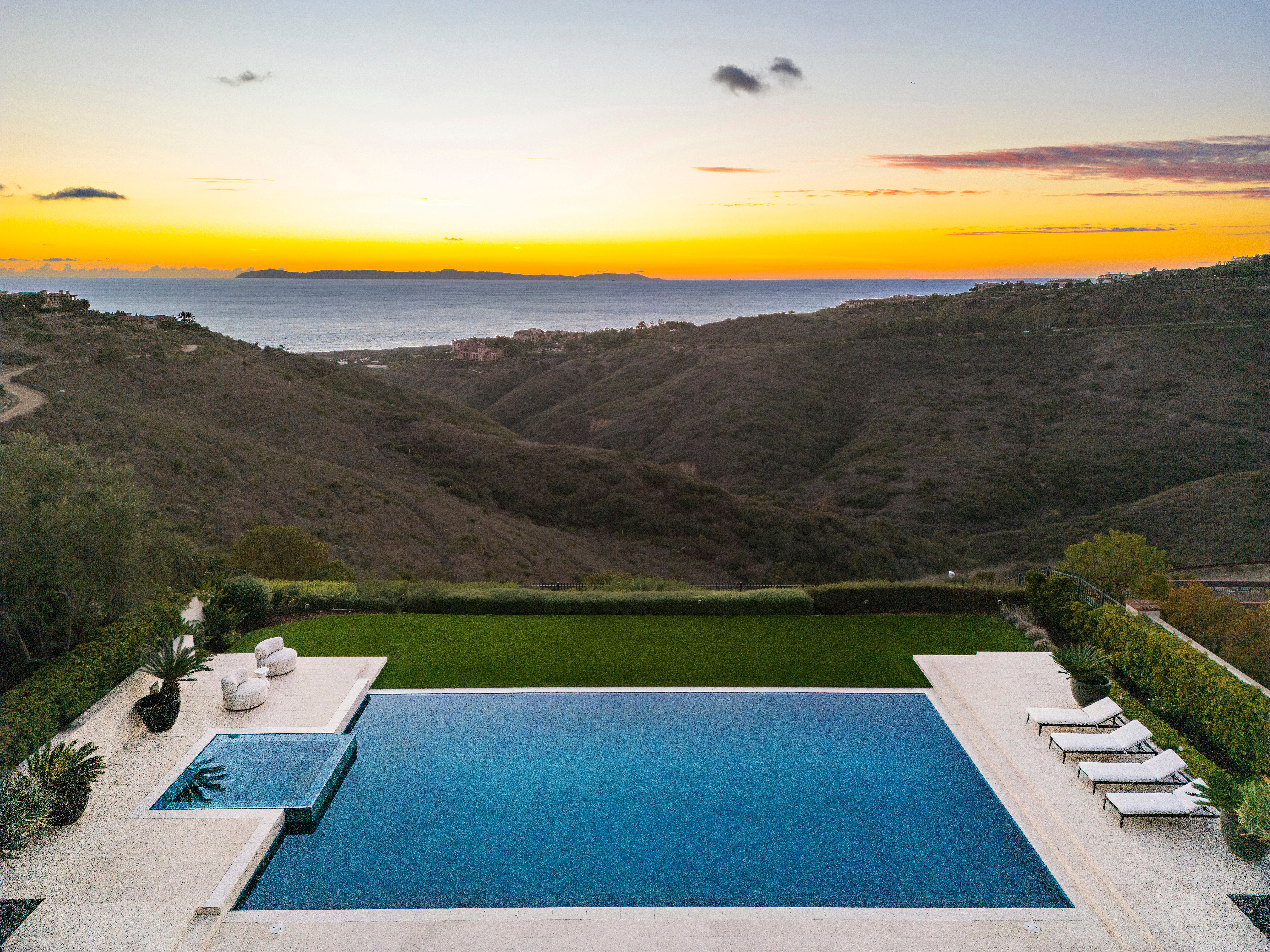 Perfectly positioned on an expansive 20,027-square-foot front-row lot in the exclusive Coral Crest enclave of Crystal Cove, 11 Spinnaker captures the essence of modern coastal luxury with sweeping, unobstructed views of the Pacific Ocean, coastline, and rolling hills. Built by The New Home Company and barely lived in since completion, this 5-bedroom, 6-bath residence spans approximately 6,400 square feet and combines architectural sophistication, panoramic vistas, and exceptional privacy. A private motor court, framed by dual two-car garages, leads to a grand entry courtyard with a fireplace—creating a warm, welcoming introduction to the home’s seamless indoor-outdoor flow. Sliding glass walls open to light-filled living spaces anchored by an open-concept great room, gourmet kitchen, and breakfast area. Designed for both grand entertaining and relaxed living, the home features a climate-controlled wine room and a secondary catering kitchen to support effortless hospitality. The main level hosts three ensuite bedrooms, including a primary suite, while the upper-level features two additional ensuite bedrooms—one serving as a secondary primary suite with stunning ocean views—and a versatile bonus room. A private guest casita with its own entrance off the courtyard provides ideal accommodations for guests or multi-generational living. Walls of glass disappear to reveal a resort-caliber backyard featuring a magnificent pool, spa, and covered loggia—all set against the backdrop of the Pacific. The home’s open layout, exceptional natural light, and thoughtful finishes, including white oak flooring and stone countertops, create a turnkey living experience that blends elegance with livability. Located within the 24/7 guard-gated community of Crystal Cove, residents enjoy access to The Canyon Club, a private social and recreational venue, as well as direct entry to Crystal Cove State Park, pristine beaches, and the nearby Crystal Cove Promenade for world-class shopping and dining. 11 Spinnaker offers a rare front-row opportunity to experience the finest in Southern California coastal living—where luxury, design, and natural beauty converge.