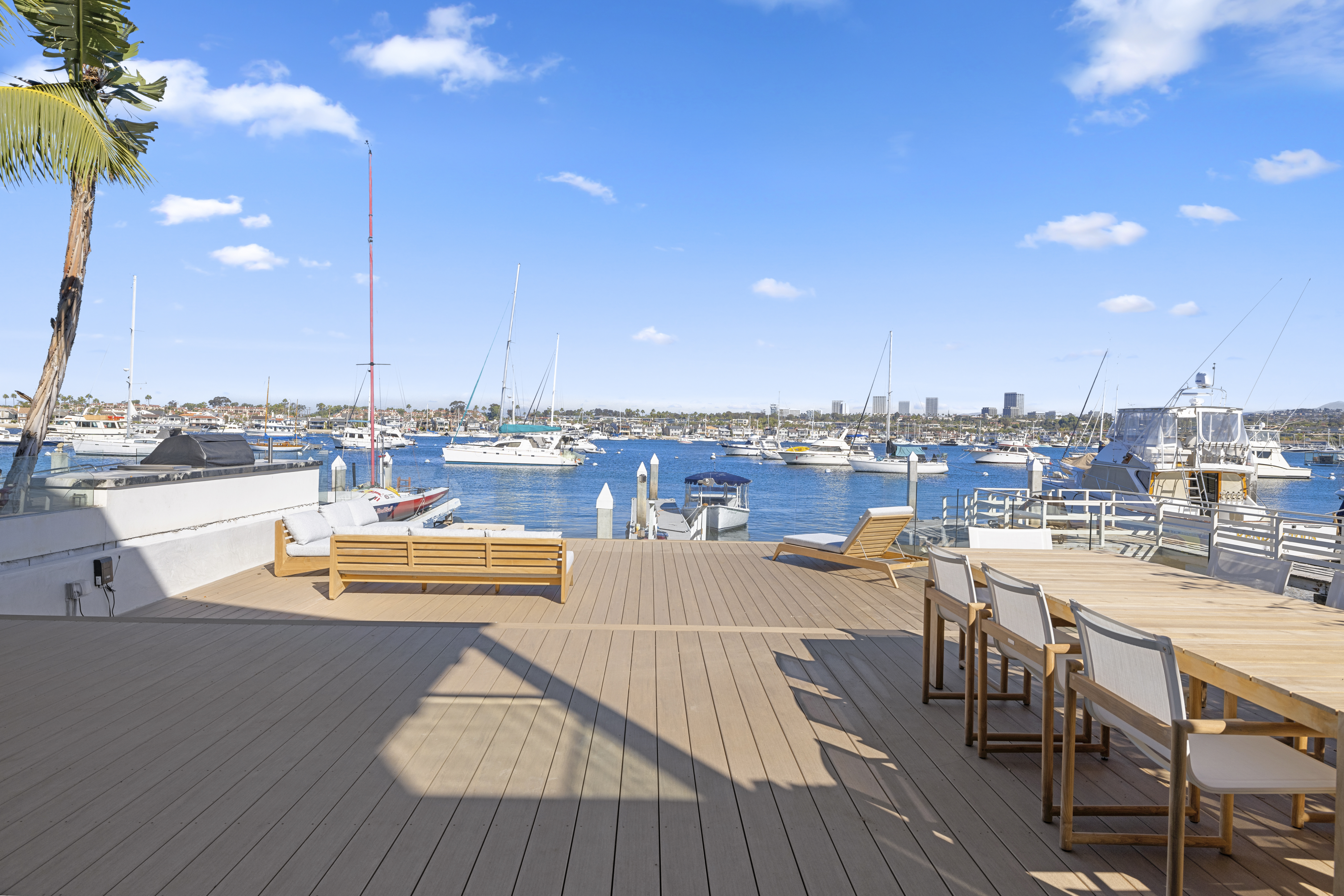 A rare lease opportunity sits on the water at 1126 East Balboa Boulevard on the highly coveted Newport Beach Peninsula. Featuring 3 bedrooms and 2.5 bathrooms, the floor plan is great for everyday beach living and entertaining. An open kitchen allows for views of the over-sized deck and bay from every angle of the main level. The deck leads to a 72ft private dock which can hold up to an 80ft boat and is the ideal place to watch the boats pass by, and enjoy sunsets, or even the city lights. Entirely remodeled throughout with oak hardwood flooring, a bunk room, and marble tiling in each of the bathrooms makes this home move-in ready. Within walking distance of the Wedge, the Balboa Ferry, and some of the West Coast's best beaches and restaurants.. this is truly a one of a kind rental opportunity on the water.