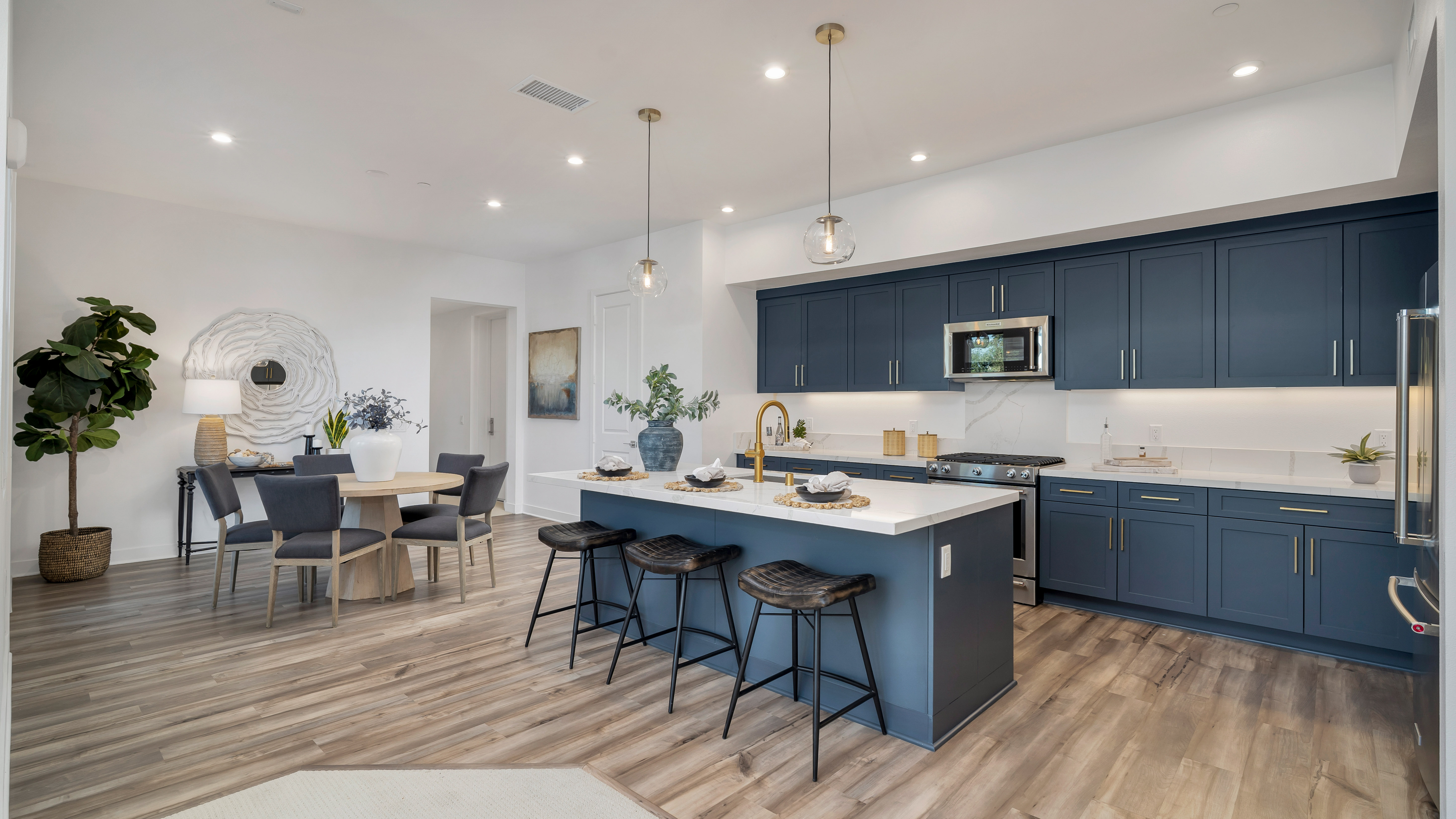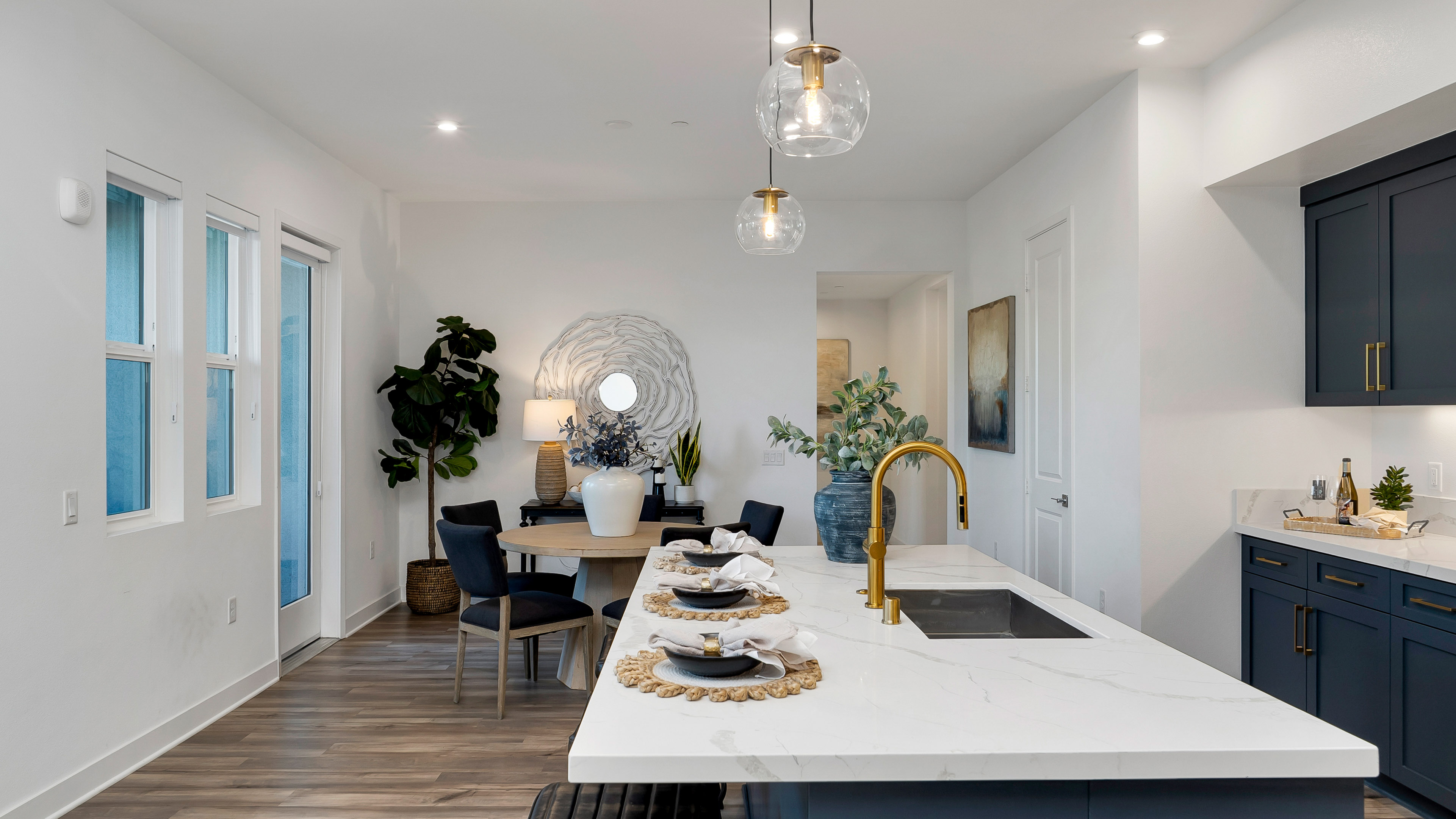 Welcome to 1130 S Urbana Street, a beautifully upgraded residence in the sought-after 100 West community by Toll Brothers, right in the heart of Anaheim’s vibrant resort district. This light-filled home features an open, modern floor plan with luxury vinyl flooring, quartz countertops, and thoughtfully selected designer finishes throughout. Large windows bring in abundant natural light, creating an airy, inviting feel that flows seamlessly from the living area to the kitchen, perfect for everyday living and entertaining alike. Step outside to your private patio, an ideal spot for morning coffee or unwinding at the end of the day. The spacious primary suite is a true retreat, complete with a spa-inspired shower and a generous walk-in closet. Additional highlights include a dedicated laundry room, paid solar, a private single-car garage, and an additional assigned parking space, a rare and valuable convenience. Residents of this gated community enjoy resort-style amenities including a pool, spa, and landscaped green spaces, all while being moments from Disneyland, Angel Stadium, the Honda Center, and major freeways for easy access throughout Orange County. This is low-maintenance, upscale living in one of Anaheim’s most dynamic locations, perfect for buyers seeking style, comfort, and convenience in a newer luxury community.