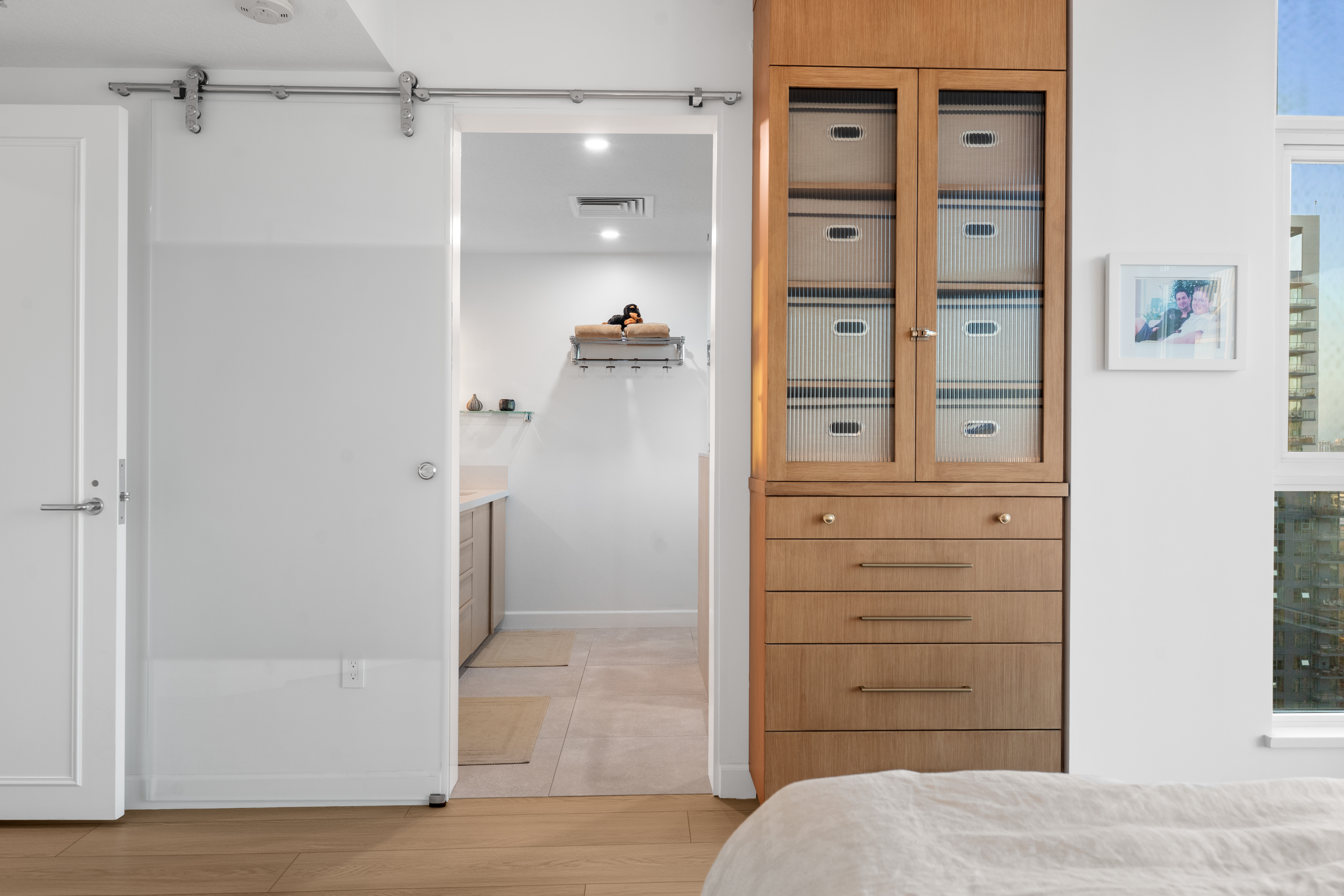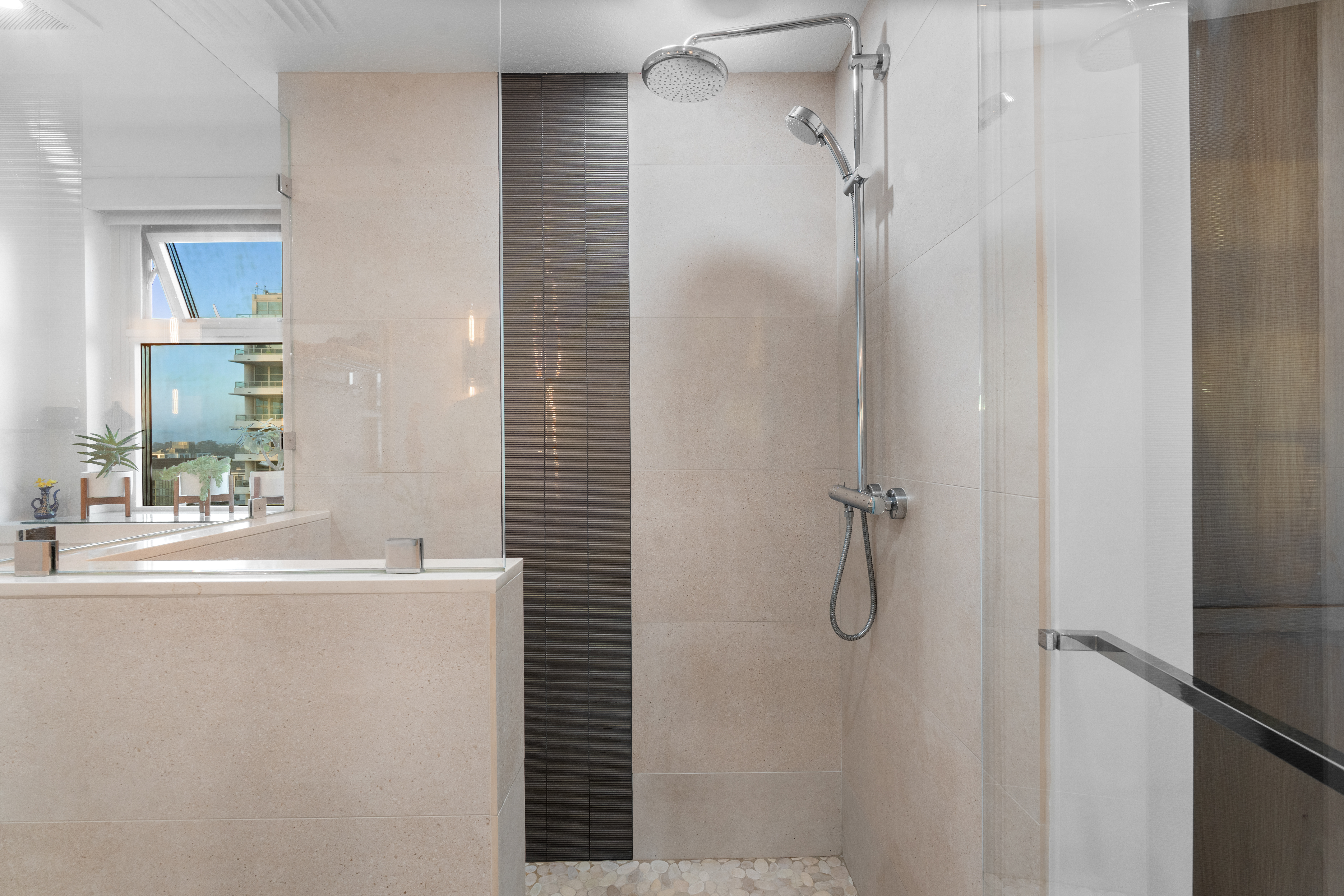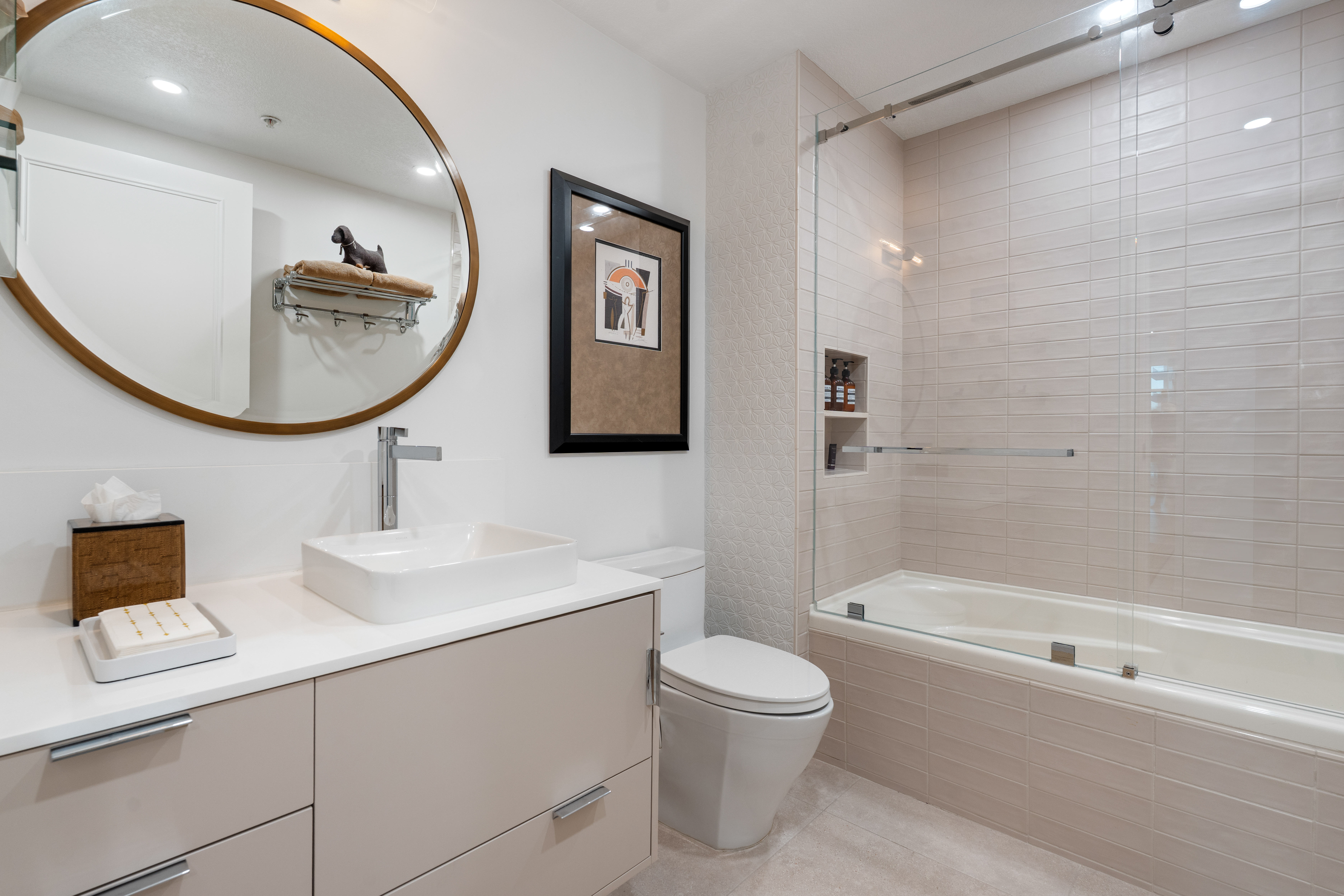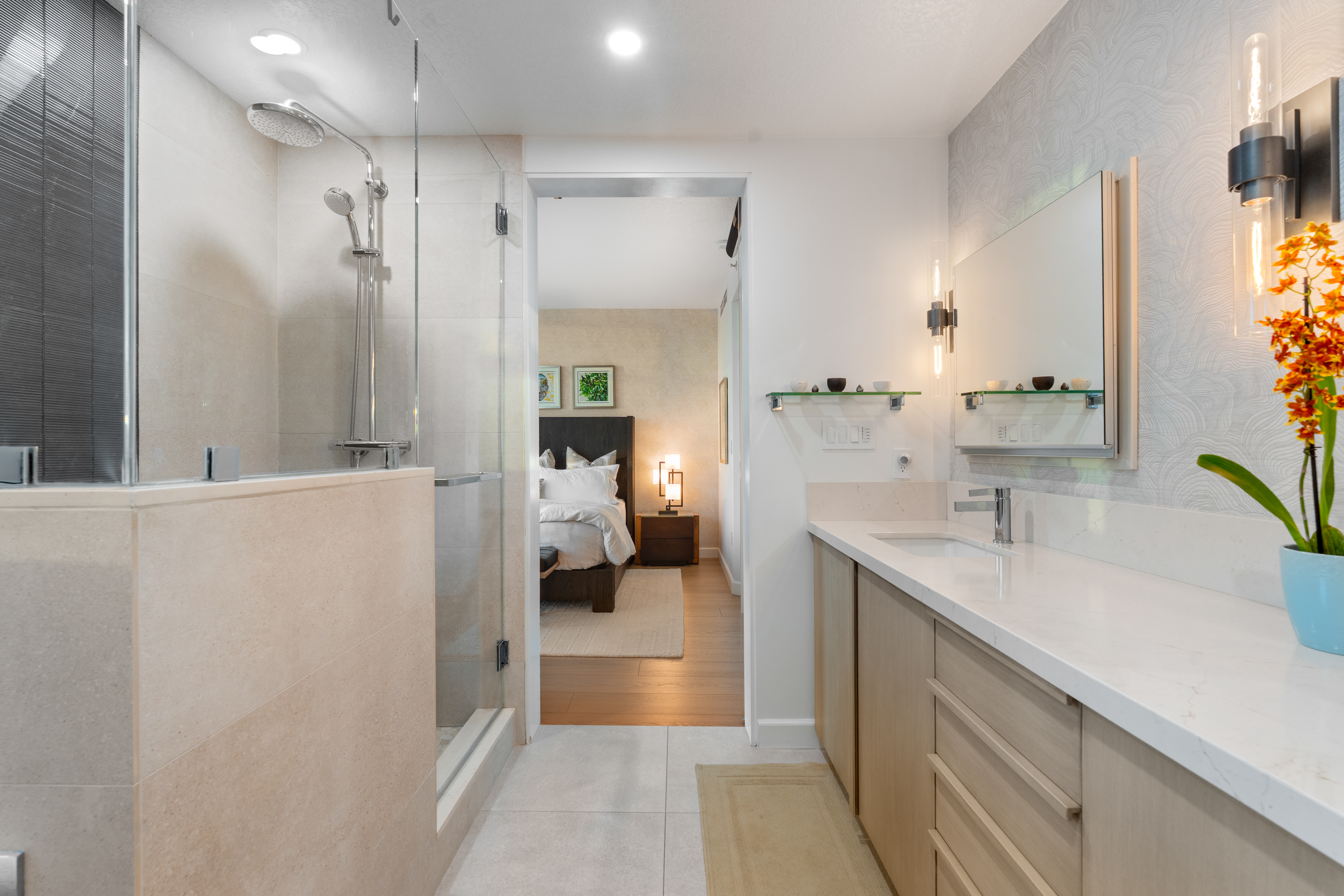Soaring high above the city on the 31st floor of the distinguished Grande North, this rare corner residence commands a front-row seat to San Diego’s most breathtaking scenery. Walls of glass unveil an ever-changing canvas of San Diego Bay, the glittering skyline, distant mountains, and the vast Pacific beyond. From sunrise to sailboat regattas, golden sunsets to SeaWorld’s nightly fireworks—every moment is a masterpiece, best enjoyed from your own private terrace in the sky. This fully remodeled and professionally designed 2-bedroom, 2-bath home has been reimagined with a focus on luxury, comfort, and functionality. Both bathrooms have been completely renovated with designer finishes and thoughtful details. The chef-inspired kitchen is equipped with new Sub-Zero and Wolf appliances, quartz countertops, and sleek custom cabinetry. Enhancing the experience throughout the home is a state-of-the-art Bang & Olufsen surround sound system, delivering rich, immersive audio. Motorized window shades, custom closets, and built-in storage offer refined ease, while every design detail has been meticulously curated. This is more than a home—it’s a lifestyle inspired by The Art of Living. Whether you’re entertaining against a sunset backdrop or enjoying a quiet morning above the bay, this residence delivers a daily experience of beauty, style, and sophistication. Welcome home!