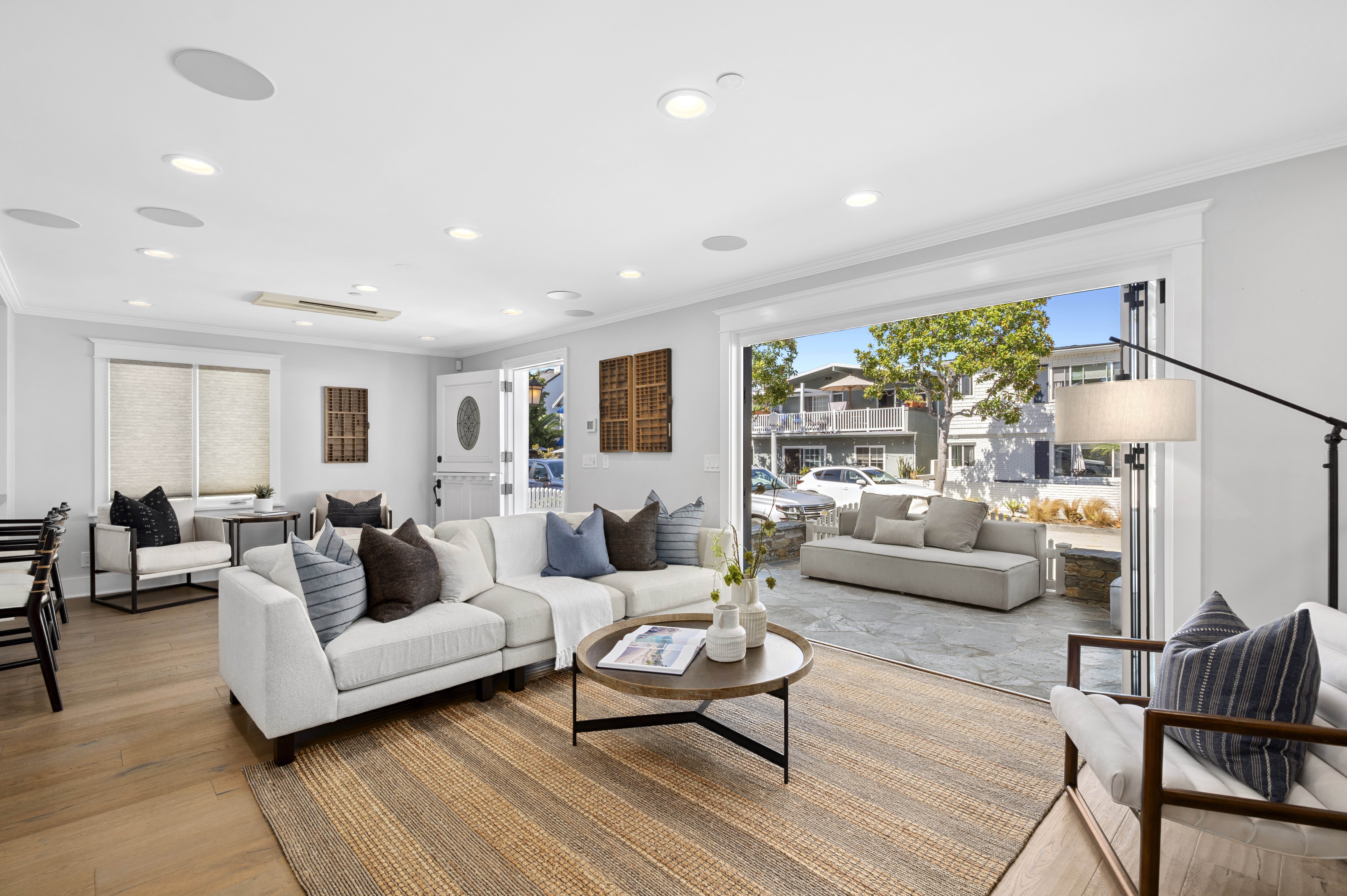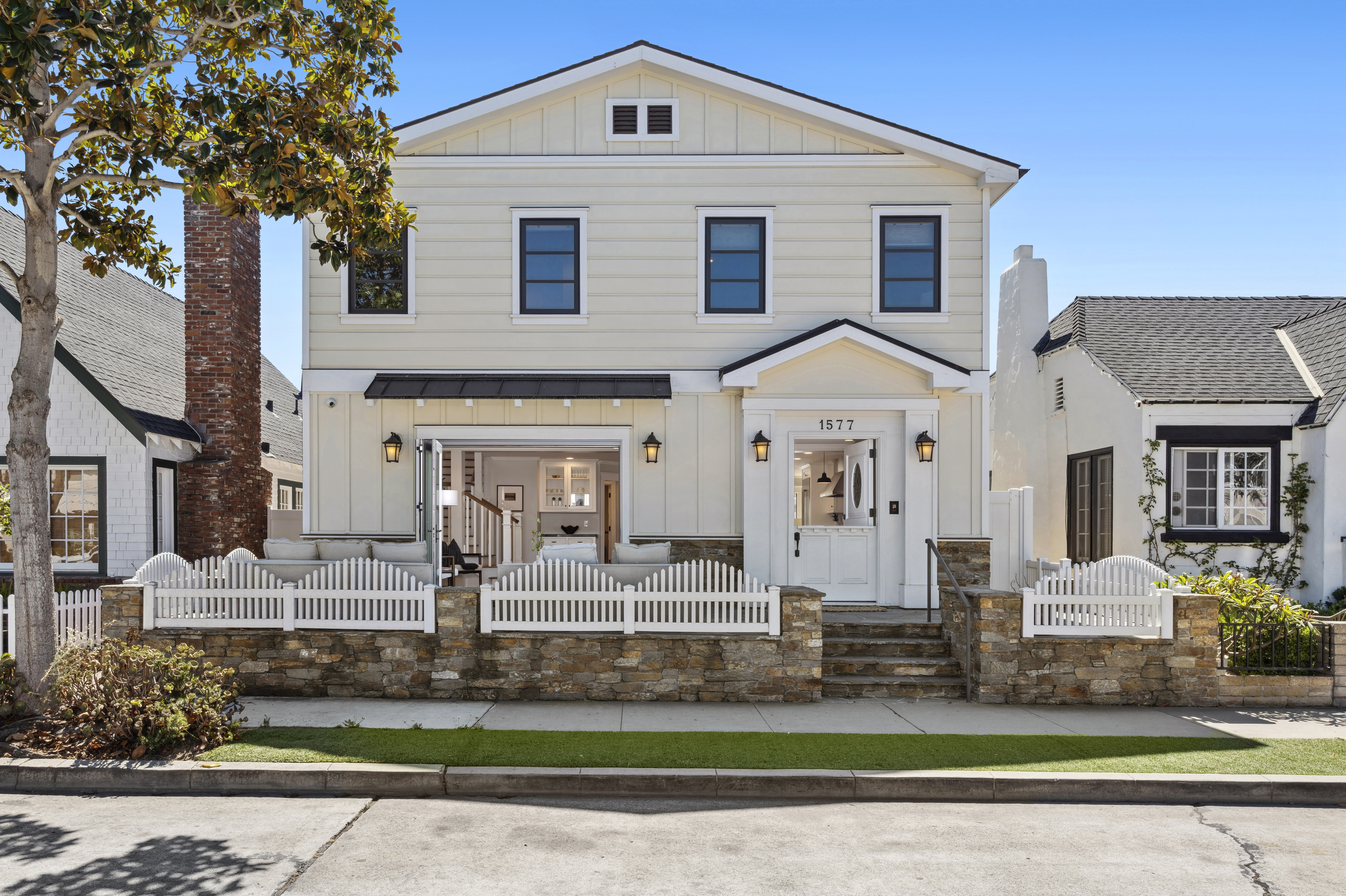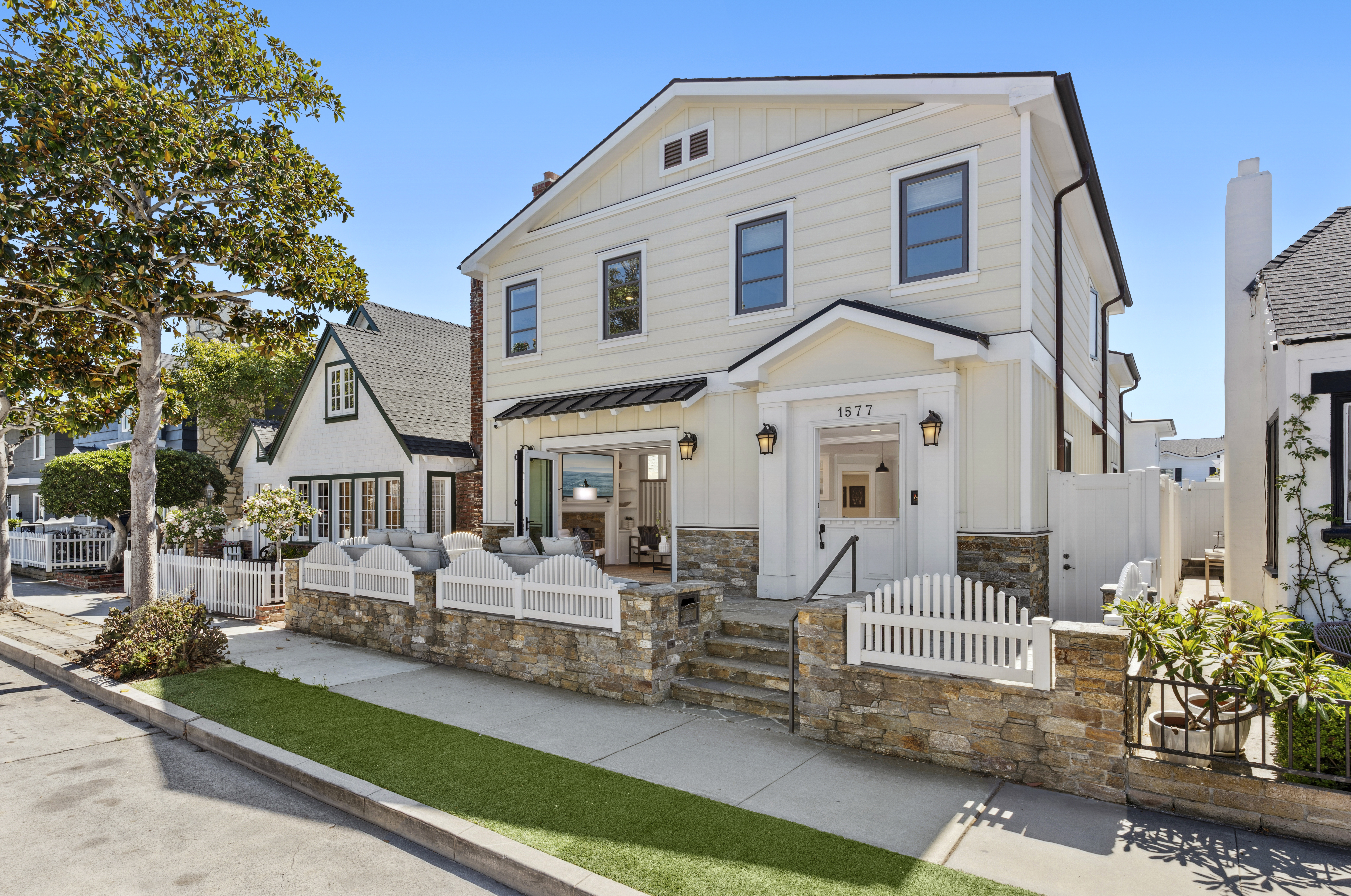 Positioned on one of the most desirable blocks of Balboa Peninsula Point, 1577 Miramar Drive presents a timeless coastal retreat just steps from both the ocean and bay. This 4 bedroom, 4 bathroom residence showcases quality craftsmanship and thoughtful design across all three levels, blending casual seaside living with elegant comfort. The main level welcomes you with a spacious front patio and a Dutch-door entry, opening to a sun-filled great room with a fireplace, custom built-ins, and a chef’s kitchen with Thermador appliances, Quartz countertops, and an adjacent dining area overlooking the private backyard—perfect for relaxed outdoor gatherings. A bedroom and full bathroom add versatility to the main level, making it great for a home office or guest’s suite. Upstairs, the primary suite offers a spacious walk-in closet and spa-inspired bath with soaking tub, dual vanities, and a walk-in shower. Just down the skylit hall are two additional bedrooms, two bathrooms, and a spacious laundry room. Crowning the home is the third floor expansive rooftop deck with sweeping city and neighborhood views, completing this timeless beach residence ideal for full-time living or a luxurious coastal escape.