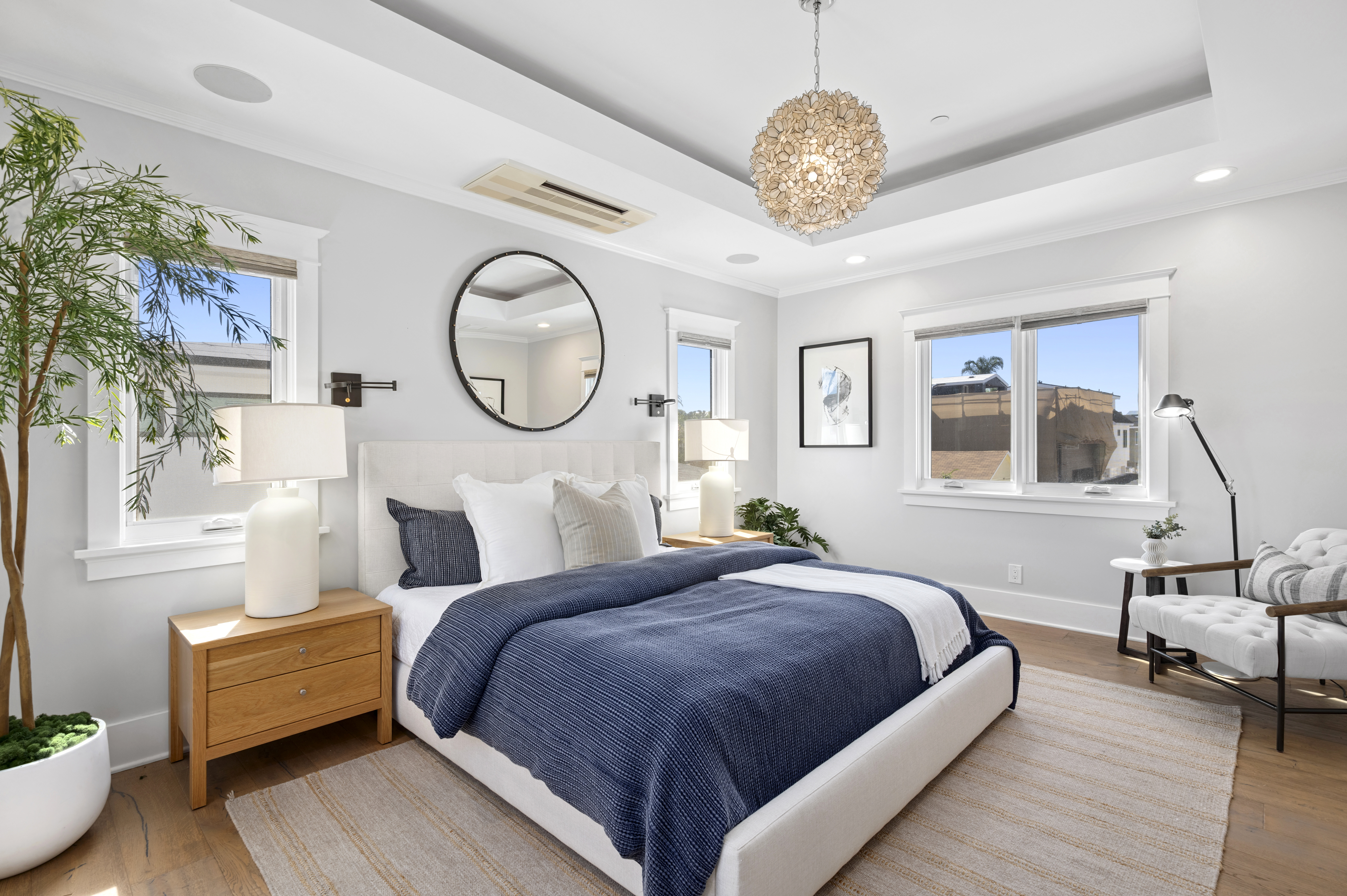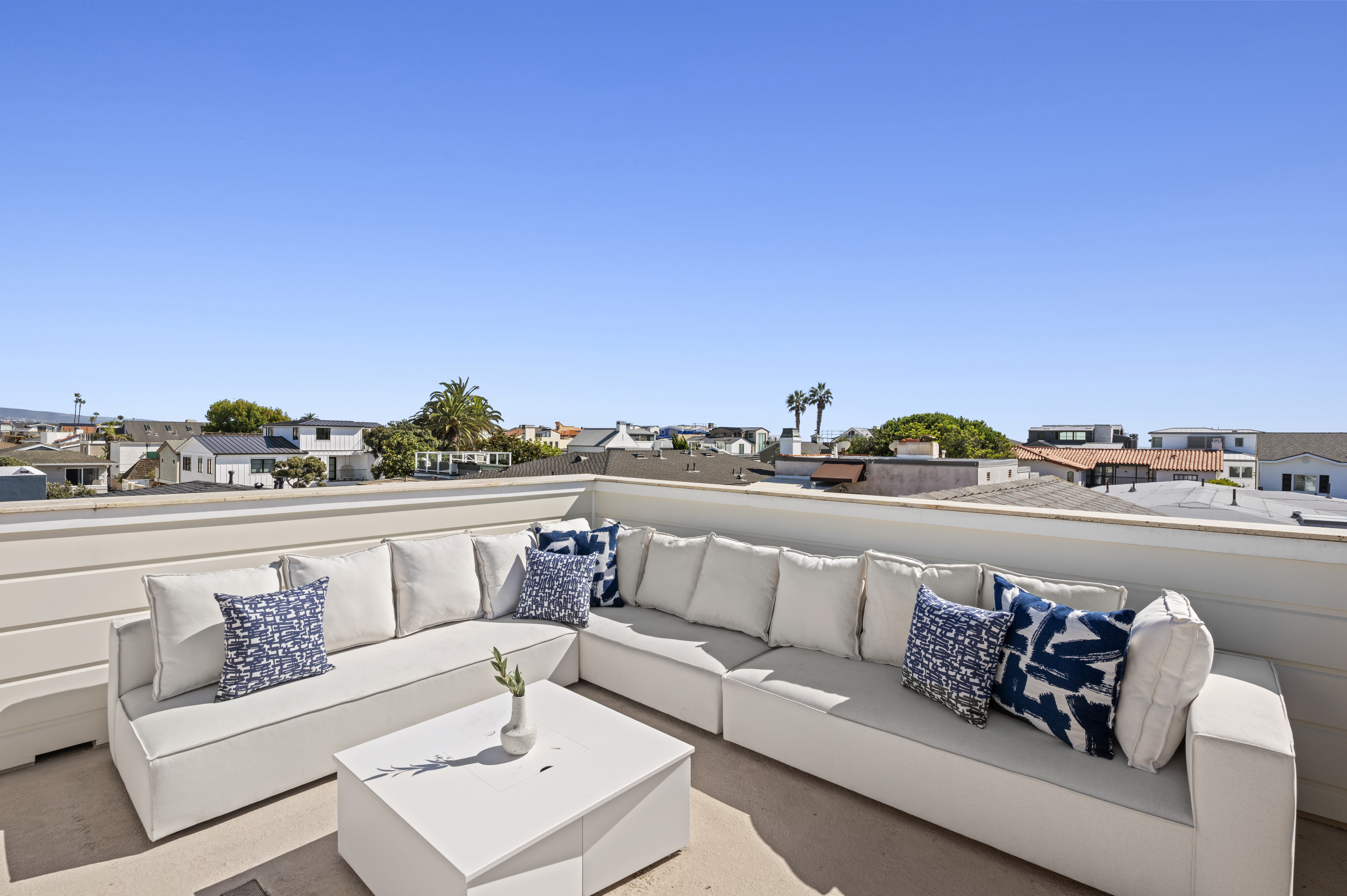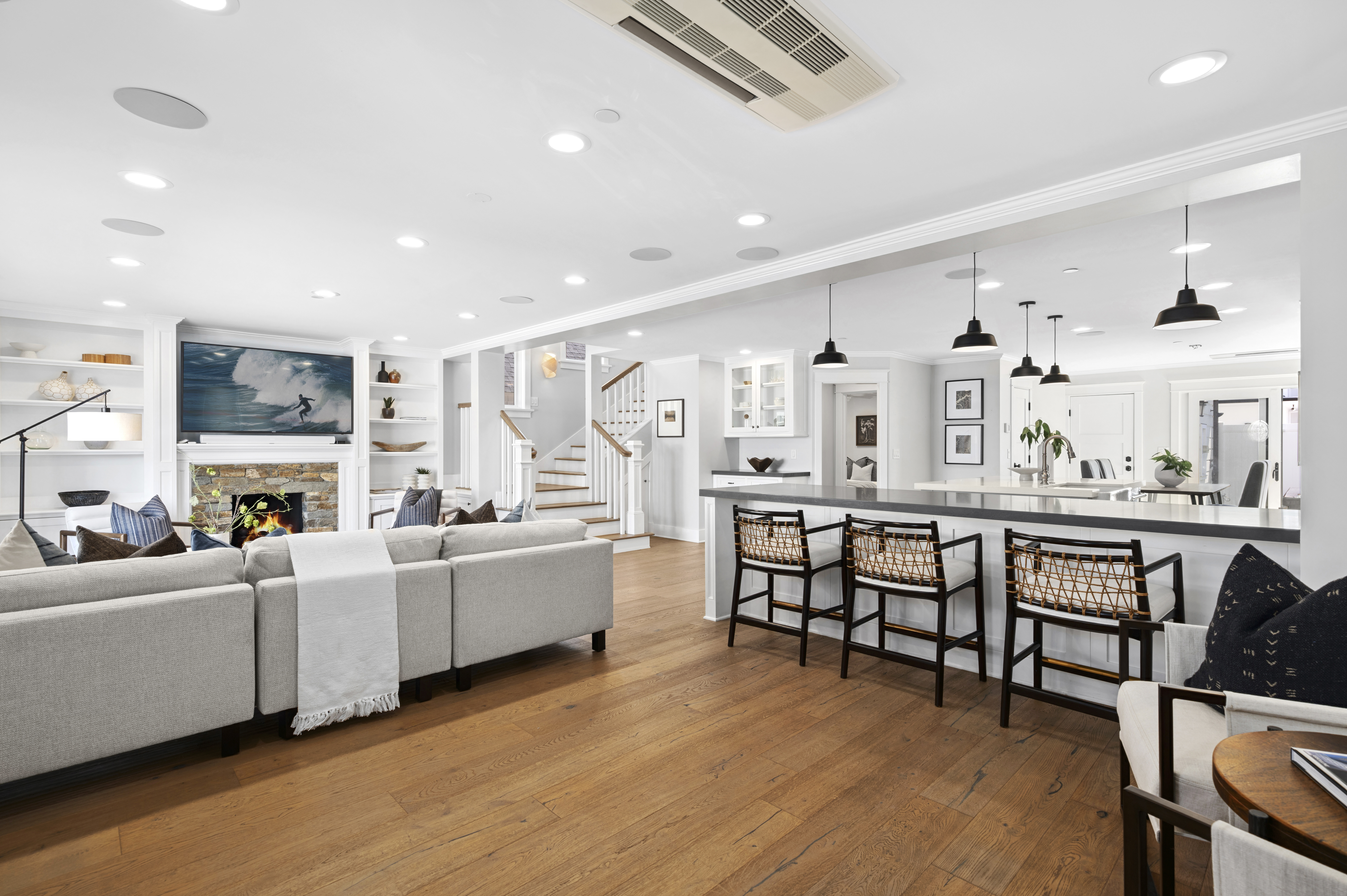 Positioned on one of the most desirable blocks of Balboa Peninsula Point, 1577 Miramar Drive presents a timeless coastal retreat just steps from both the ocean and bay. This 4 bedroom, 4 bathroom residence showcases quality craftsmanship and thoughtful design across all three levels, blending casual seaside living with elegant comfort. The main level welcomes you with a spacious front patio and a Dutch-door entry, opening to a sun-filled great room with a fireplace, custom built-ins, and a chef’s kitchen with Thermador appliances, Quartz countertops, and an adjacent dining area overlooking the private backyard—perfect for relaxed outdoor gatherings. A bedroom and full bathroom add versatility to the main level, making it great for a home office or guest’s suite. Upstairs, the primary suite offers a spacious walk-in closet and spa-inspired bath with soaking tub, dual vanities, and a walk-in shower. Just down the skylit hall are two additional bedrooms, two bathrooms, and a spacious laundry room. Crowning the home is the third floor expansive rooftop deck with sweeping city and neighborhood views, completing this timeless beach residence ideal for full-time living or a luxurious coastal escape.
