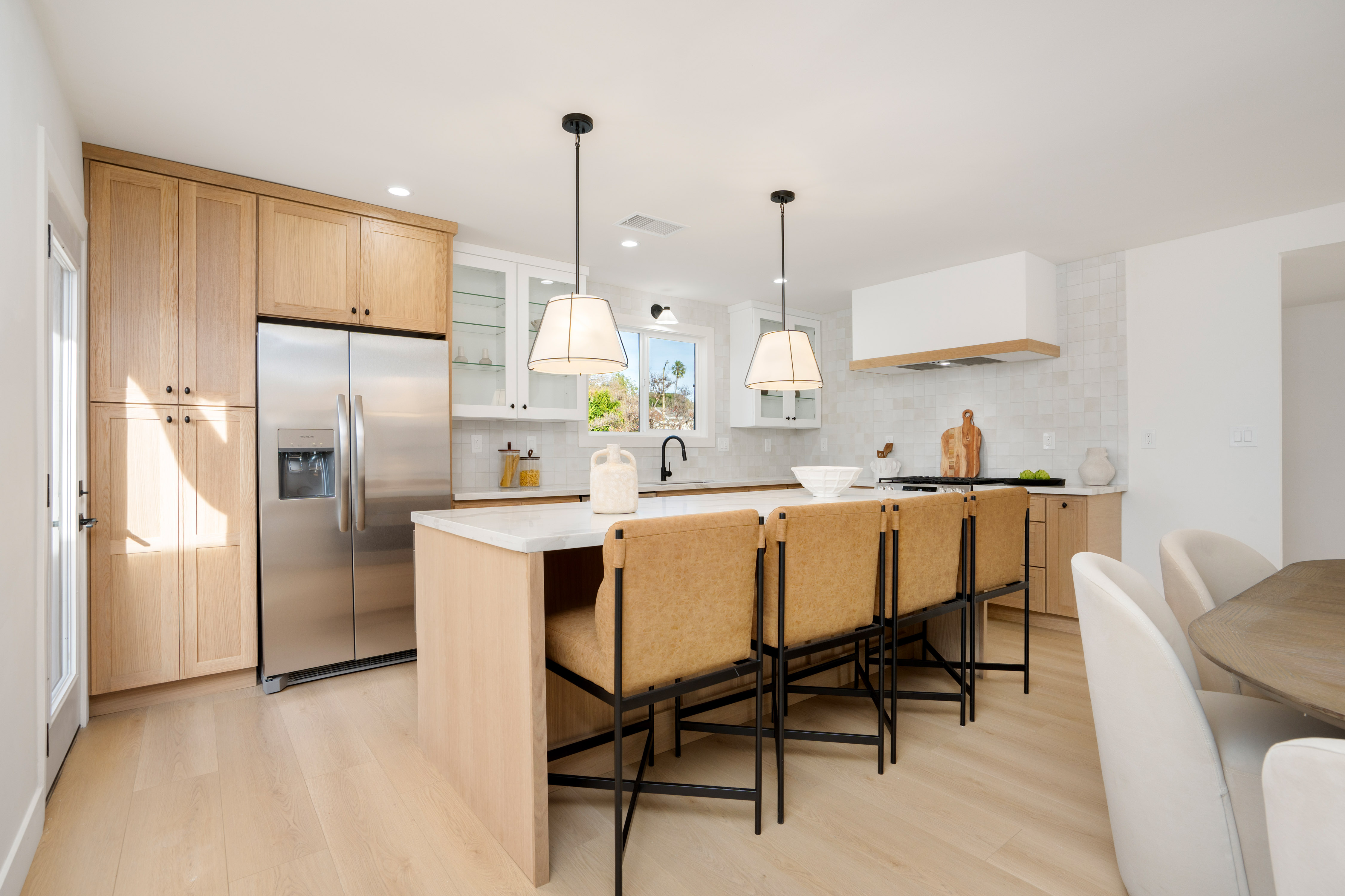 Welcome to this beautifully reimagined Porter Ranch residence, where modern design meets effortless indoor-outdoor living. Thoughtfully remodeled from top to bottom, this move-in-ready home offers refined finishes, abundant natural light, and a layout designed for both everyday comfort and memorable entertaining. The home welcomes you with new flooring and windows throughout, and a light, bright, cohesive aesthetic. The living room feels warm and captivating, framed by large French doors that open to the backyard, creating an ideal setting for entertaining or unwinding. The kitchen has been completely reimagined with new cabinetry, sleek countertops, a fresh backsplash, and all-new appliances, anchored by a spacious island that connects to the dining area and adjacent living spaces. Retreat to the primary bedroom, where sleek finishes, ample light, and a spa-inspired en suite bath create a peaceful sanctuary. With three additional bedrooms, there is plenty of room for family, friends, or a home office. The secondary bathroom echoes the home’s refined design with modern fixtures and finishes. Step outside to a private backyard with a concrete patio, surrounded by landscaped grounds, ideal for outdoor dining and entertaining. A detached garage adds valuable functionality and storage. Set in a quiet residential neighborhood, the home is close to hiking trails, shopping, dining, and commuter routes. Community amenities nearby offer an active, convenient lifestyle while maintaining the charm and tranquility Porter Ranch is known for. Opportunities like this don’t come often. Schedule your private tour today.