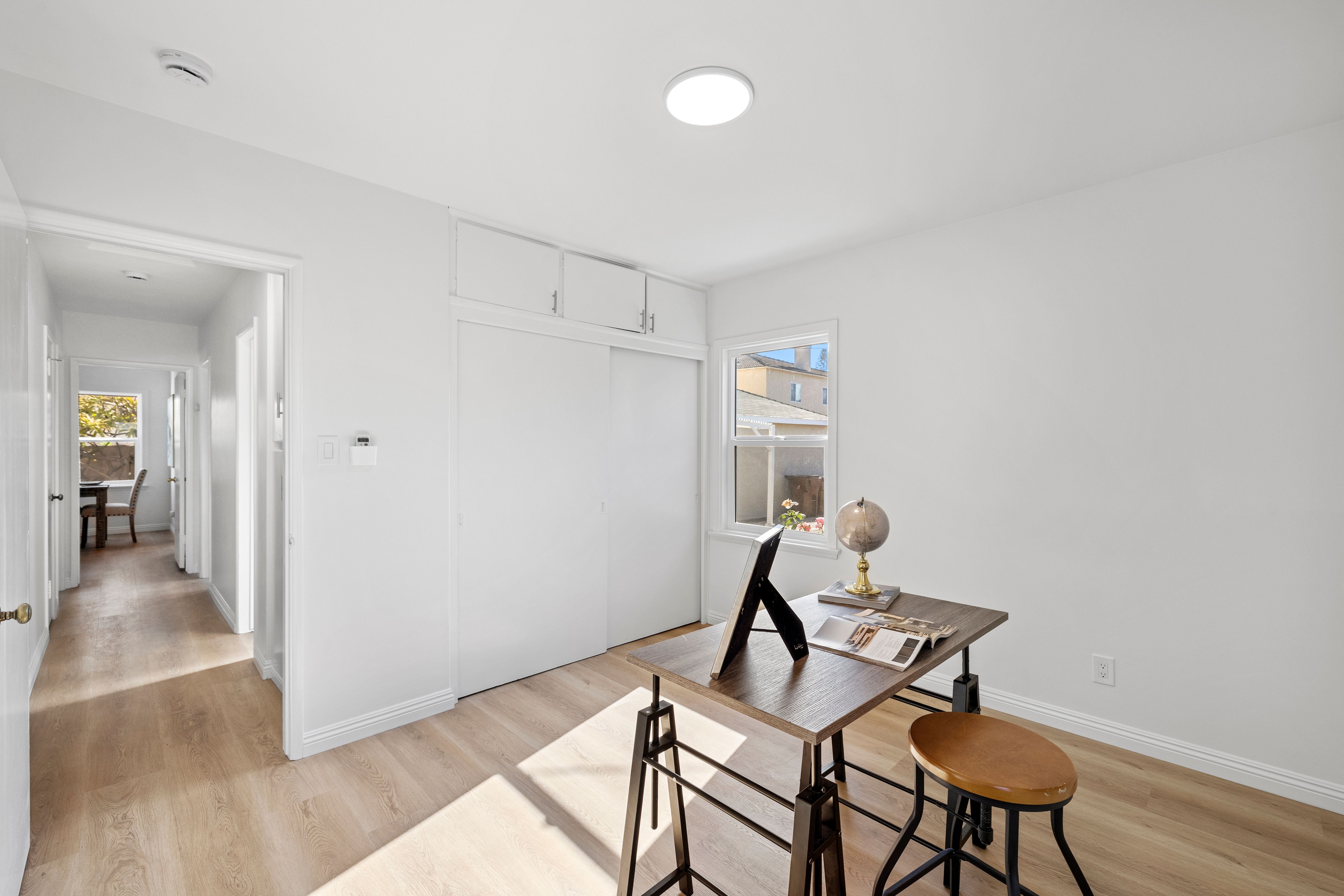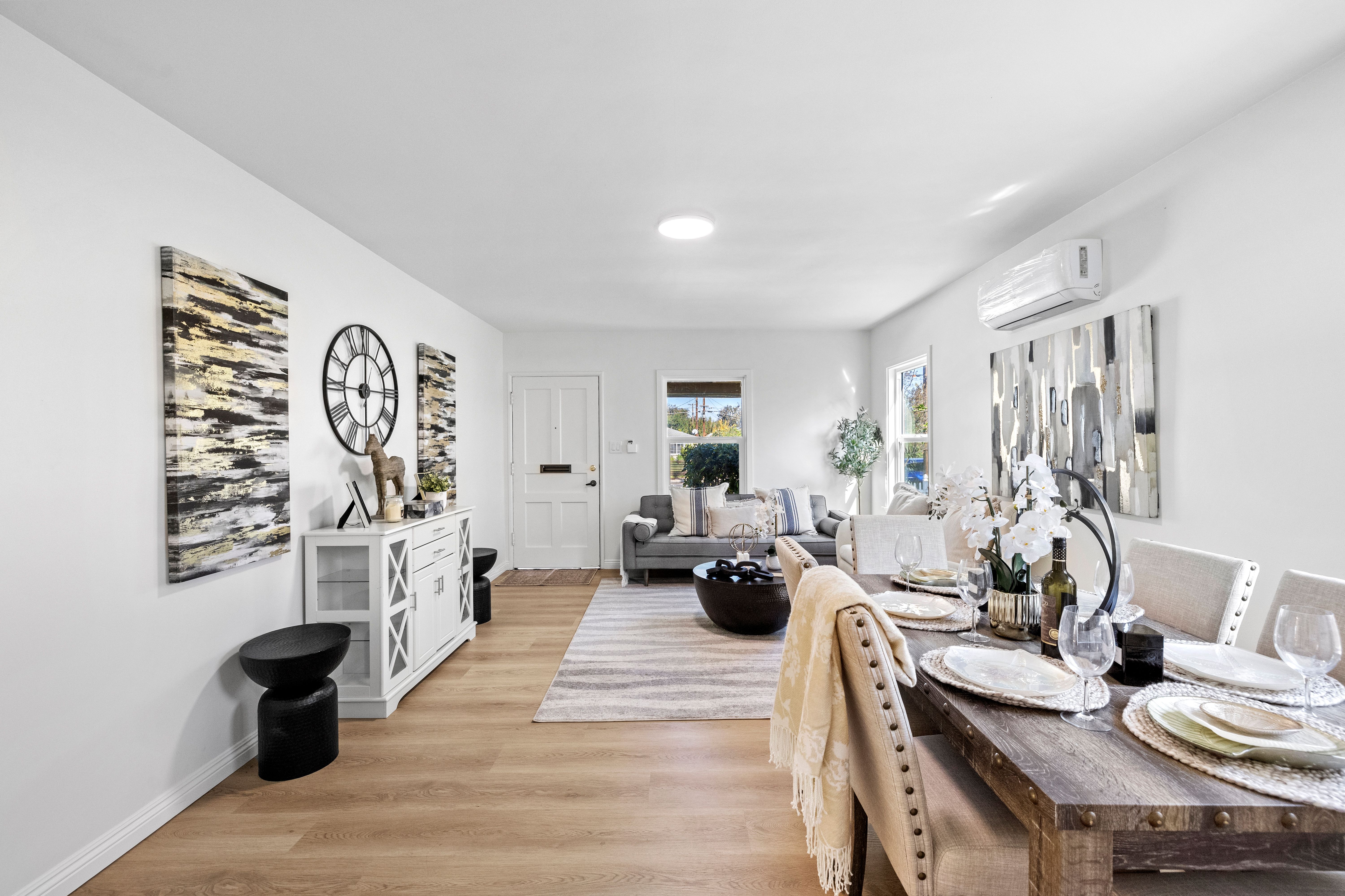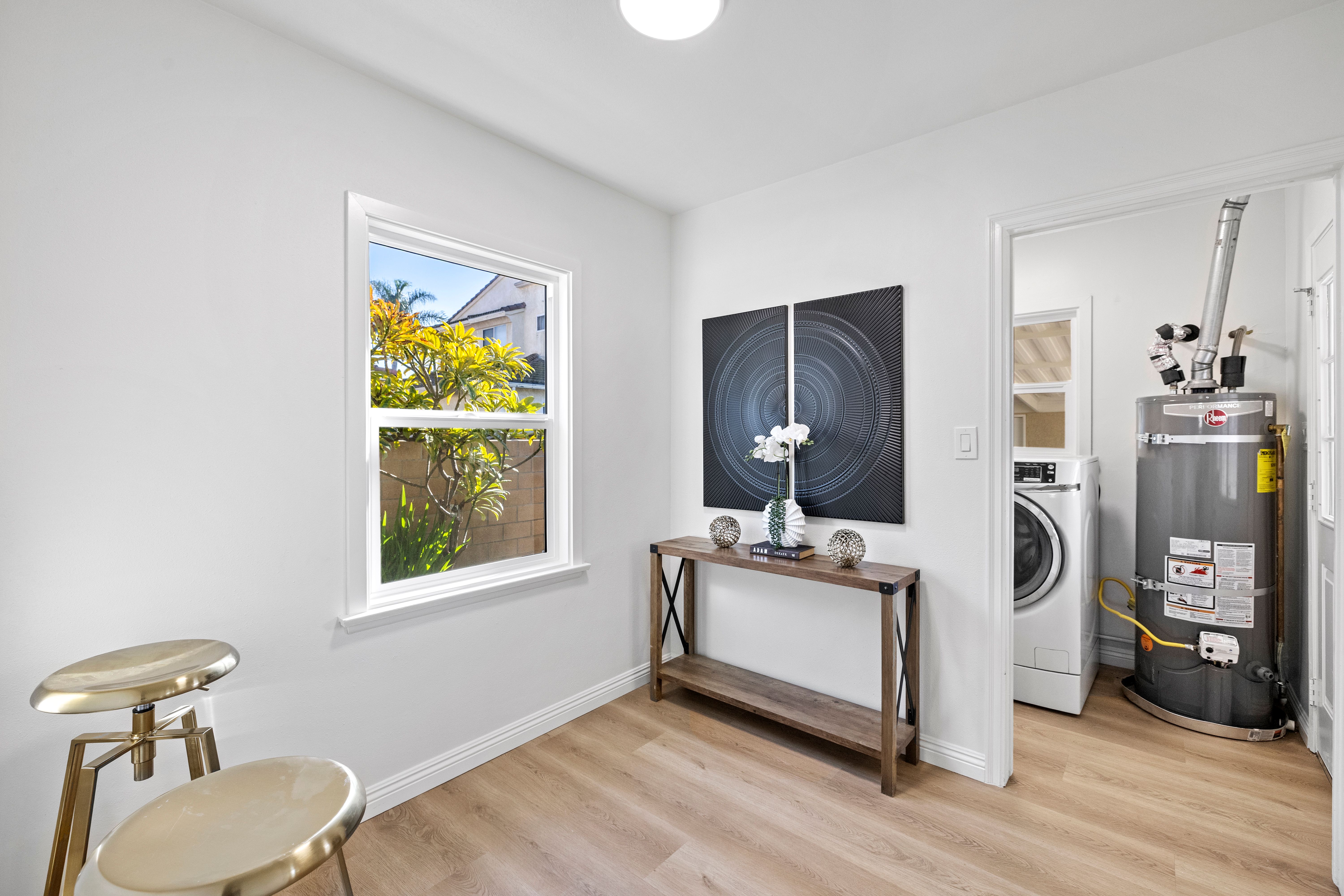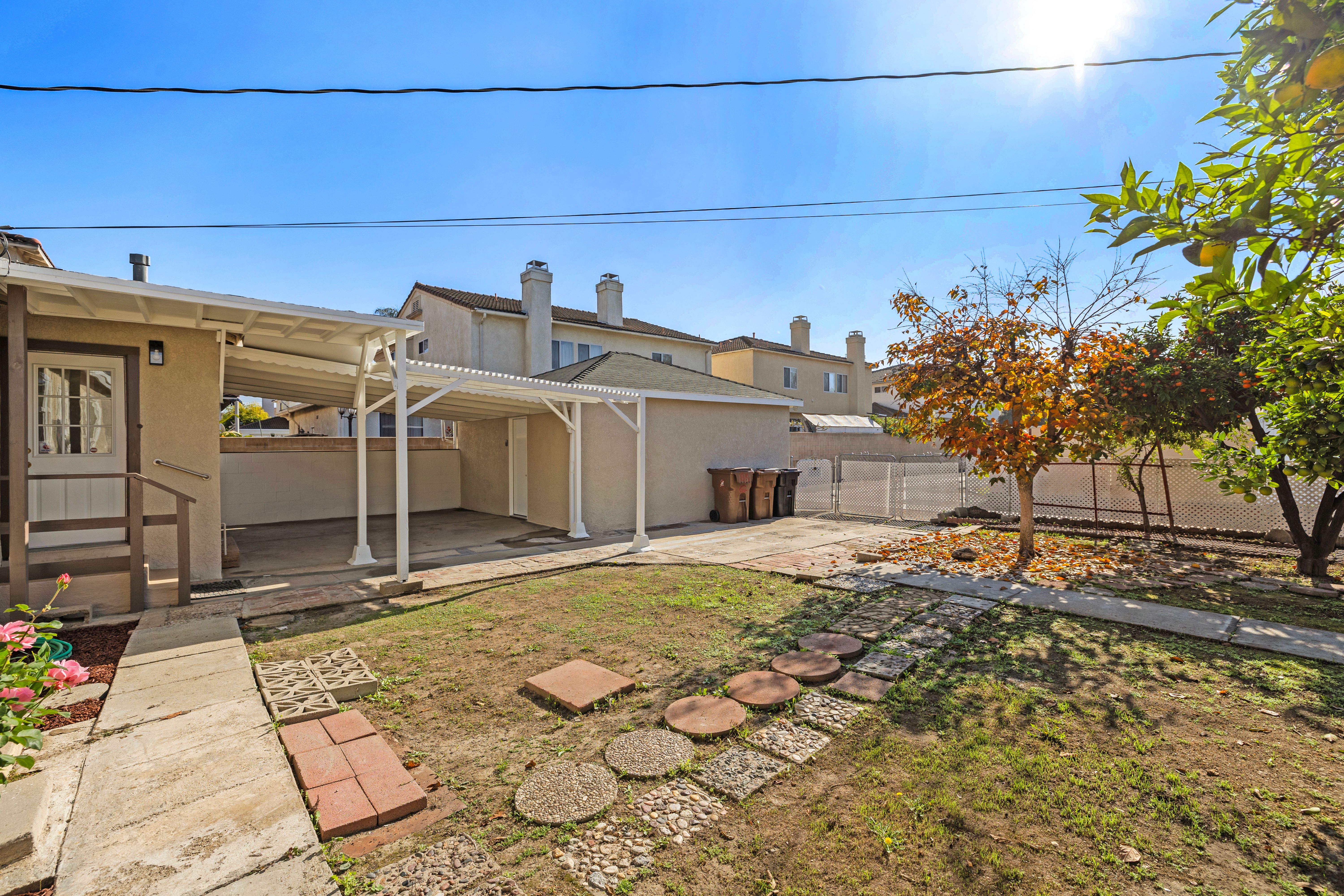Step into your dream home! This beautifully transformed single-level Fullerton residence blends modern upgrades, timeless charm, and everyday comfort. From the moment you arrive, the picket fence, manicured landscaping and mature trees set the scene for a picture-perfect welcome. Inside, sunlight streams through the new windows, highlighting new vinyl flooring, new baseboards, and new crisp interior paint throughout. The thoughtful layout flows effortlessly, and individual AC & Heating units in the living room and each bedroom provide personalized comfort year-round. The heart of the home is the fully refreshed kitchen with a breakfast nook, featuring new quartz countertops, newly painted cabinets and drawers with modern hardware, new stainless-steel sink, new faucet, new garbage disposal, new stove/range, and a new hood—ideal for everyday meals or entertaining family and guests. The completely remodeled bathroom showcases new fixtures and finishes, creating a bright, modern space. Offering 3 bedrooms and 1 bathroom across approximately 1,169 sq ft, the home sits on an expansive 6,618-square-foot lot, providing exceptional outdoor space and future potential. Step outside to the covered patio, perfect for BBQ's, gatherings or relaxing evenings, while the large backyard features mature fruit trees including persimmons, tangerines, and oranges—a serene Southern California retreat. Additional highlights include new exterior paint, new electrical panel, new side door to the garage, a two-car garage with alley entry access, back gate access to the property which is convenient for an ADU addition, and ample street parking. Zoned R-1-6, the property is potentially eligible for an ADU/Accessory Dwelling Unit under the city’s adopted ordinance, offering flexibility for expansion, and ideal for rental income or multigenerational living. Conveniently located near shopping, dining, schools, parks, fitness, and entertainment, with easy access to the 91 and 5 freeways, this move-in-ready and centrally located property blends style, comfort, and future potential—a rare opportunity to own a truly special home and experience the best of Fullerton living. Step inside—your dream home awaits!