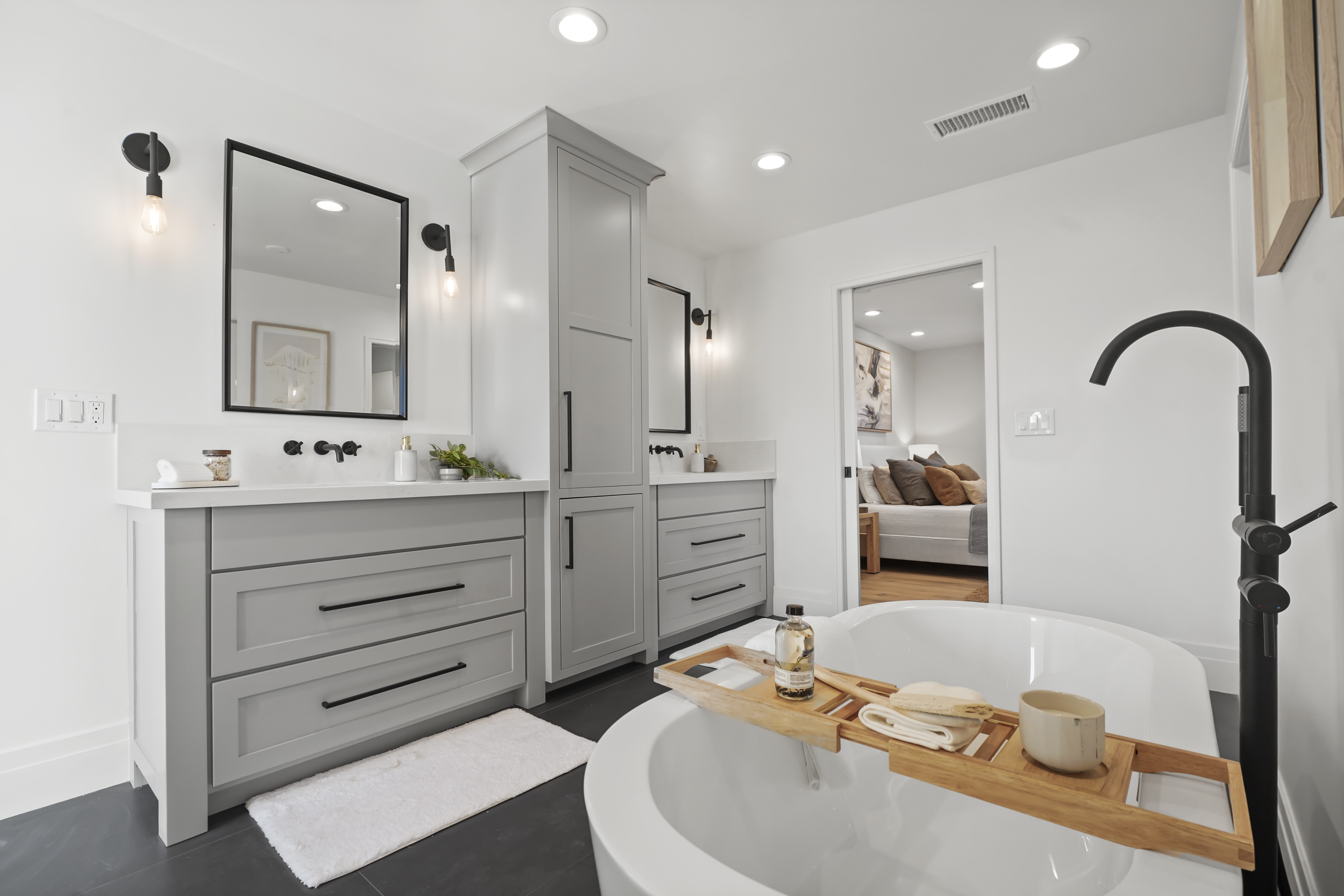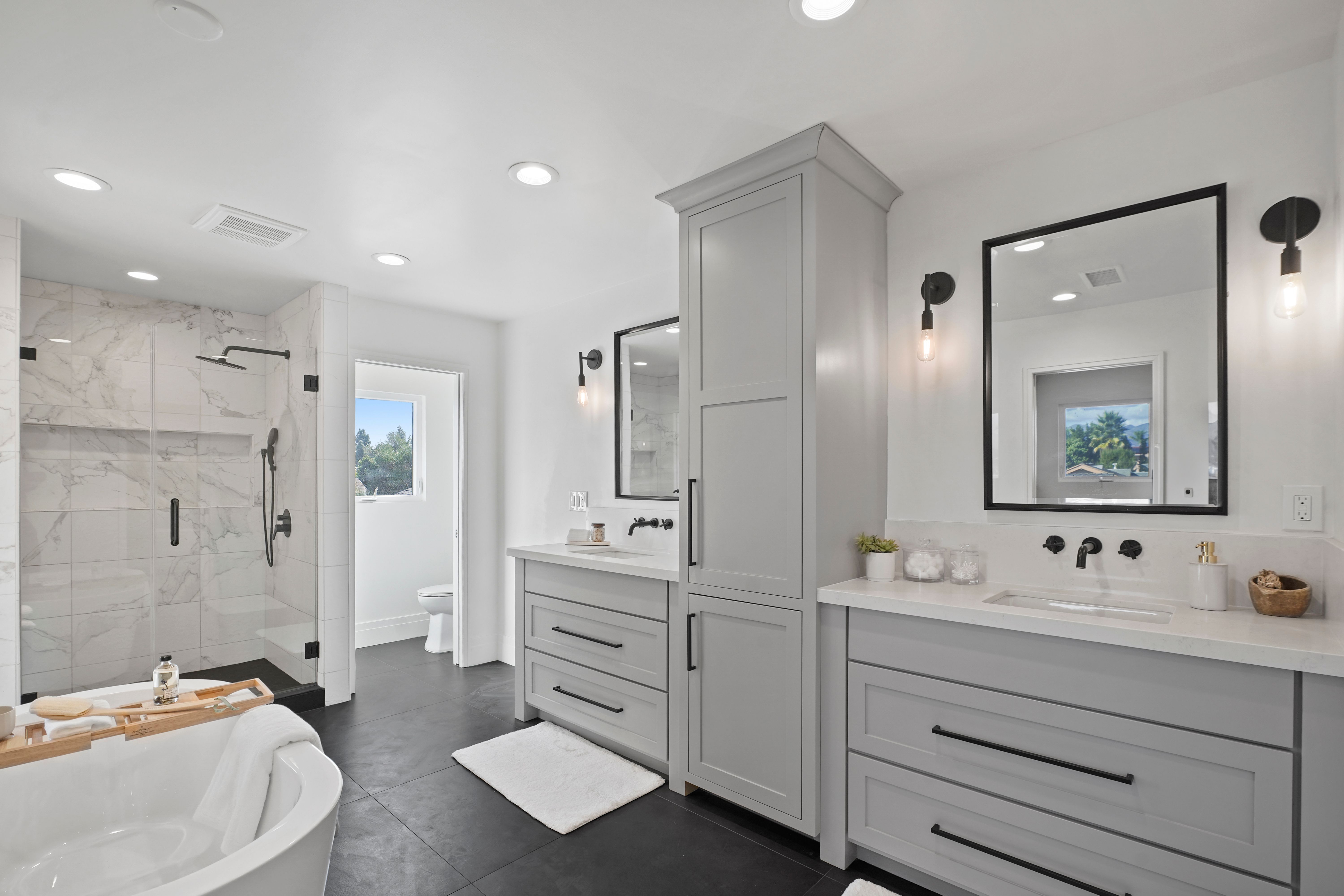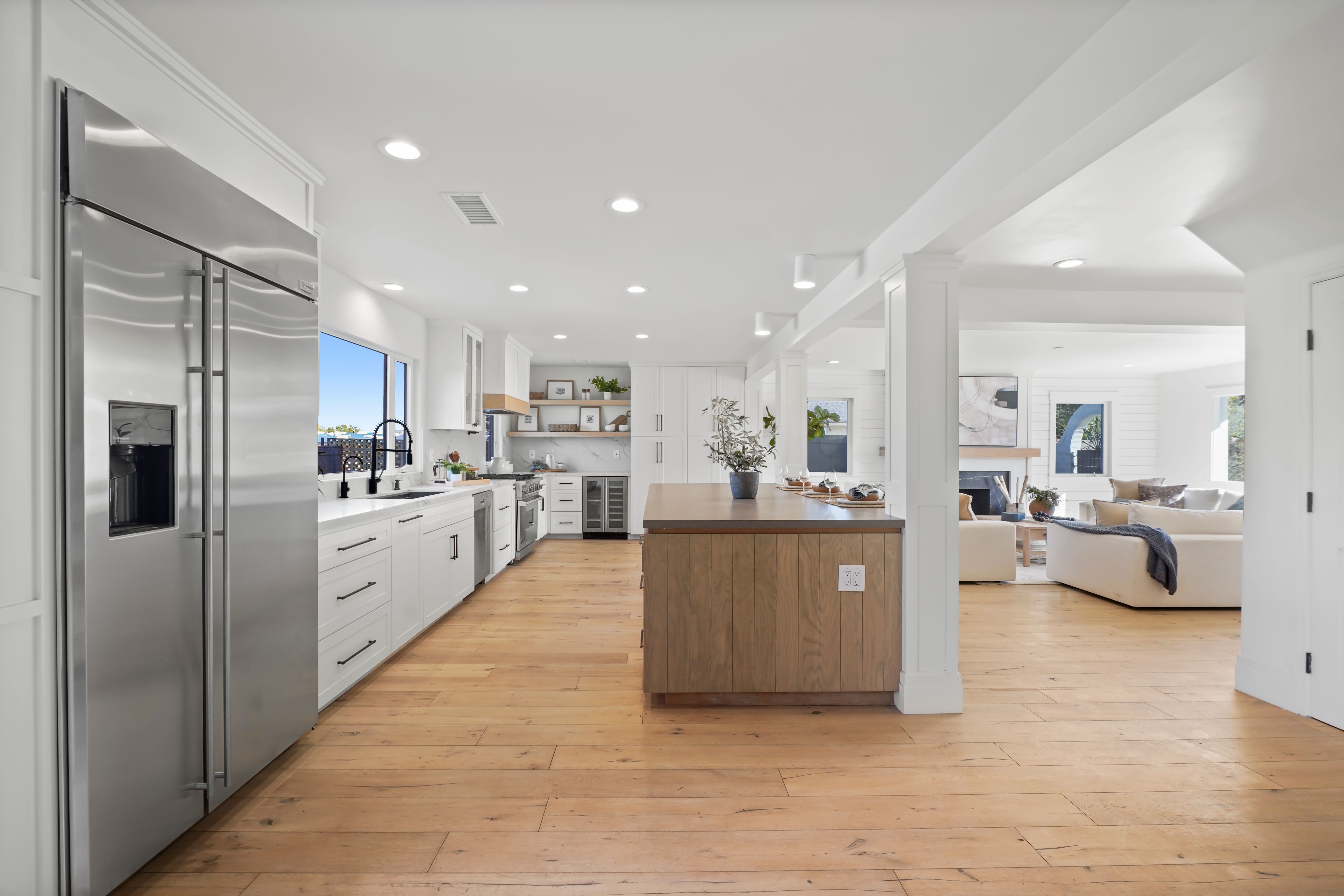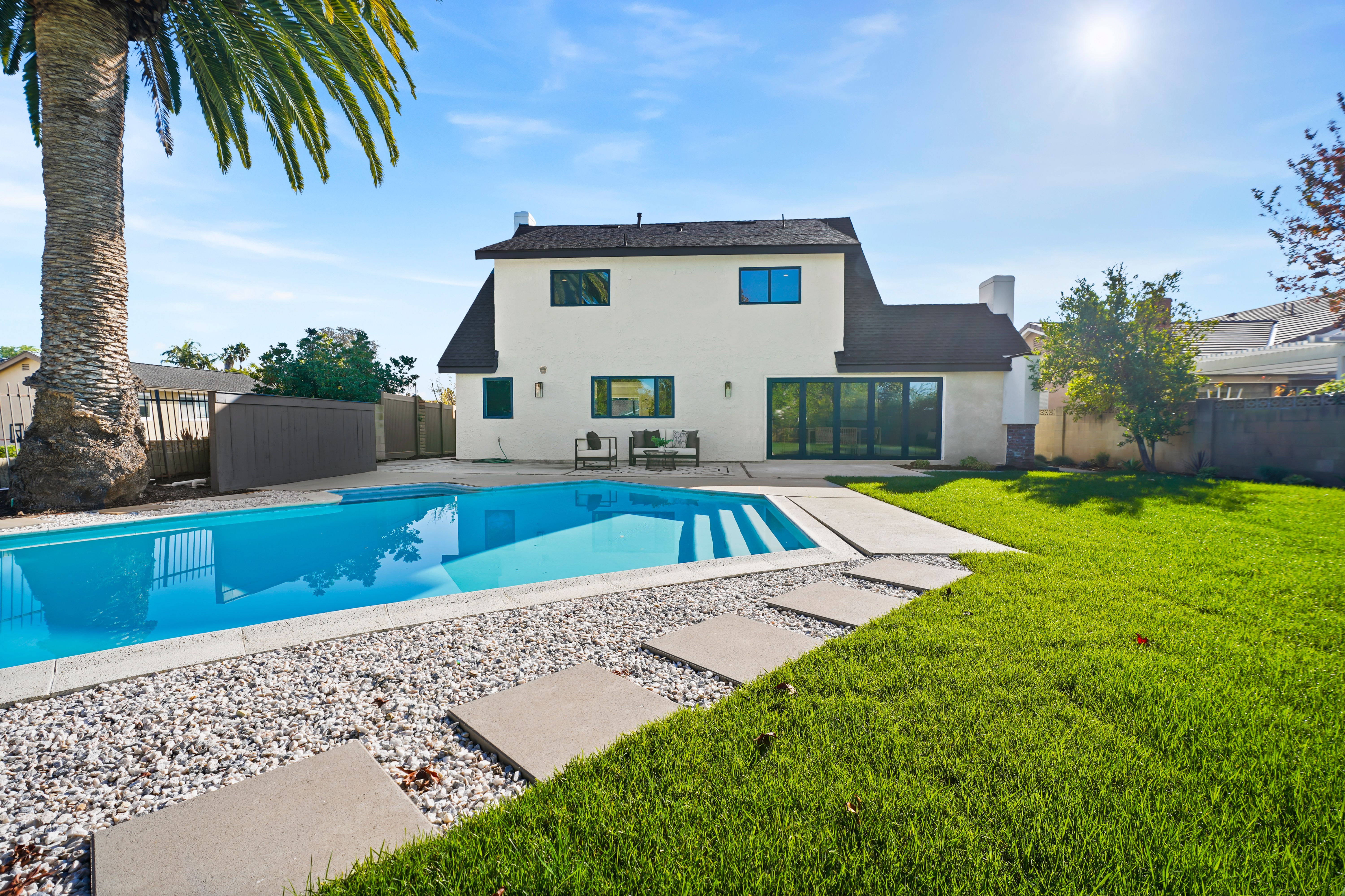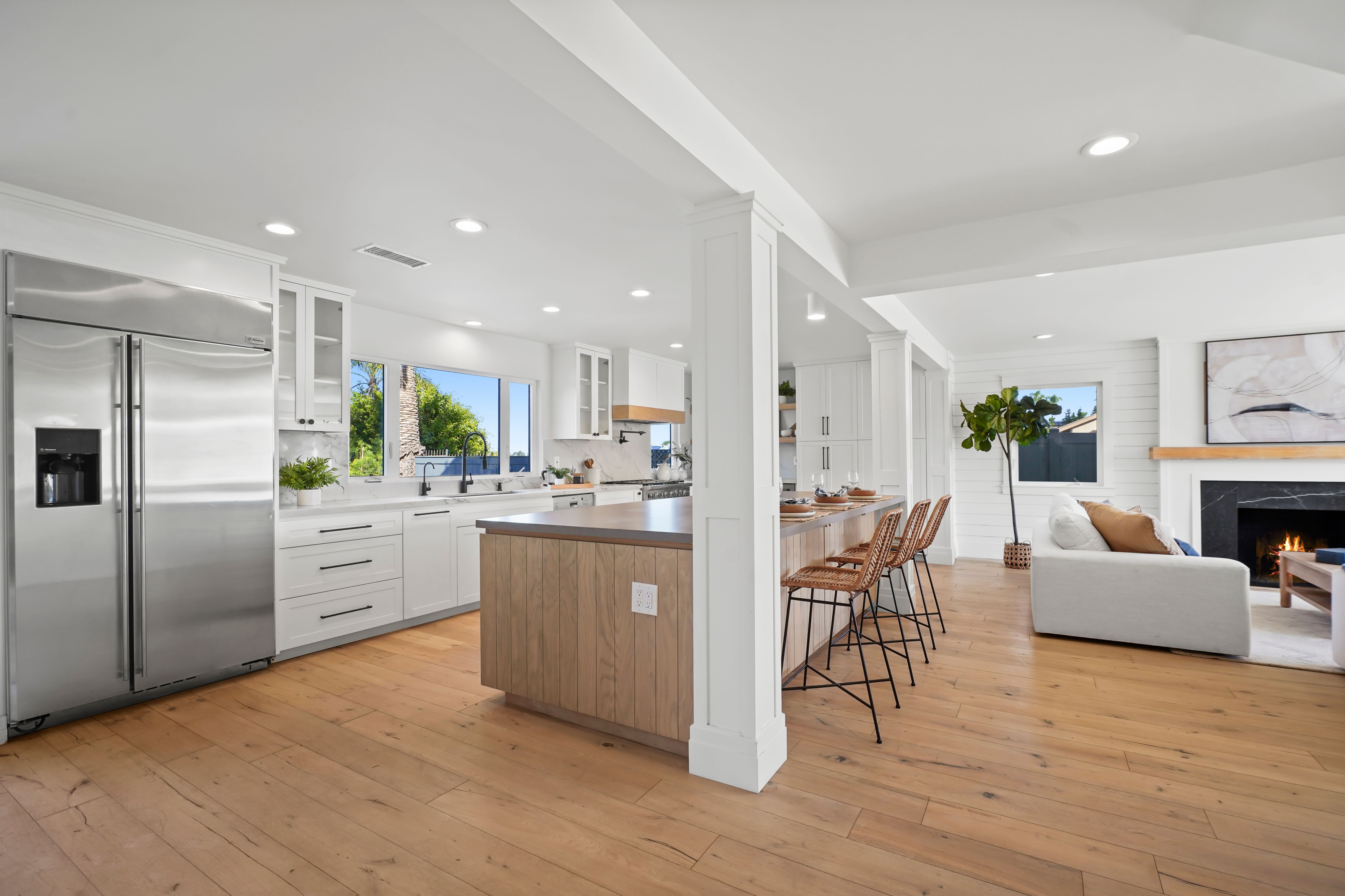 Beautifully remodeled, this Mission Viejo home blends luxurious design with beach-house–inspired aesthetic. Custom shiplap detailing combined with calming shoreline neutrals create a clean, modern coastal feel throughout. An airy, open layout features a chic living room with a sleek fireplace, wide-plank flooring, and coastal paneling. The chef’s kitchen showcases a massive island, custom cabinetry, stone and quartz surfaces, pot filler, and open shelving, while the dining area offers a second fireplace and sweeping bifold doors that open to the backyard for seamless indoor–outdoor living. Upstairs, the capacious primary suite includes peaceful views, a spa-inspired bathroom with dual vanities, freestanding tub, and oversized shower, plus a spacious custom closet and a bonus room with a private balcony showcasing mountain vistas. Additional bedrooms and redesigned bathrooms offer excellent versatility while a dedicated downstairs office and full bathroom add everyday functionality. The backyard is equally impressive, featuring a sparkling pool, expansive patio, and lush lawn, while fresh landscaping enhances curb appeal and complements the home’s clean, modern exterior. Located close to parks, dining, shopping, and recreation, this home delivers both comfort and convenience. Lake Mission Viejo members enjoy access to lakes, beaches, pools, tennis, picnic areas, playground and more - experience the lifestyle firsthand!