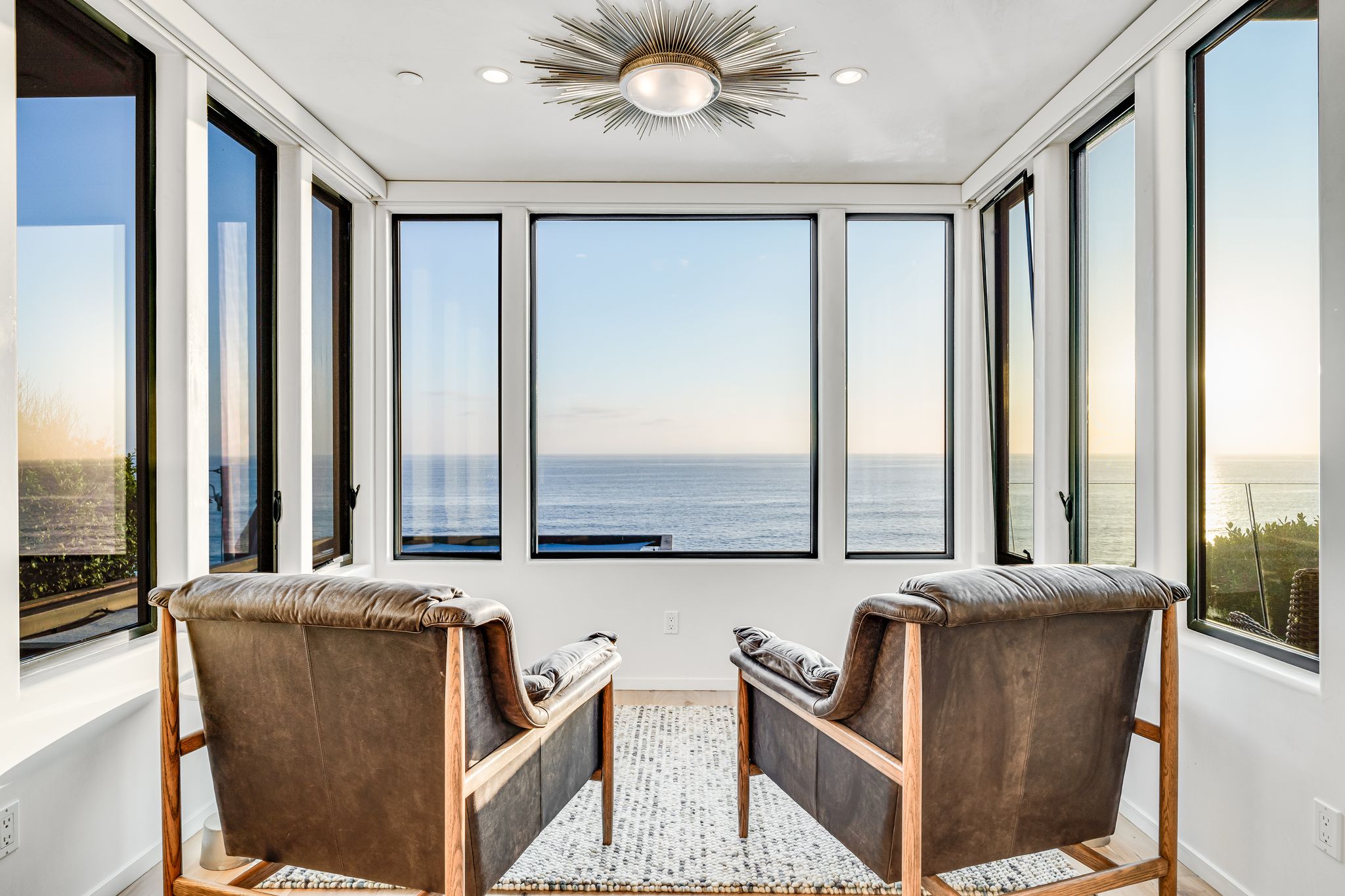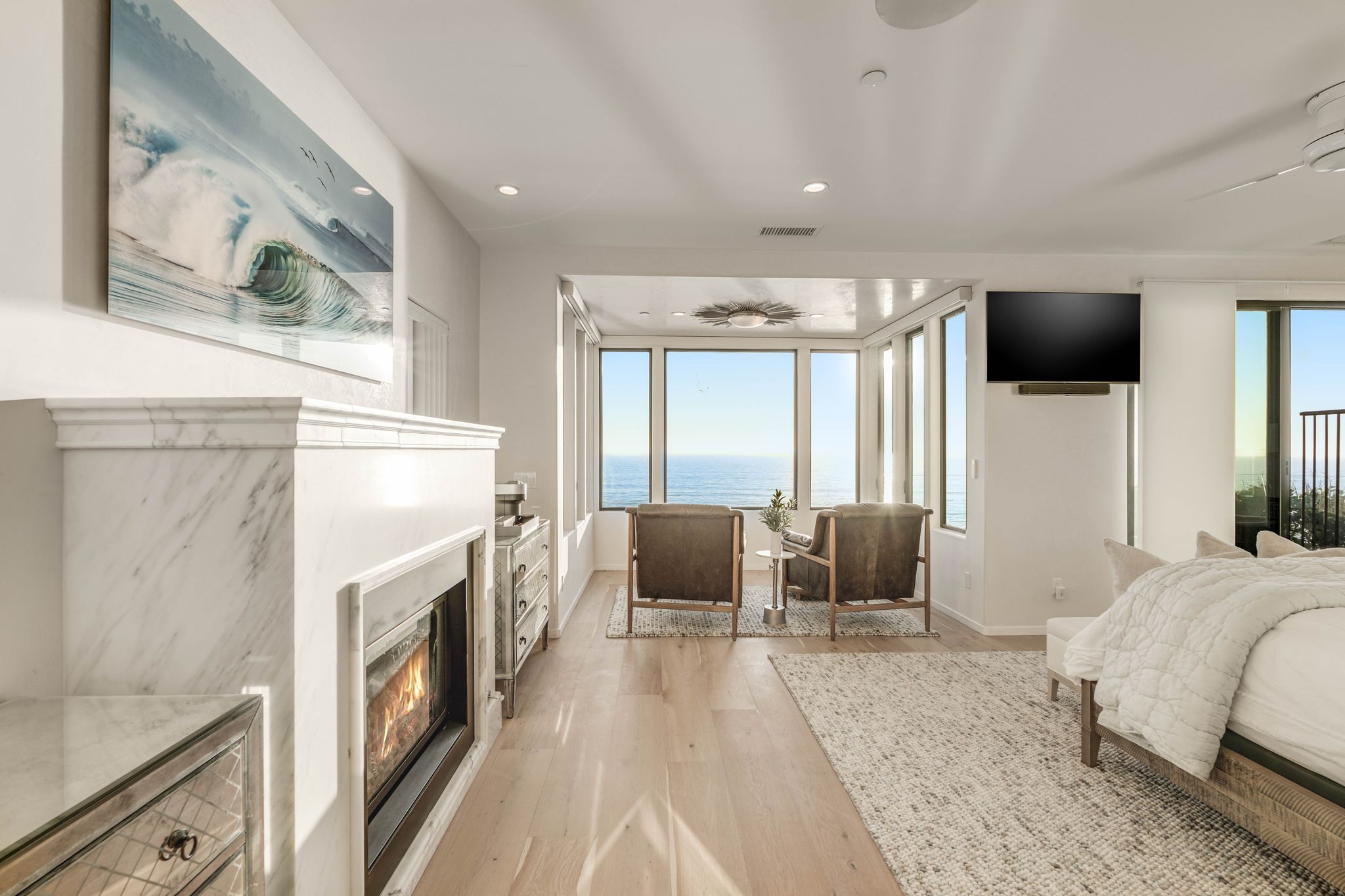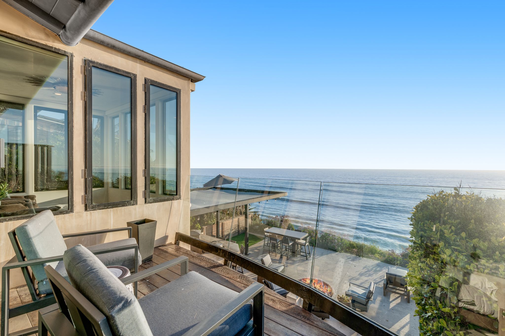 Seasonal rental, inquire for availability and rates. Experience the pinnacle of North County living at this breathtaking, luxurious oceanfront rental that embodies the laidback elegance unique to Encinitas. This three-story home offers sweeping panoramic ocean views and a tranquil ambiance, all while being a short stroll from premier restaurants, shops, and renowned North County beaches. This property provides generous space for both relaxation and entertainment. Enter through the gated front entry to discover a spacious living area with sliding glass doors that open to an outdoor space perfect for BBQs and evenings by the fire, overlooking the Pacific Ocean. The chef's kitchen is equipped with the finest stainless steel appliances and boasts a cozy ambiance with a fireplace adjacent to the island. Additional features include a walk-in pantry and a butler's kitchen, ensuring ample space for culinary adventures. The downstairs area offers a comfortable TV room/flex bedroom if needed, ideal for movie nights or watching sports games. On the top level you'll find three spacious bedrooms. The garage level includes full laundry room and an atrium that adds a touch of natural beauty to the home. Practical amenities include a two-car garage with storage for beach toys and more, making this the ultimate summer retreat. The interiors exude warmth and sophistication, creating an inviting atmosphere that feels wonderfully removed from the everyday, despite its proximity to all of Encinitas' offerings.