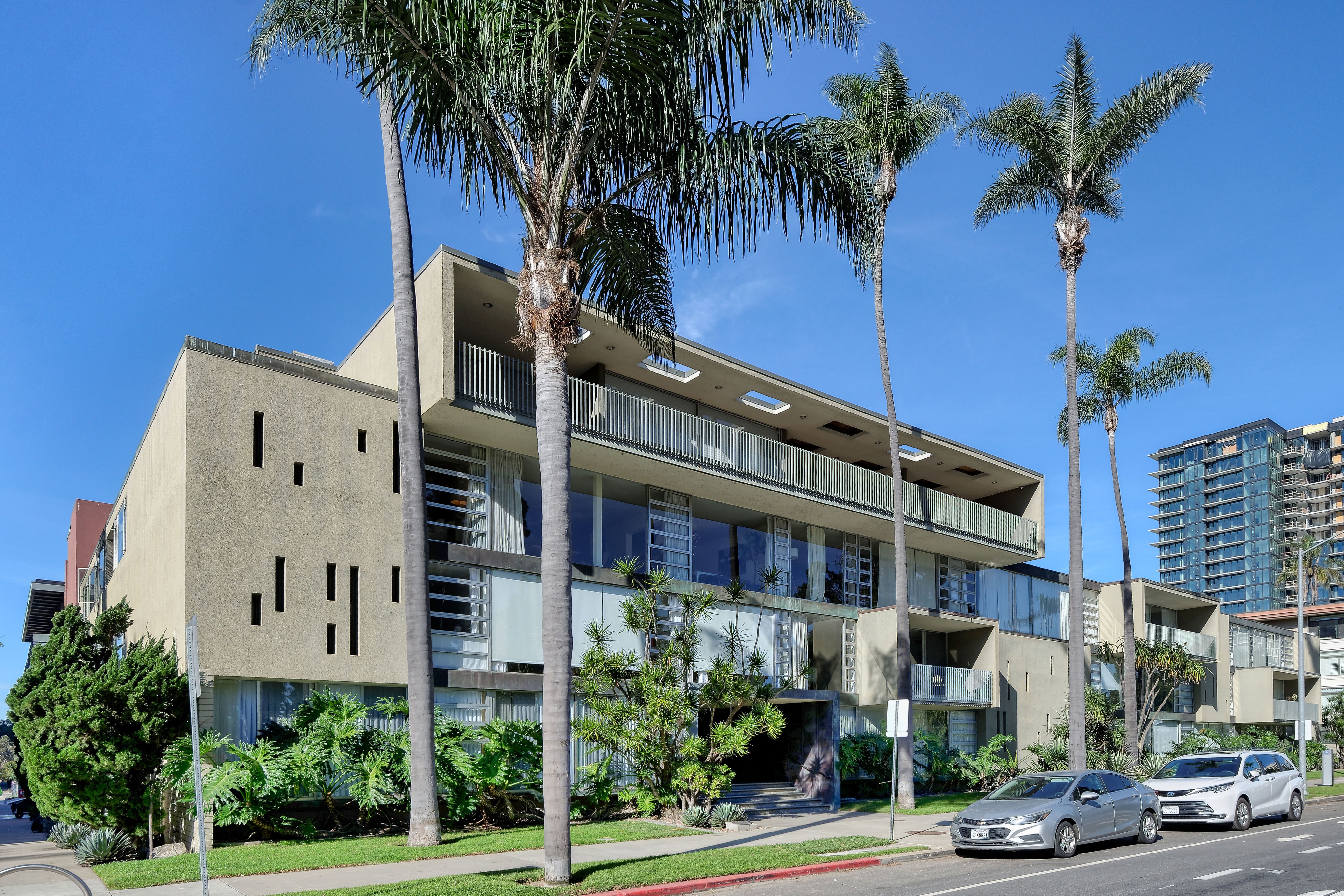 || MID-CENTURY MODERN ICON OVERLOOKING BALBOA PARK || Exceedingly rare 3BD/3BA residence with significant property tax savings via the Mills Act and located in the iconic Salomon Building, designed by Master Architect Henry Hester c. 1959…heralded as “San Diego’s Most Distinguished Place to Live,” a distinction that endures today through flawless modern design rarely found in the City Center. || This sophisticated third-floor, single-level corner residence features dramatic floor-to-ceiling glass, framing panoramic, unobstructed views of world-famous Balboa Park. || Thoughtfully upgraded and move-in ready with renovated bathrooms, a chef’s kitchen appointed with Fisher & Paykel and Viking appliances, the convenience of an in-unit Miele washer and dryer...the clean lines, authentic mid-century details, and seamless indoor-outdoor sensibility define the space. || Residents enjoy a classic MCM pool area reminiscent of Mad Men glamour, perfectly complementing the building’s architectural pedigree. || One of only two three-bedroom residences in the building...all en suite... this unit also includes extra-wide tandem parking in a secure underground garage. || Ideally located just steps from theaters, museums, acclaimed restaurants, and the cultural heart of Balboa Park, this is mid-century living at its most refined. || An opportunity not to be missed!