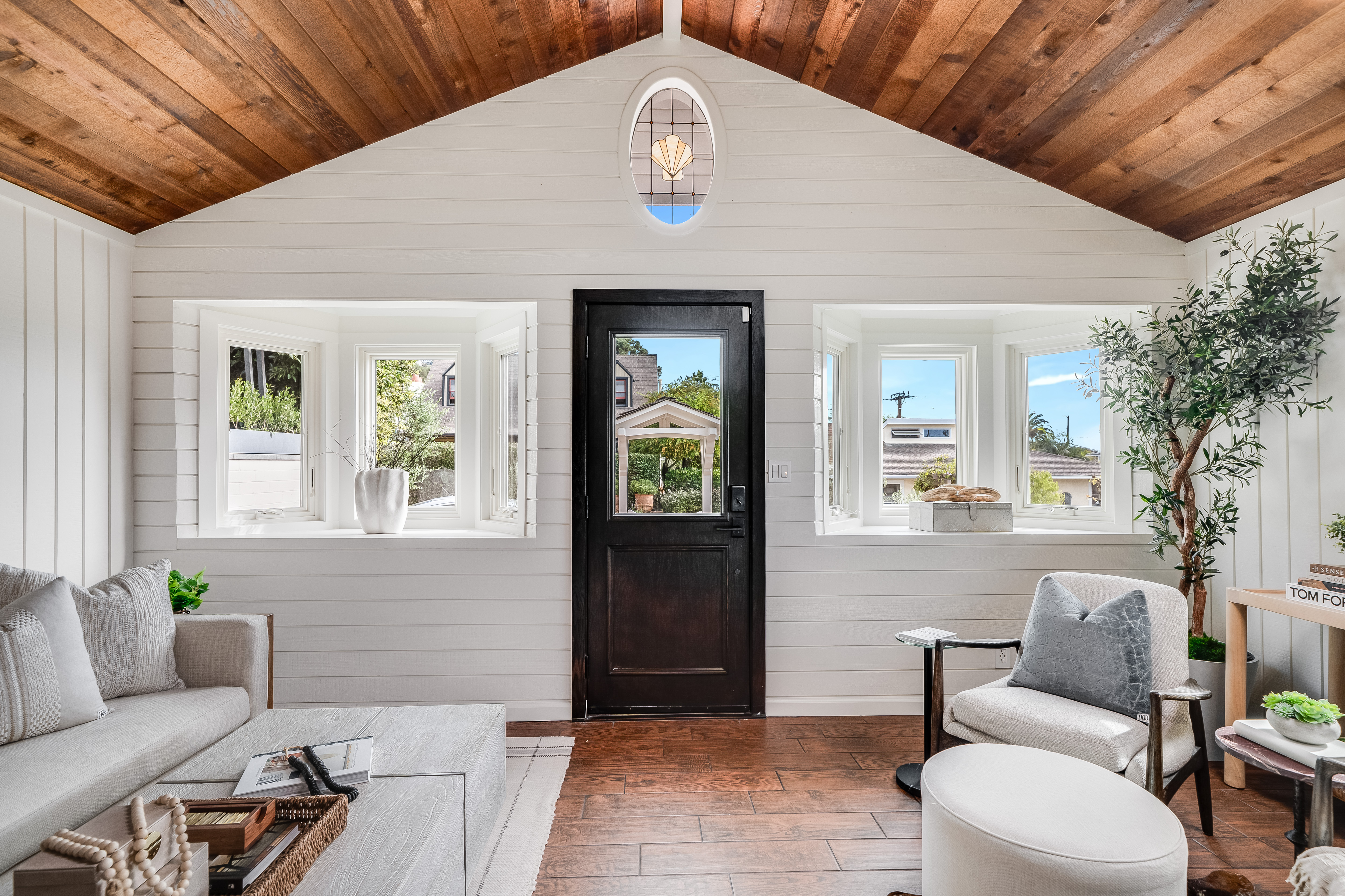 Welcome to 358 Flora Street, a charming cottage in the heart of Laguna Beach’s coveted Woods Cove neighborhood. This well maintained 1,600 sq. ft. residence blends classic coastal character with warm, relaxed living spaces—all just moments from two of Laguna’s most beloved beaches: Woods Cove and Bluebird Canyon Beach. Step inside to a cozy yet spacious living room, highlighted by a vaulted tongue-and-groove ceiling with classic exposed trusses that elevate the room’s charm and coastal character. A wood-burning Franklin-style stove serves as a welcoming focal point, lending warmth and ambiance throughout the main living area. The kitchen is a true hub, featuring a generous peninsula that makes entertaining effortless and everyday living a breeze. A full dining nook is set up close to the kitchen and comfortably seats eight and enjoys the gentle heat from the stove, creating a warm, connected space ideal for gatherings. The home has 4 bedrooms, and two bathrooms, with the primary suite privately situated upstairs. The three additional bedrooms on the lower level provide flexible options for family, guests, or office space. Out front, a bright and open patio invites lounging and outdoor entertaining in a serene coastal setting. The property also includes a rare two-car garage with unique alley access—a highly desirable convenience in this beachside community. With restaurants, boutiques, and shoreline paths all within close reach, this delightful cottage captures the best of Laguna Beach living: charm, comfort, and effortless coastal lifestyle.