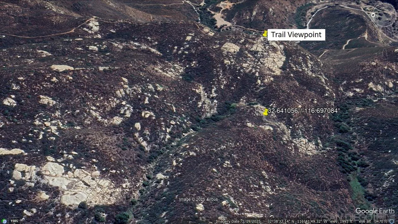 Imagine waking up every morning to sweeping 270 degree views of the pristine mountains and valleys of Jamul and the Cleveland National Forest. This expansive 40-acre undeveloped parcel offers you the rare opportunity to build your dream home surrounded by nature’s beauty. With multiple potential build sites, you can design your perfect living space, enjoying panoramic vistas from nearly every angle. Zoned A72, this versatile land can also be transformed into a fantastic home site, vineyard, agricultural grove, or horse property. Whether you envision cultivating your own wine, establishing a ranch, or simply enjoying the serenity of the surrounding landscape, this land offers endless possibilities. The choice is yours! Located just 30 miles from downtown San Diego, this property provides a perfect balance of rural tranquility with convenient access to city amenities. Additionally, it’s only 2 miles as the crow flies to Barrett Lake, offering excellent bass fishing and fly fishing opportunities (if you’re not a crow, expect a scenic drive to get there). The charming nearby community of Bee Valley is known for its mix of small vineyards, ranches, and custom estates. Nearest residences are less than a mile away, at 21008 Deerhorn Oaks Rd, 21080 Deerhorn Oaks Rd, and 1718 Wide Oak Rd – useful for navigation reference. The Virtual Tour drone video shows the property in the foreground.