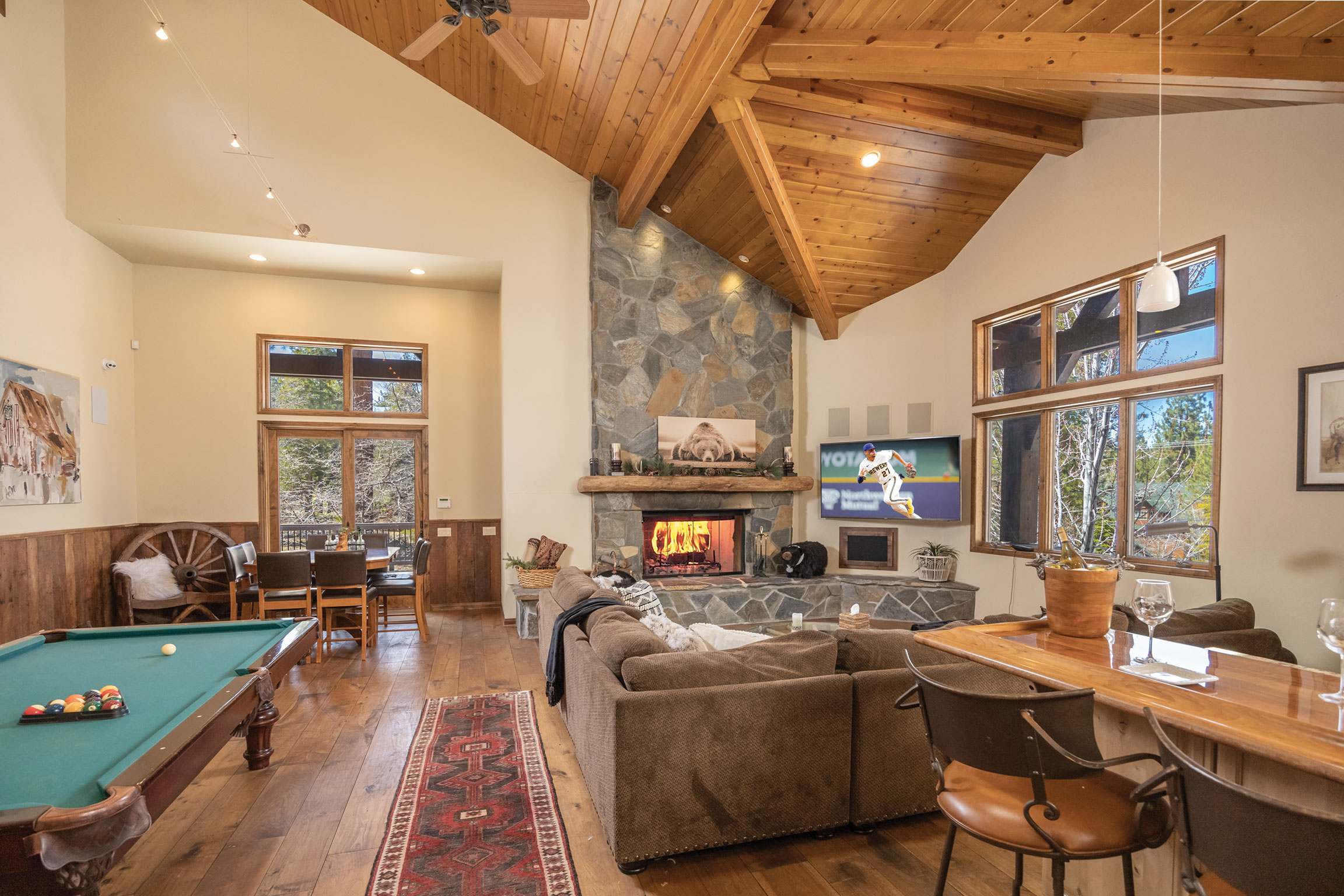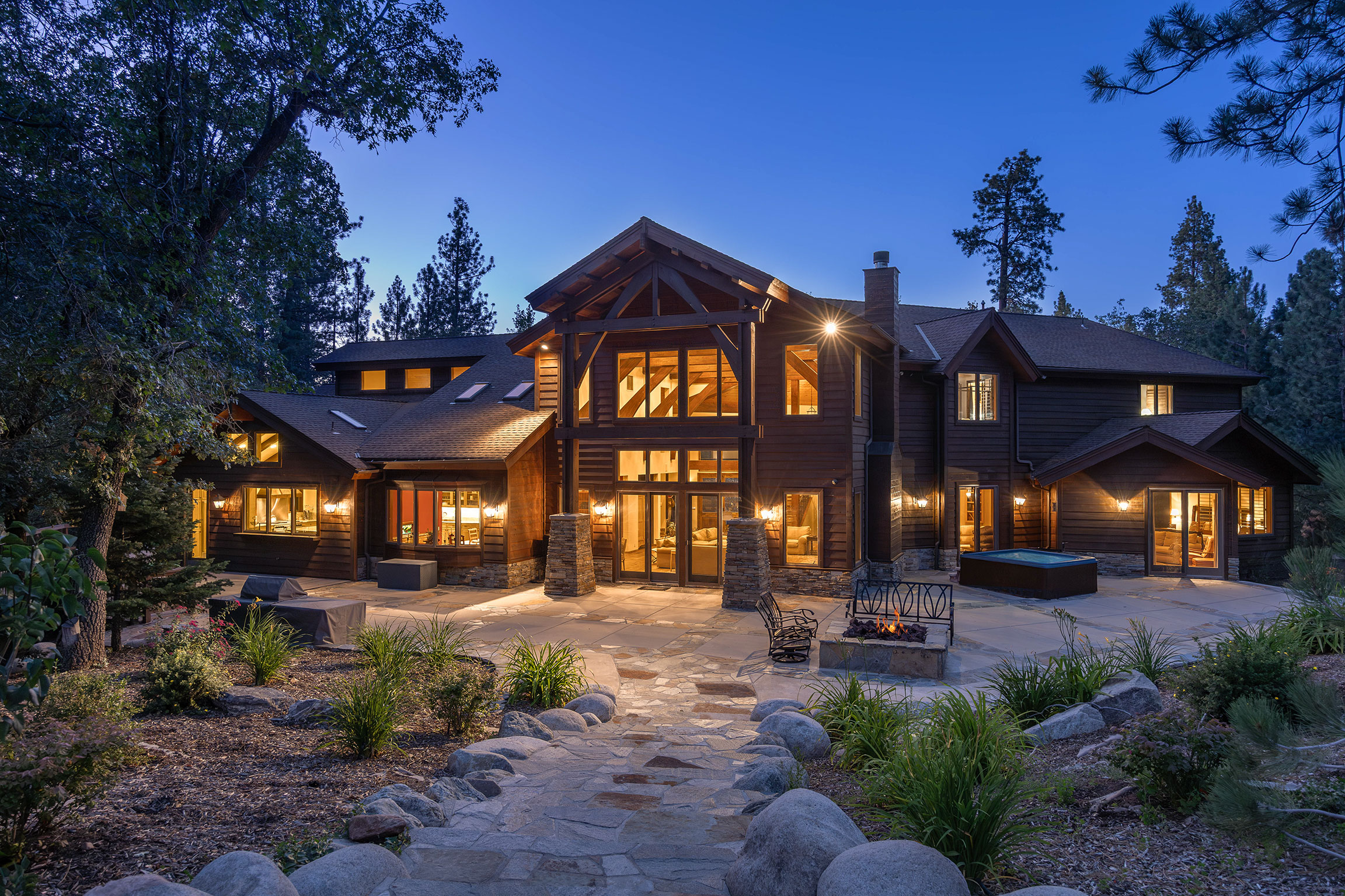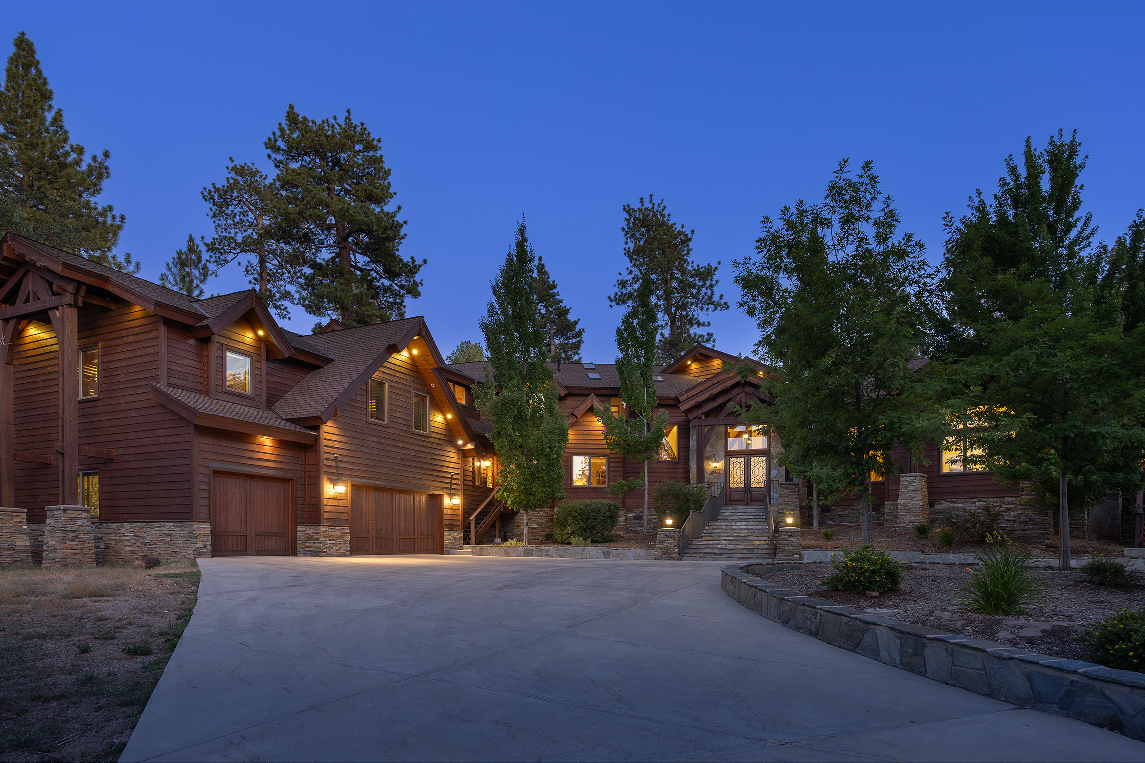 Experience the pinnacle of Big Bear mountain living in this stunning architectural masterpiece, perfectly situated on a massive 2.74-acre lot backing to National Forest—all just 3 mins from Snow Summit Resort! This iconic, unparalleled estate seamlessly blends luxury craftsmanship with an incredible "fun factor," making it THE premier four-season retreat. Upon entering, you are instantly transported by a breathtaking wall of Anderson windows inviting the beauty of the outdoors in. Peace and serenity are found in the many wonderful living spaces, while the entertainment options are unmatched. The home features a massive game room with pool table, TV area, expansive wet bar, wood-burning fireplace, and a huge game closet for endless indoor fun. Accommodations are plentiful, including a spectacular 10-bed bunk room with dedicated bathrooms, perfect for large gatherings. The exquisite chef’s eat-in kitchen boasts a granite island with plenty of seating for family and friends and is a fantastic space for food prep and entertaining. This cook’s kitchen is fully loaded with a Wolf range, Subzero refrigerator & freezer, Viking warming oven, hot water pot filler, and 2 Bosch dishwashers. Retreat to the primary suite, which offers a cozy sitting area w/ private fireplace and a luxury bathroom featuring a jetted tub and a massive steam shower. Superior quality is on display throughout with premier plank flooring, custom wrought iron, custom lighting, tankless water heaters, and 4 forced-air furnaces for zoned comfort. The outdoor living is truly world-class, featuring a massive concrete patio/deck, outdoor spa, built-in BBQ, and a lava rock fire pit. The private "adventure park" includes frisbee golf, a horseshoe pit, putting green, a kids' playhouse w/rooftop deck, and even a 4-kid zipline! An oversized 3-car garage with storage room provides ample space for gear. Bonus: a private well serves the home & landscaping—NO water bill! Come see Big Bear living at its finest!