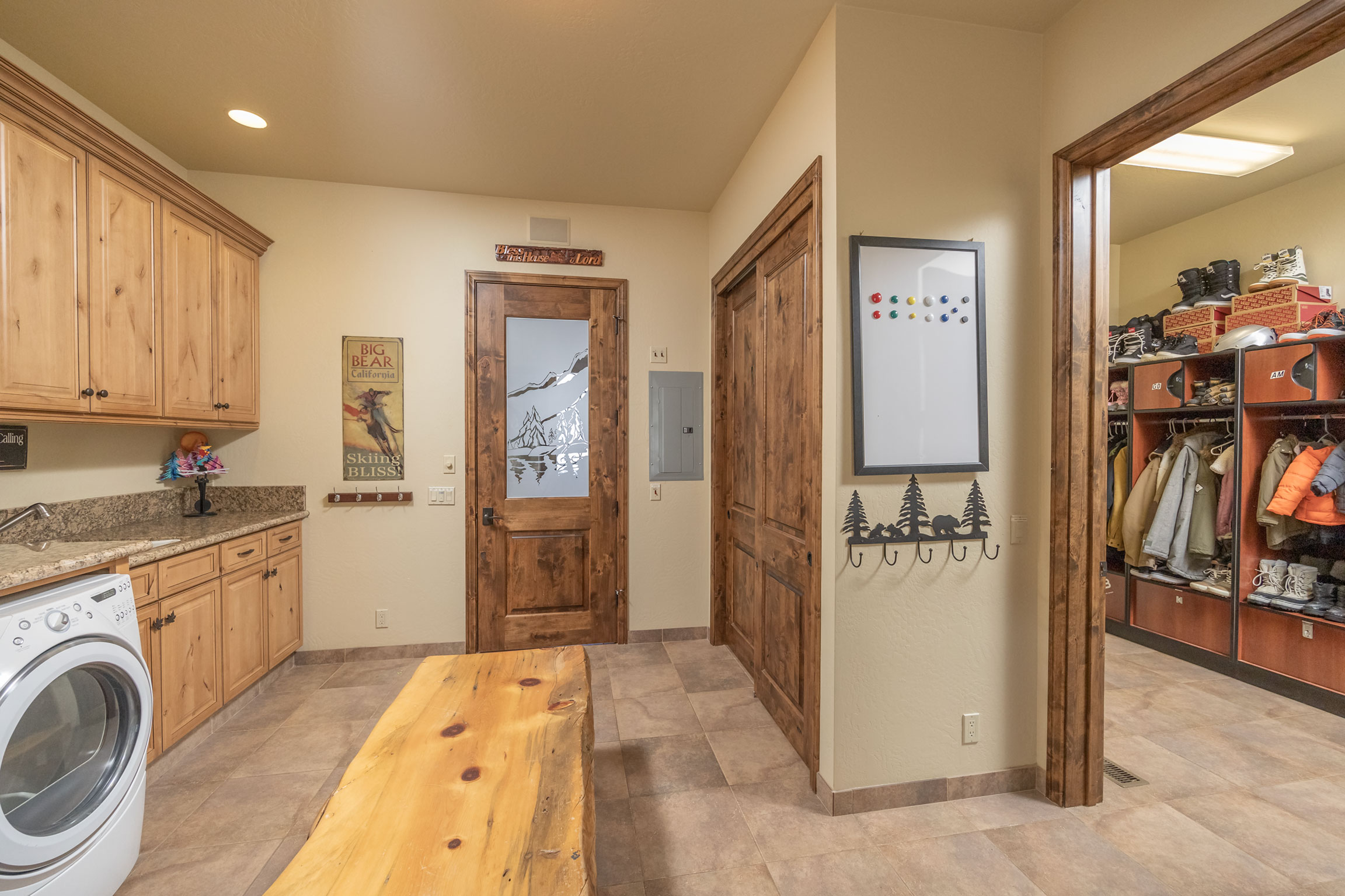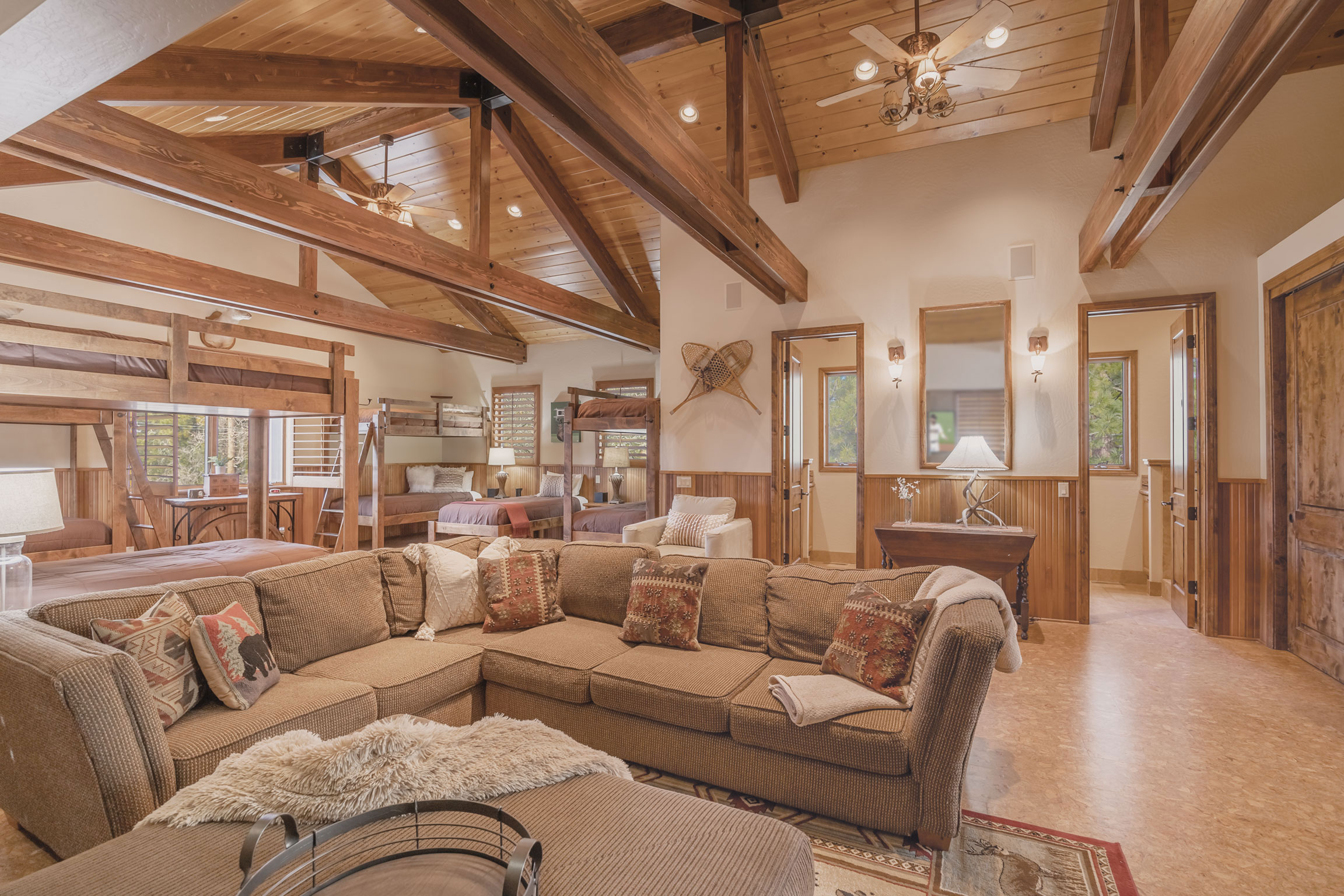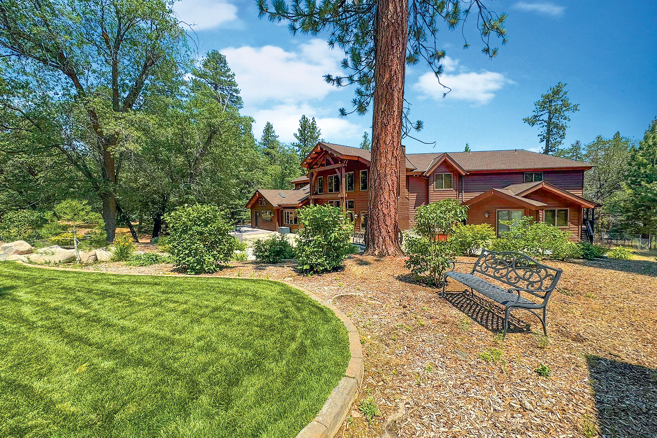 Experience the pinnacle of Big Bear mountain living in this stunning architectural masterpiece, perfectly situated on a massive 2.74-acre lot backing to National Forest—all just 3 mins from Snow Summit Resort! This iconic, unparalleled estate seamlessly blends luxury craftsmanship with an incredible "fun factor," making it THE premier four-season retreat. Upon entering, you are instantly transported by a breathtaking wall of Anderson windows inviting the beauty of the outdoors in. Peace and serenity are found in the many wonderful living spaces, while the entertainment options are unmatched. The home features a massive game room with pool table, TV area, expansive wet bar, wood-burning fireplace, and a huge game closet for endless indoor fun. Accommodations are plentiful, including a spectacular 10-bed bunk room with dedicated bathrooms, perfect for large gatherings. The exquisite chef’s eat-in kitchen boasts a granite island with plenty of seating for family and friends and is a fantastic space for food prep and entertaining. This cook’s kitchen is fully loaded with a Wolf range, Subzero refrigerator & freezer, Viking warming oven, hot water pot filler, and 2 Bosch dishwashers. Retreat to the primary suite, which offers a cozy sitting area w/ private fireplace and a luxury bathroom featuring a jetted tub and a massive steam shower. Superior quality is on display throughout with premier plank flooring, custom wrought iron, custom lighting, tankless water heaters, and 4 forced-air furnaces for zoned comfort. The outdoor living is truly world-class, featuring a massive concrete patio/deck, outdoor spa, built-in BBQ, and a lava rock fire pit. The private "adventure park" includes frisbee golf, a horseshoe pit, putting green, a kids' playhouse w/rooftop deck, and even a 4-kid zipline! An oversized 3-car garage with storage room provides ample space for gear. Bonus: a private well serves the home & landscaping—NO water bill! Come see Big Bear living at its finest!
