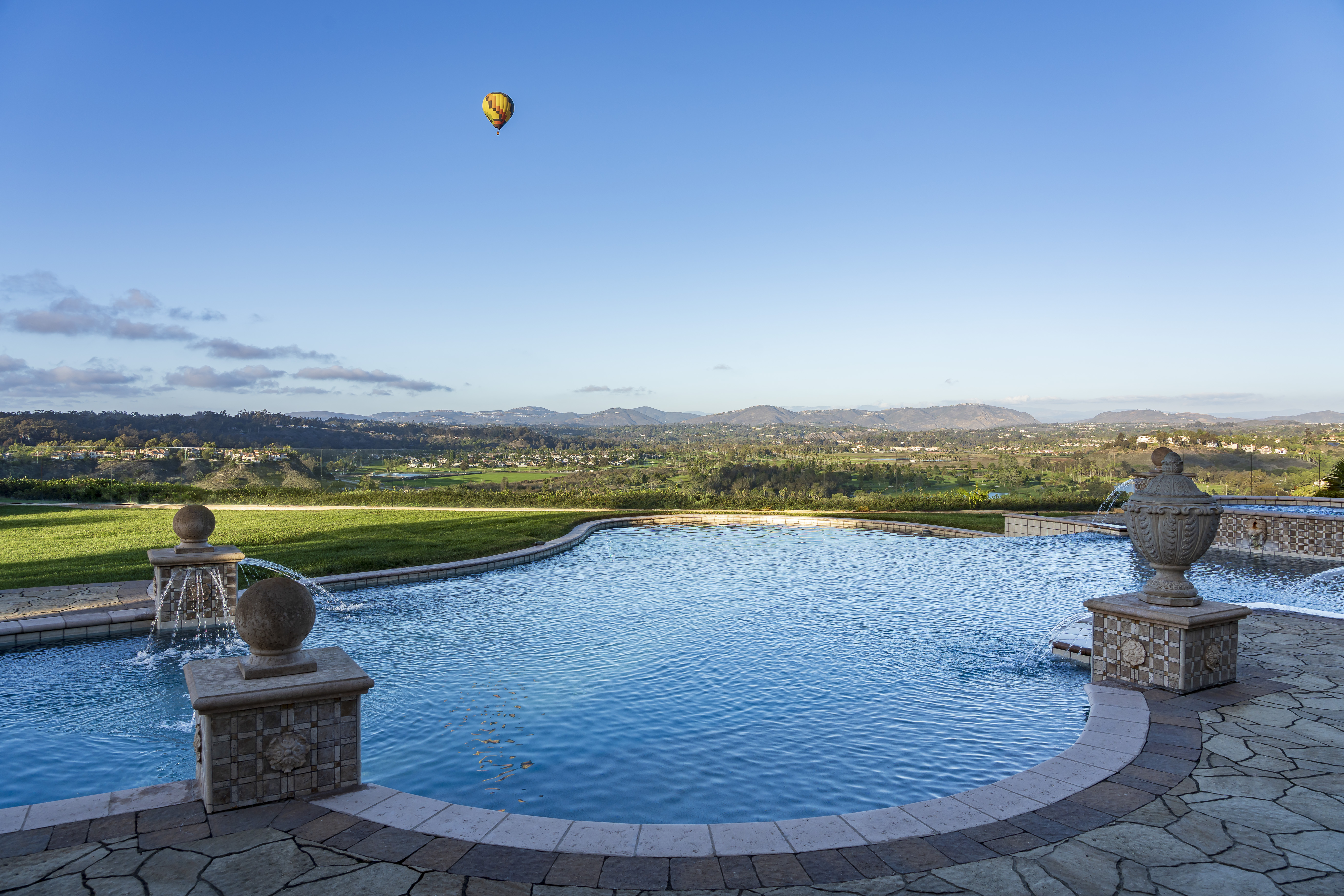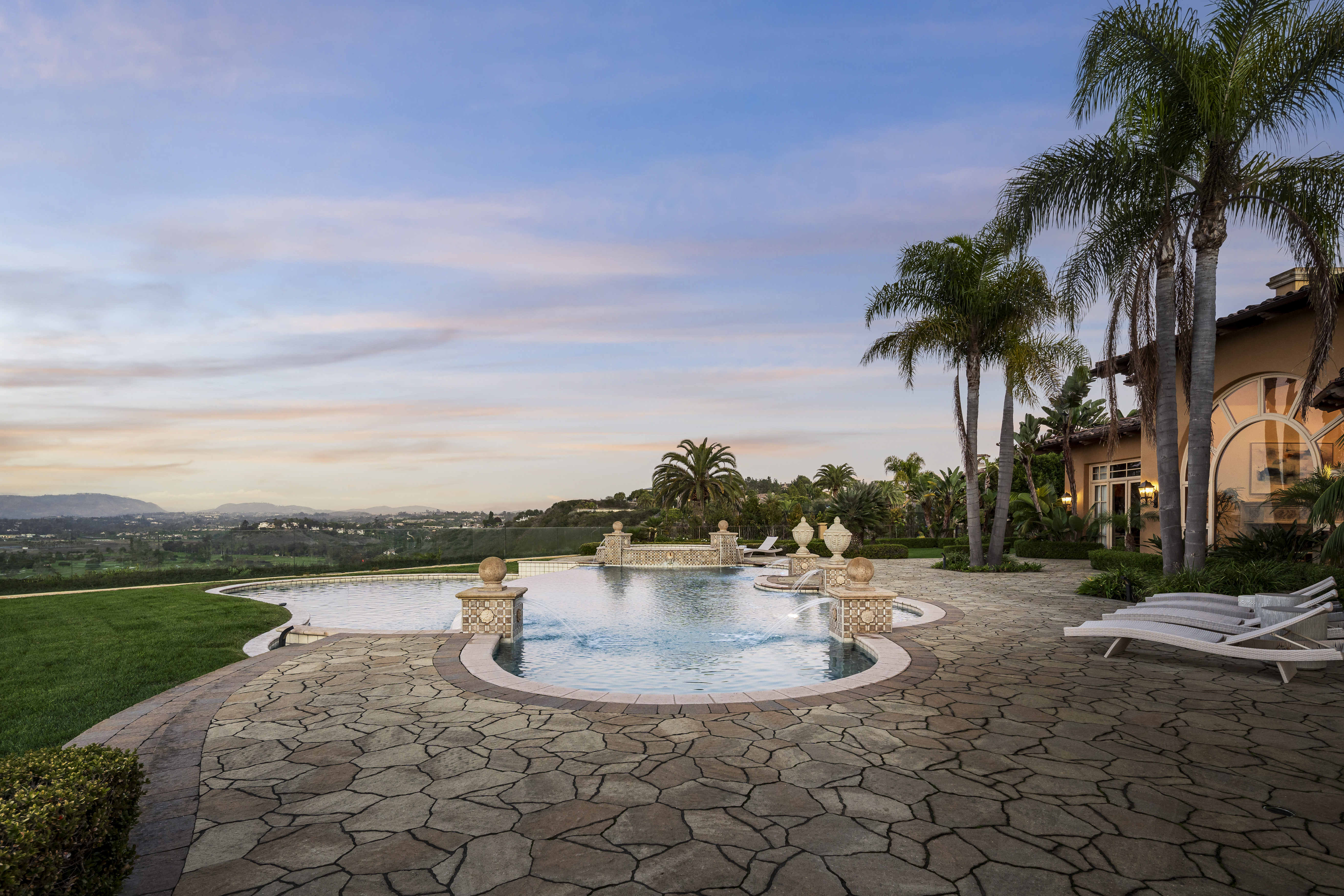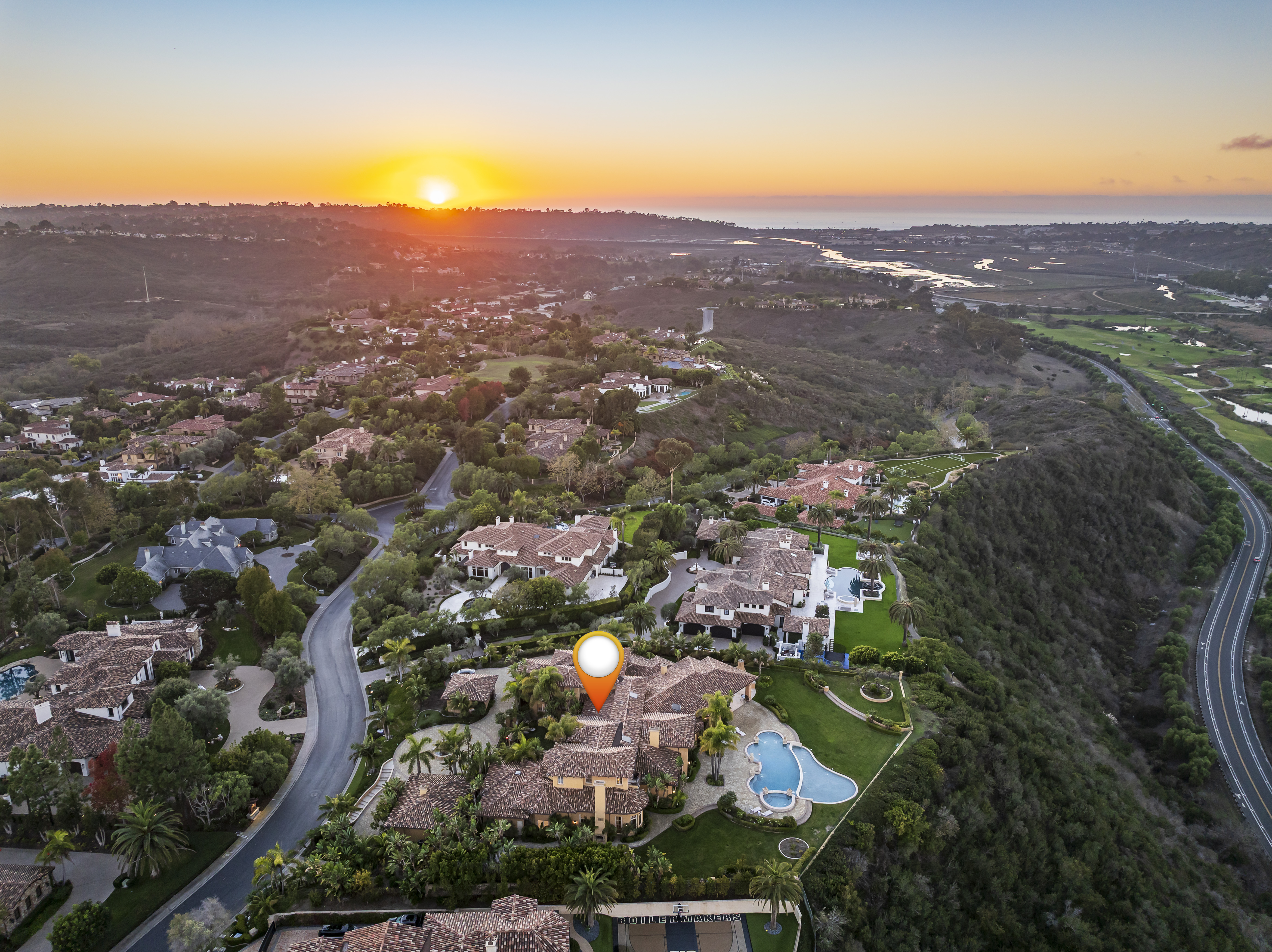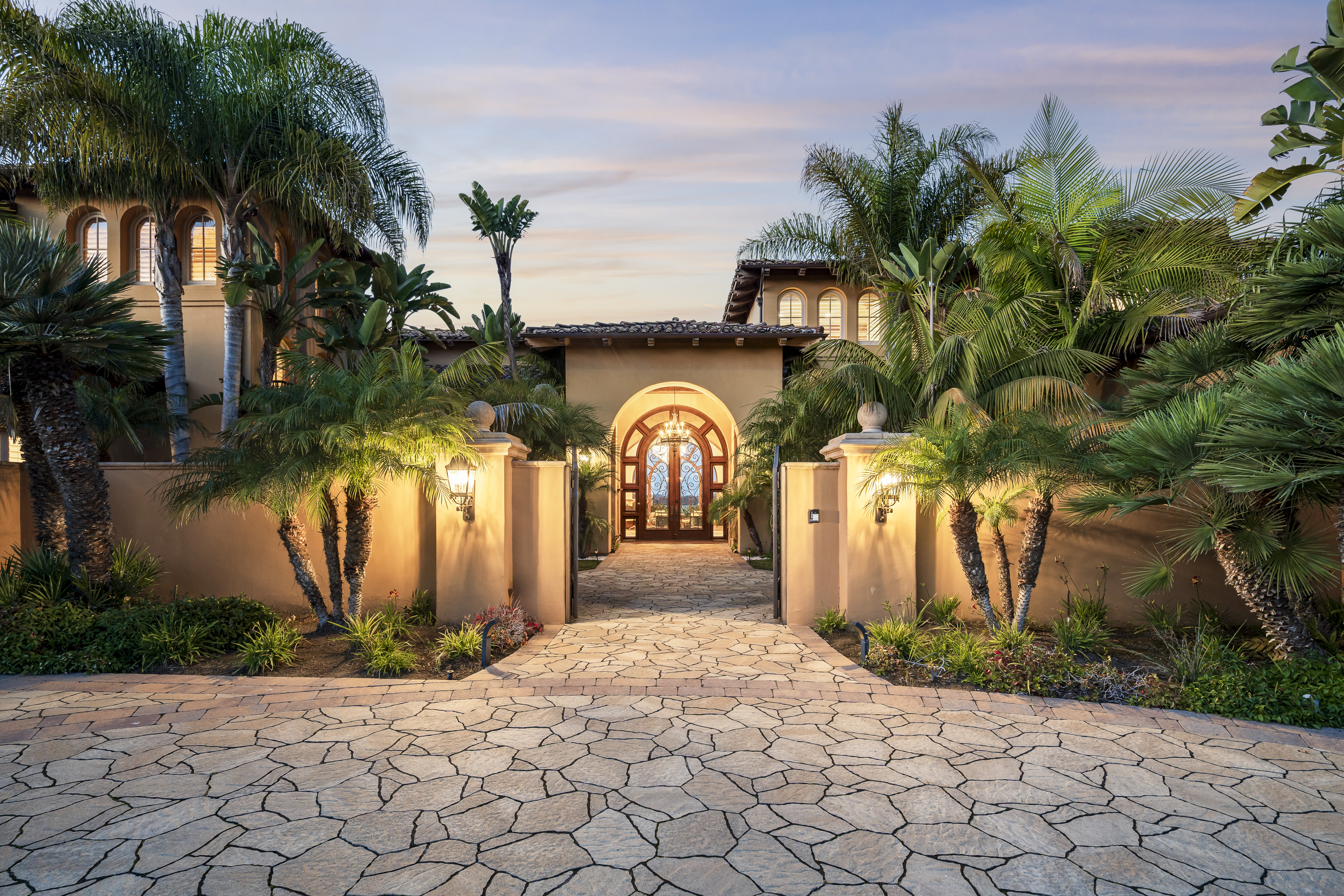 Elegant updated custom estate located within the prestigious 24-hour guard-gated community of Rancho Pacifica. Perfectly positioned on a premier 1.2-acre promontory site, the property enjoys stunning panoramic views—ocean to the west, golf course vistas to the north, and mountains to the east. Built in 2004, the main residence plus detached guest house and six-car garage are surrounded by mature landscaping that provides beauty, privacy, and a grand sense of arrival. Inside, the home showcases exceptional craftsmanship, soaring ceilings, and a thoughtful floor plan designed for both large-scale entertaining and comfortable everyday living. The main house offers six luxurious ensuite bedrooms, including an expansive primary retreat with sitting area, stone fireplace, large outdoor loggia with sweeping views, oversized dressing room, and spa-inspired bath. Generous formal and informal living spaces include a living and dining salon, chef’s kitchen with breakfast alcove and butler’s pantry, grand great room with open-beam ceilings and professional bar, game room, climate-controlled wine cellar, theater, and library/parlor. The resort-style grounds feature an outdoor living/dining room with stone fireplace, professional-grade BBQ and alfresco kitchen, pool bath, outdoor shower, two additional fireplaces, and a large pool with water feature and spa—all set within lush, manicured surroundings. With stone and wood flooring, custom cabinetry, and security system, this property offers exceptional quality, privacy, and luxury in one of Rancho Pacifica’s most coveted locations.