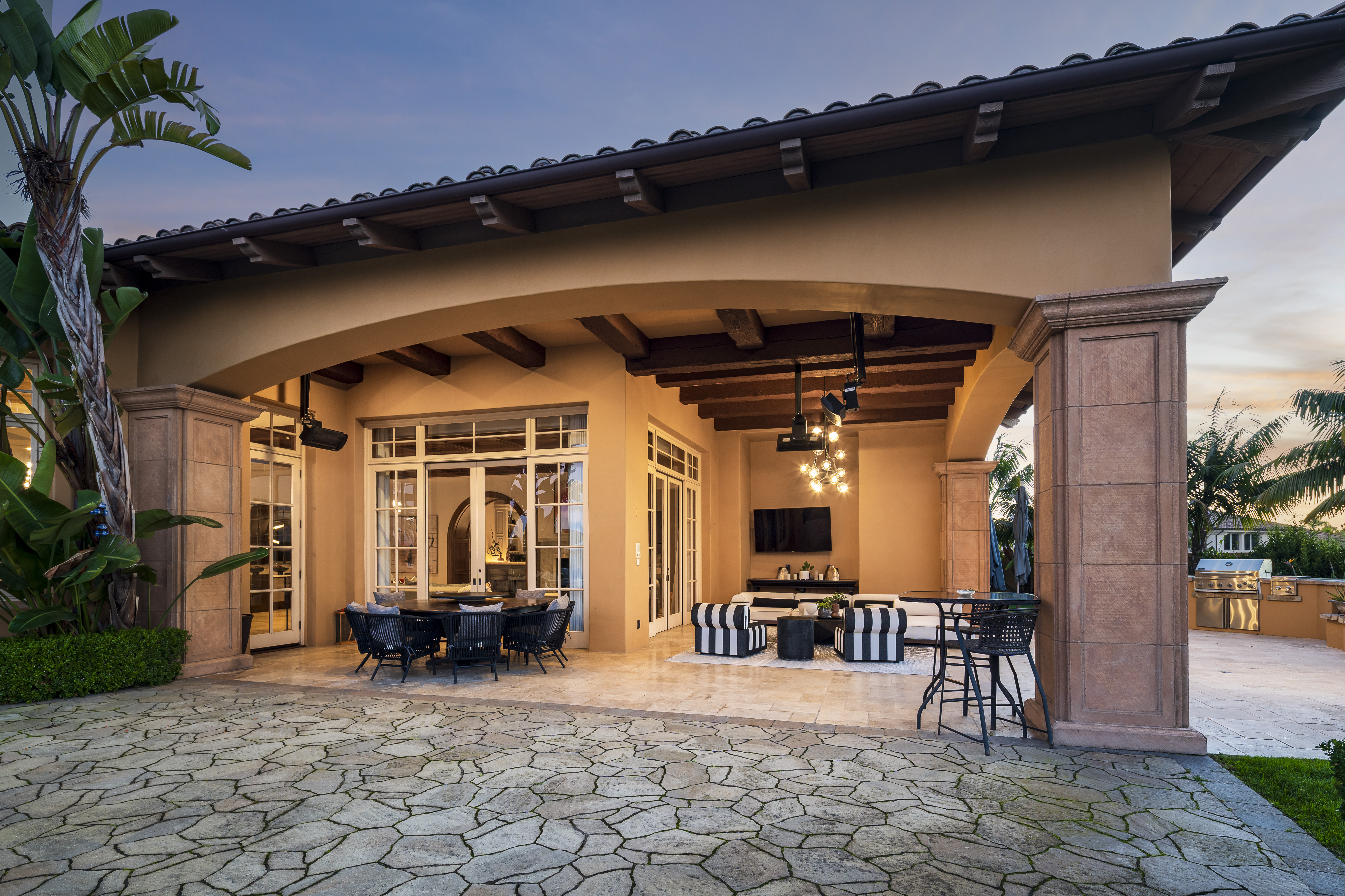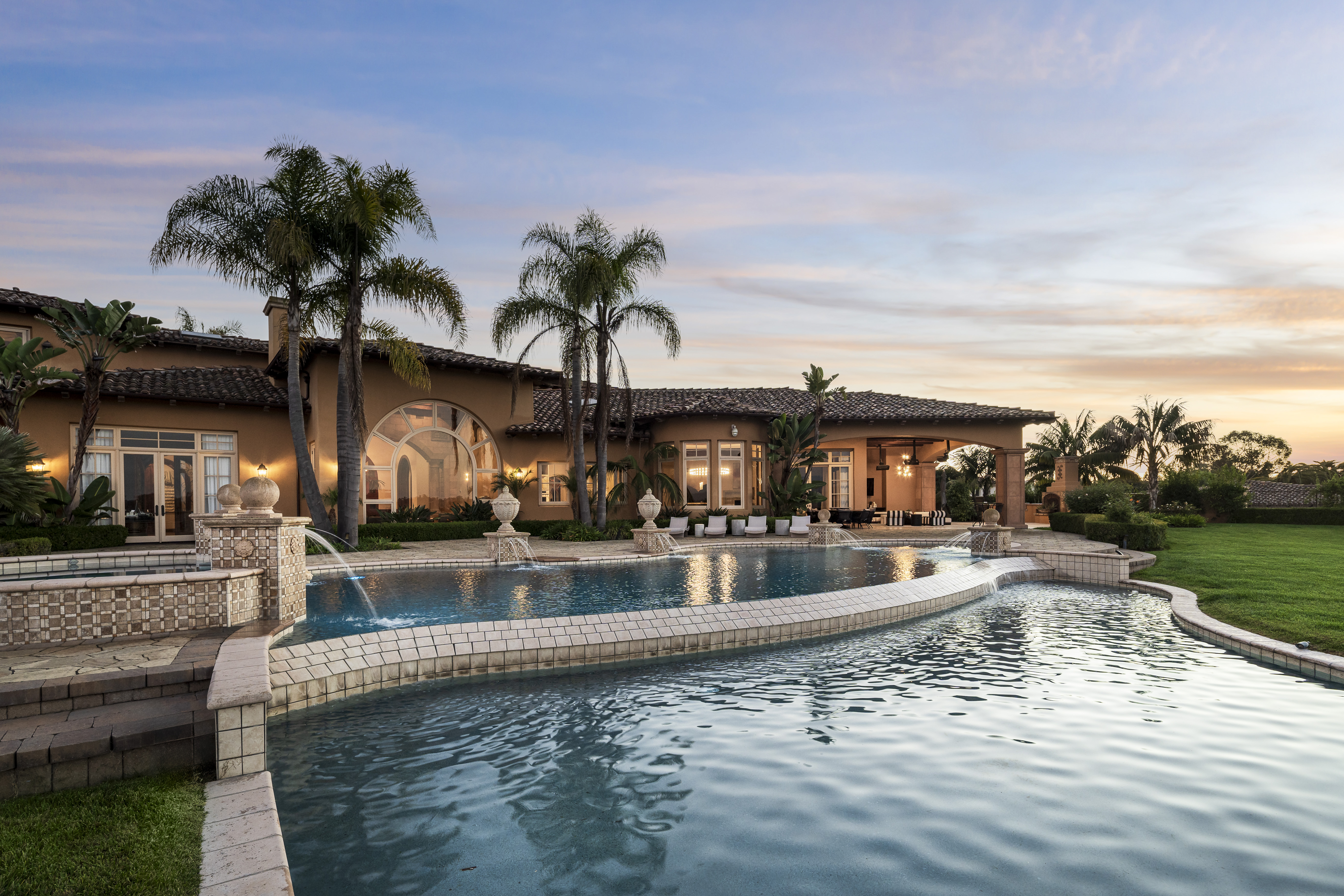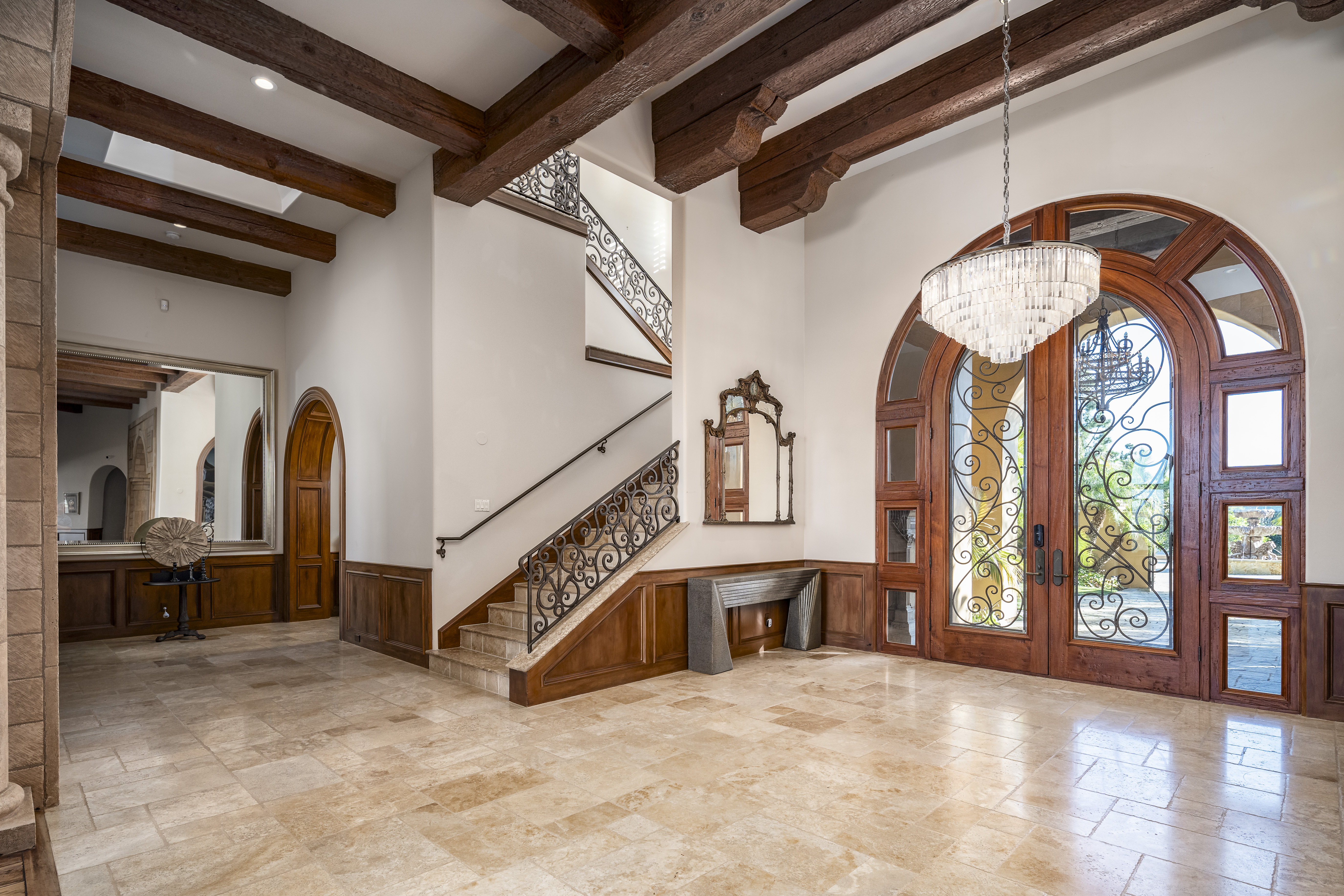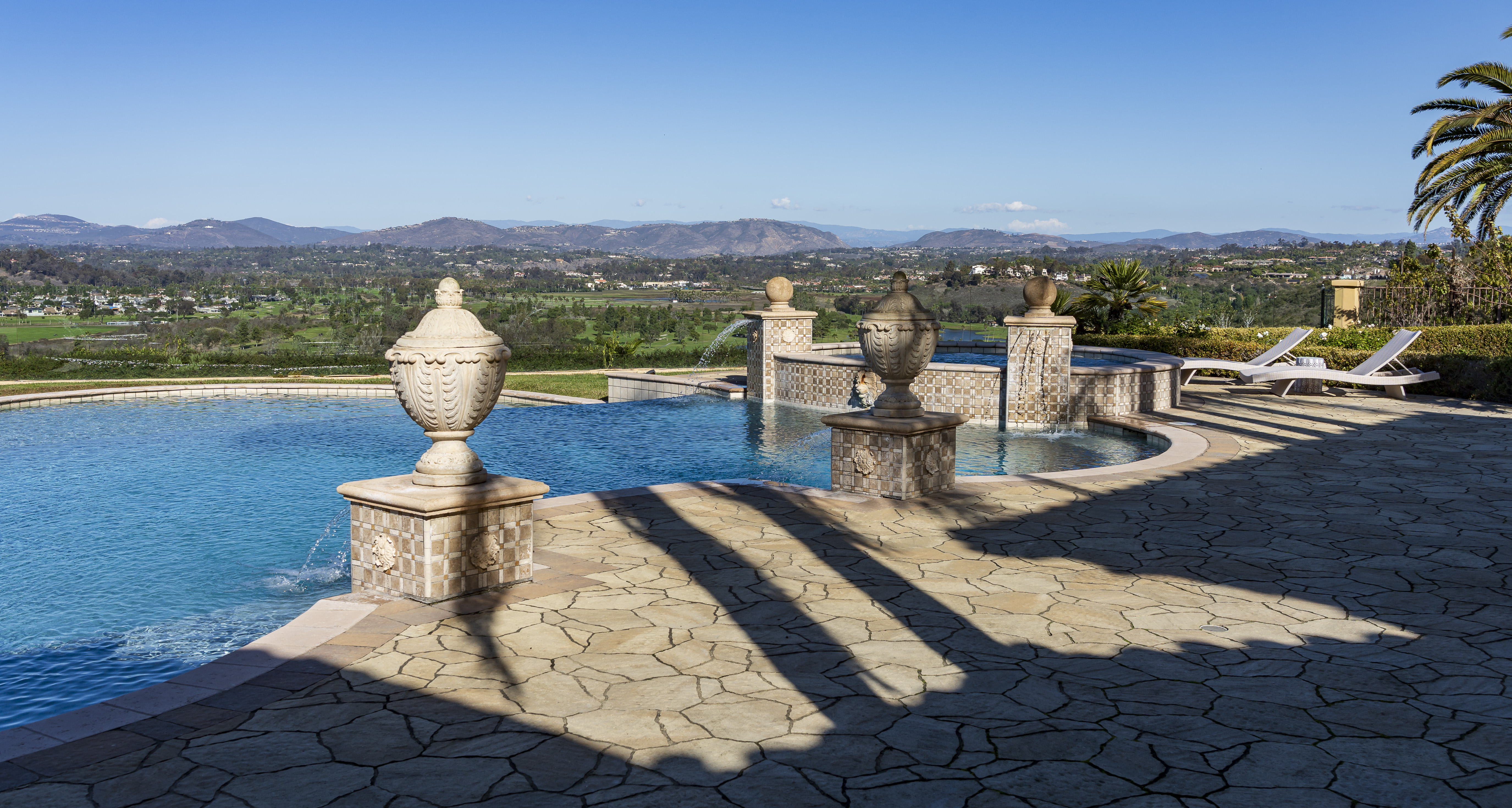 Elegant updated custom estate located within the prestigious 24-hour guard-gated community of Rancho Pacifica. Perfectly positioned on a premier 1.2-acre promontory site, the property enjoys stunning panoramic views—ocean to the west, golf course vistas to the north, and mountains to the east. Built in 2004, the main residence plus detached guest house and six-car garage are surrounded by mature landscaping that provides beauty, privacy, and a grand sense of arrival. Inside, the home showcases exceptional craftsmanship, soaring ceilings, and a thoughtful floor plan designed for both large-scale entertaining and comfortable everyday living. The main house offers six luxurious ensuite bedrooms, including an expansive primary retreat with sitting area, stone fireplace, large outdoor loggia with sweeping views, oversized dressing room, and spa-inspired bath. Generous formal and informal living spaces include a living and dining salon, chef’s kitchen with breakfast alcove and butler’s pantry, grand great room with open-beam ceilings and professional bar, game room, climate-controlled wine cellar, theater, and library/parlor. The resort-style grounds feature an outdoor living/dining room with stone fireplace, professional-grade BBQ and alfresco kitchen, pool bath, outdoor shower, two additional fireplaces, and a large pool with water feature and spa—all set within lush, manicured surroundings. With stone and wood flooring, custom cabinetry, and security system, this property offers exceptional quality, privacy, and luxury in one of Rancho Pacifica’s most coveted locations.