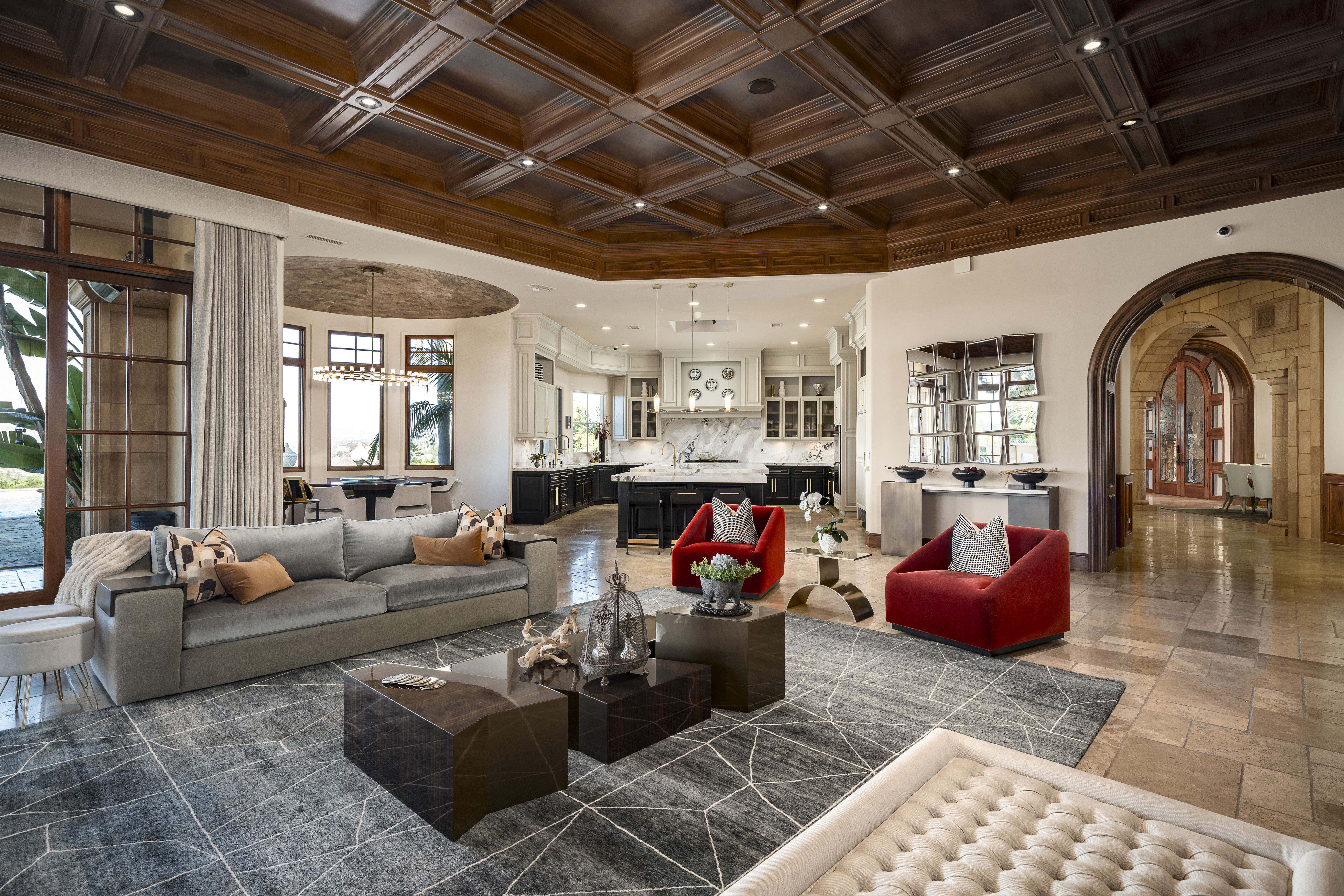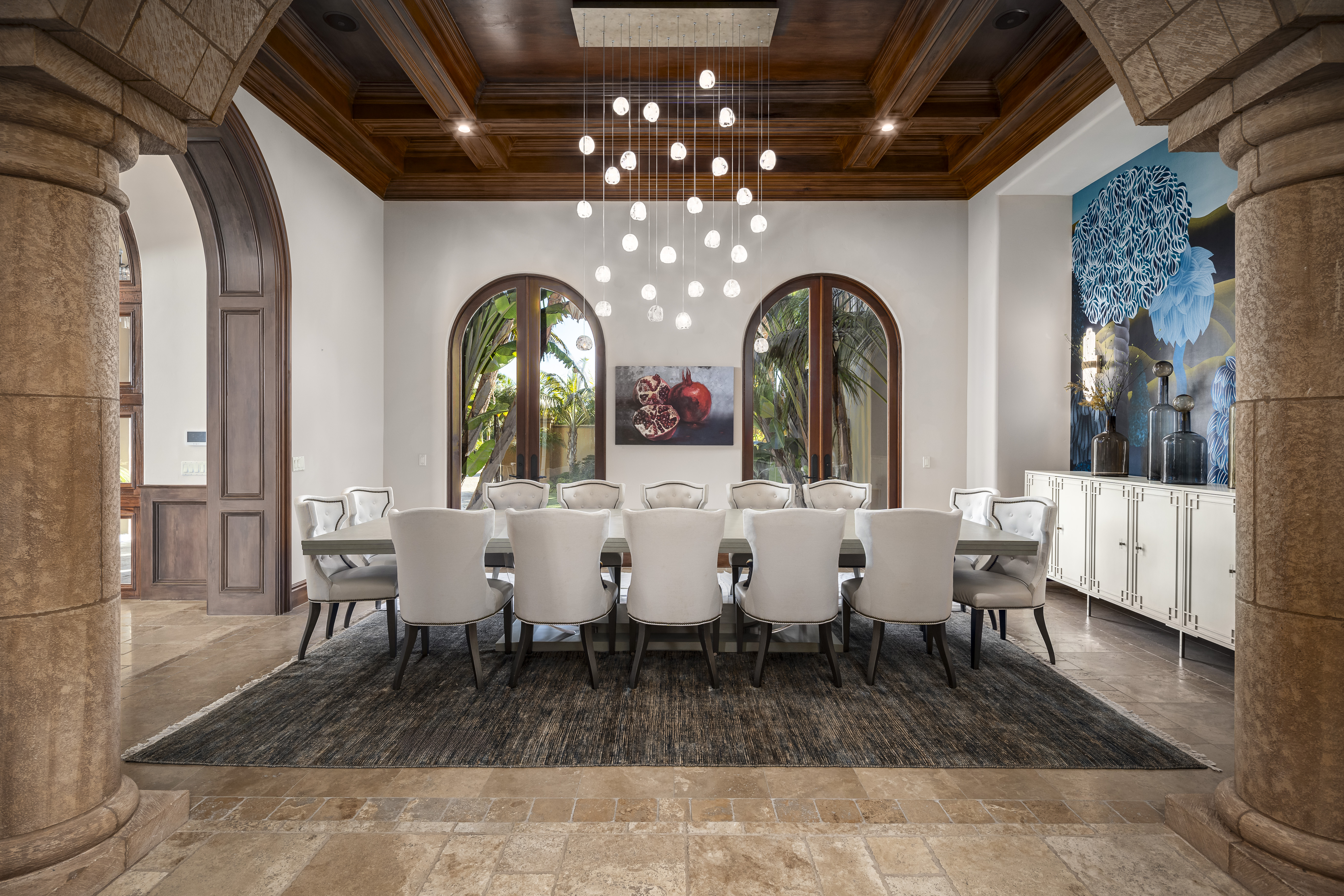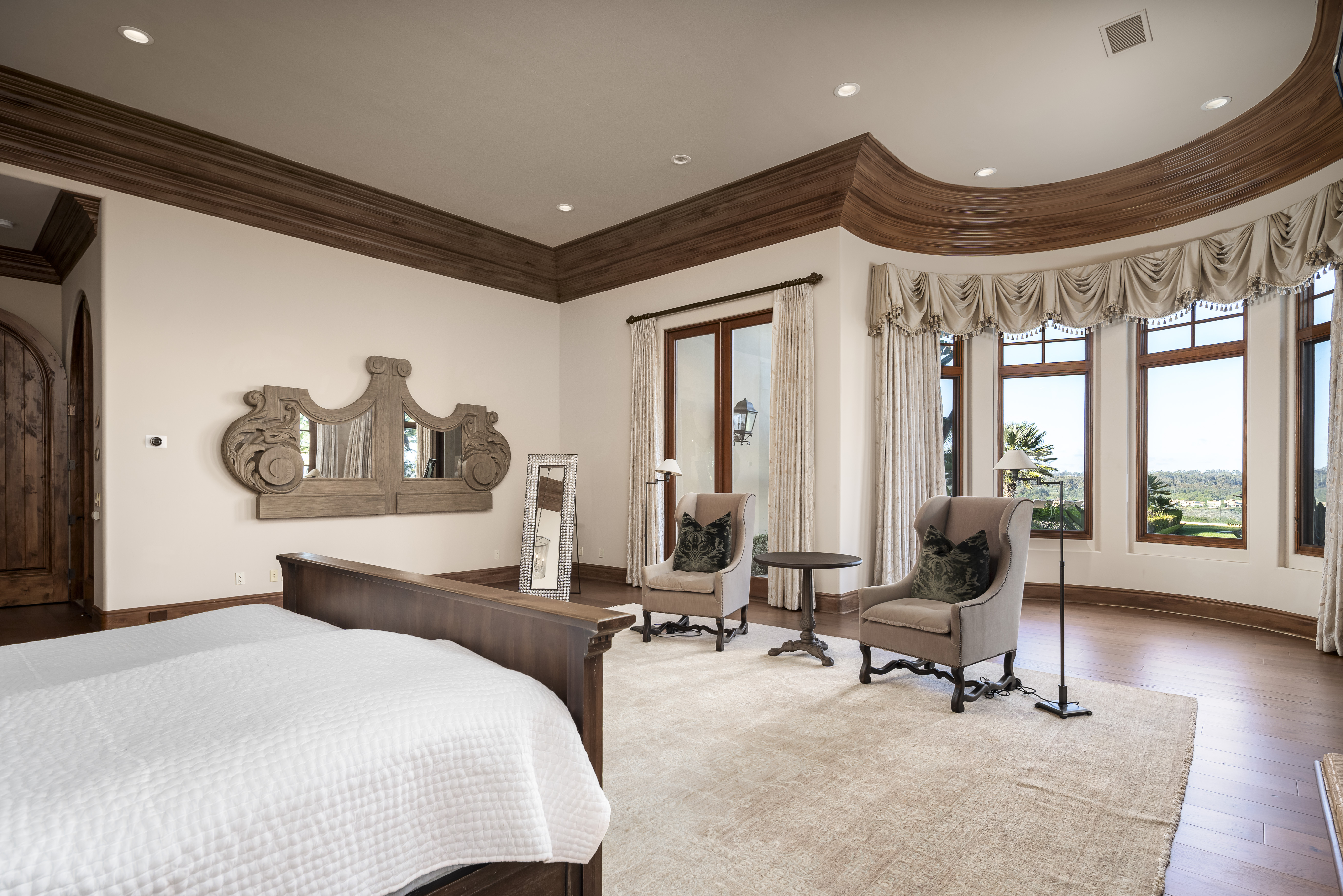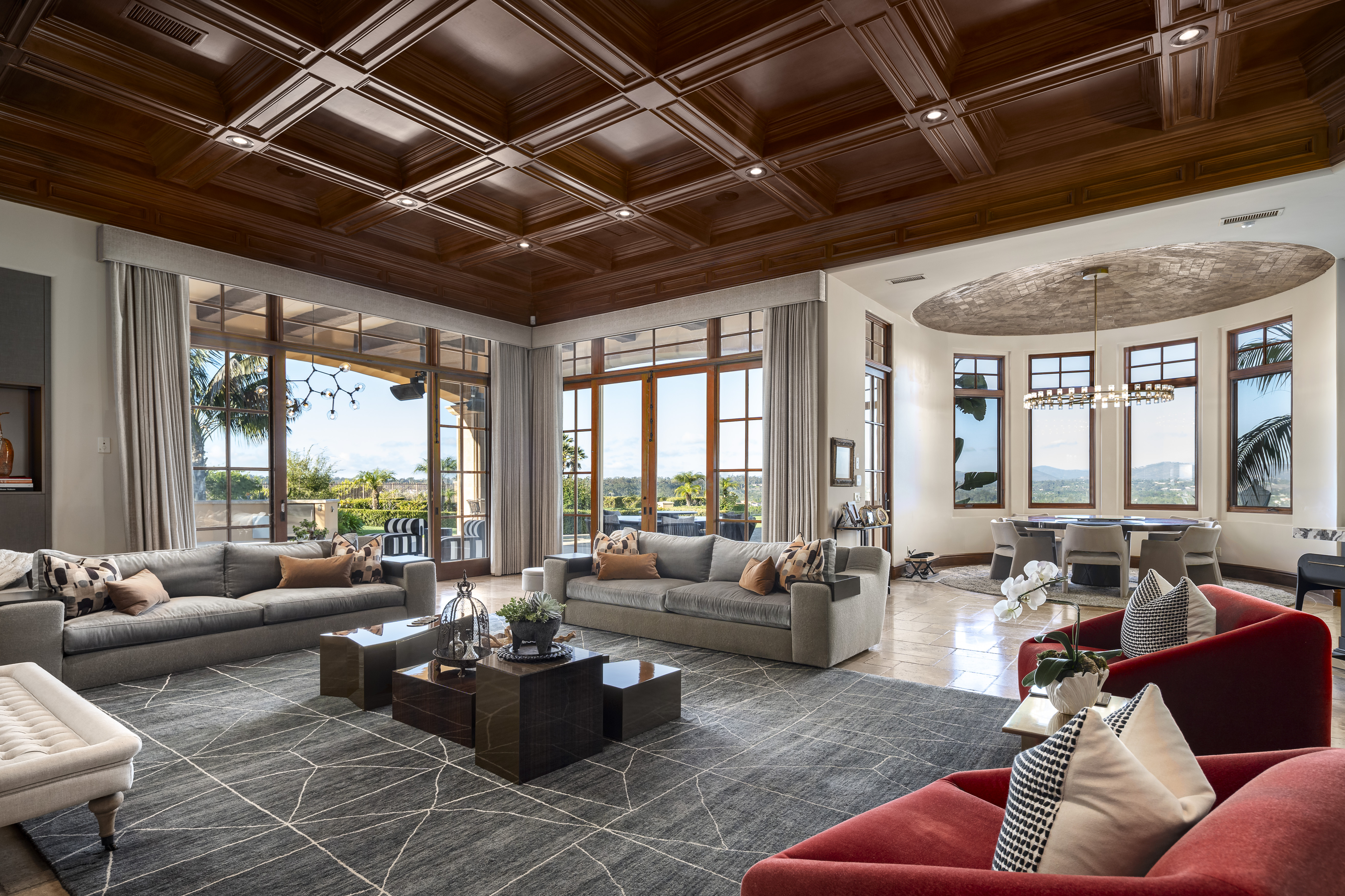Elegant updated custom estate located within the prestigious 24-hour guard-gated community of Rancho Pacifica. Perfectly positioned on a premier 1.2-acre promontory site, the property enjoys stunning panoramic views—ocean to the west, golf course vistas to the north, and mountains to the east. Built in 2004, the main residence plus detached guest house and six-car garage are surrounded by mature landscaping that provides beauty, privacy, and a grand sense of arrival. Inside, the home showcases exceptional craftsmanship, soaring ceilings, and a thoughtful floor plan designed for both large-scale entertaining and comfortable everyday living. The main house offers six luxurious ensuite bedrooms, including an expansive primary retreat with sitting area, stone fireplace, large outdoor loggia with sweeping views, oversized dressing room, and spa-inspired bath. Generous formal and informal living spaces include a living and dining salon, chef’s kitchen with breakfast alcove and butler’s pantry, grand great room with open-beam ceilings and professional bar, game room, climate-controlled wine cellar, theater, and library/parlor. The resort-style grounds feature an outdoor living/dining room with stone fireplace, professional-grade BBQ and alfresco kitchen, pool bath, outdoor shower, two additional fireplaces, and a large pool with water feature and spa—all set within lush, manicured surroundings. With stone and wood flooring, custom cabinetry, and security system, this property offers exceptional quality, privacy, and luxury in one of Rancho Pacifica’s most coveted locations.