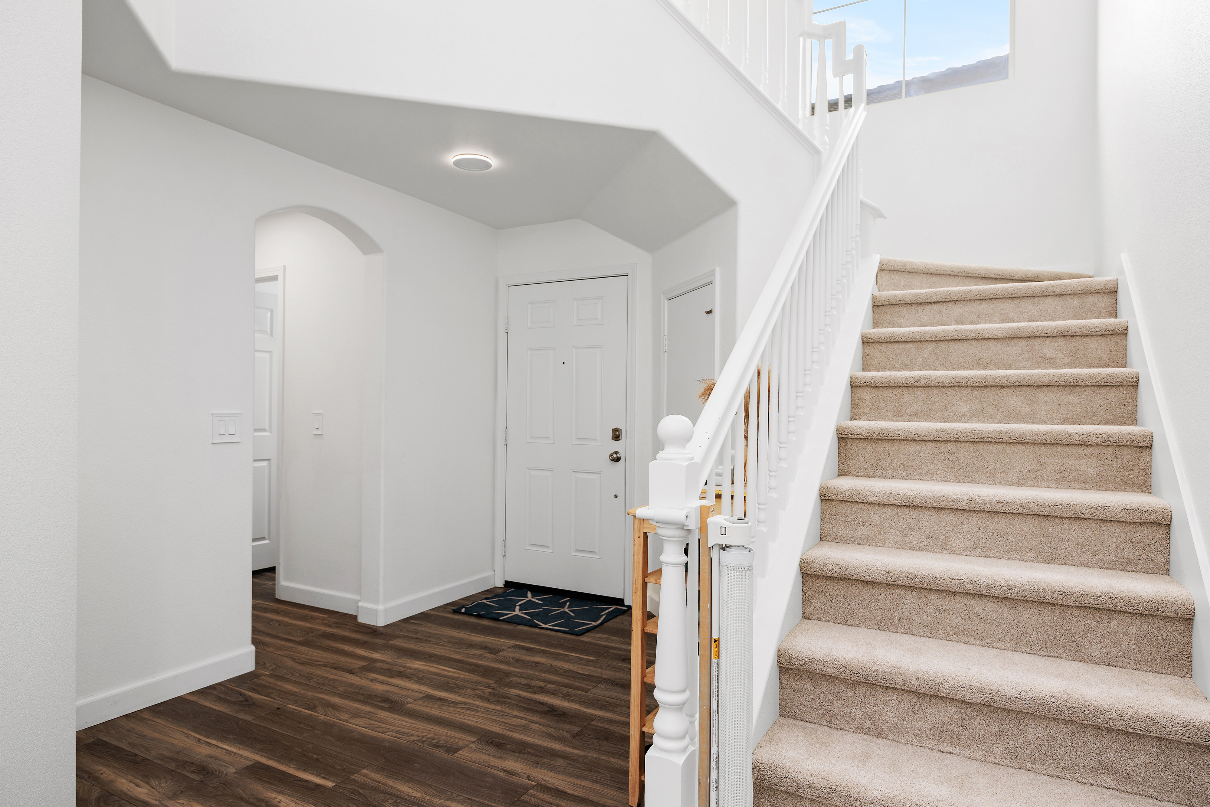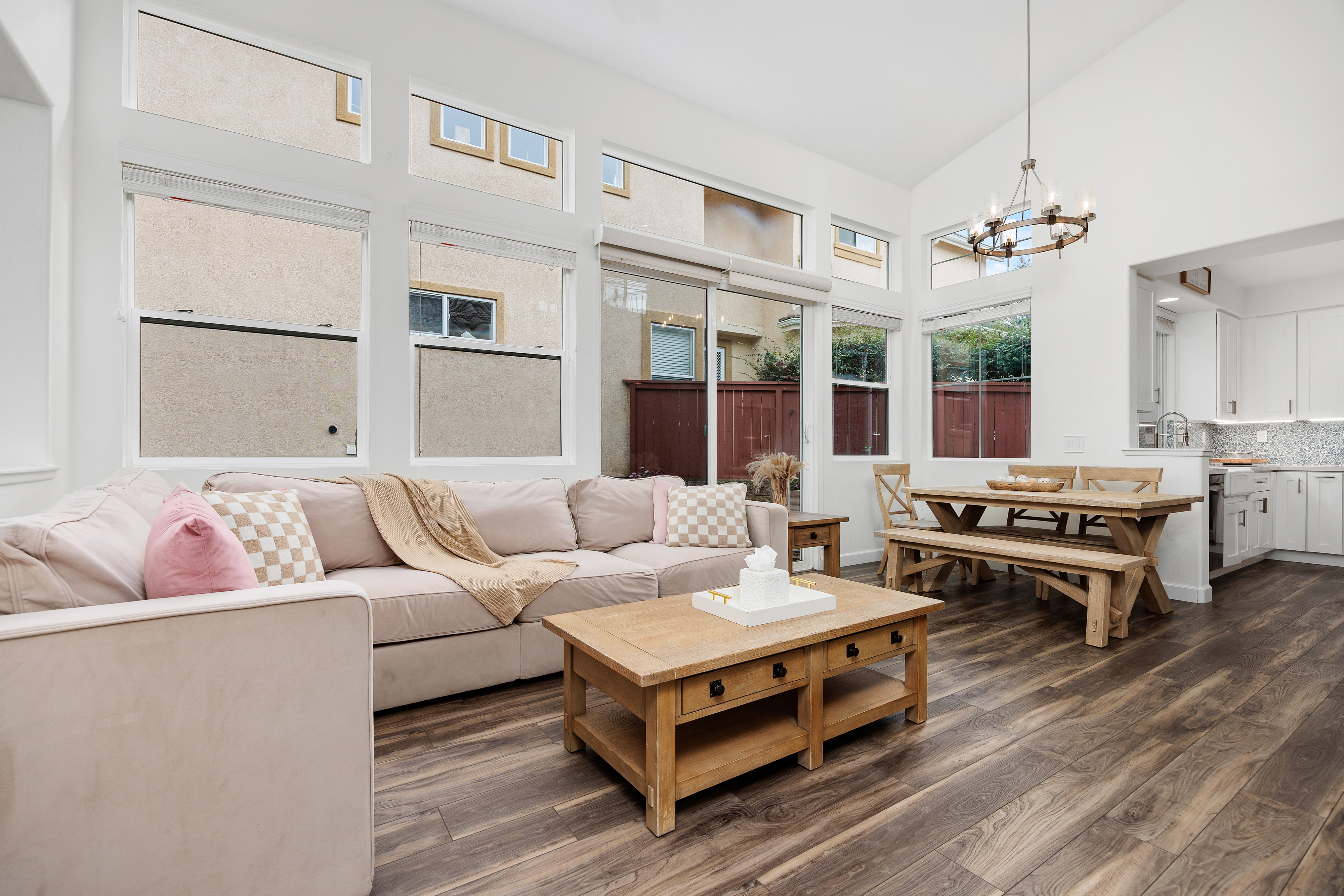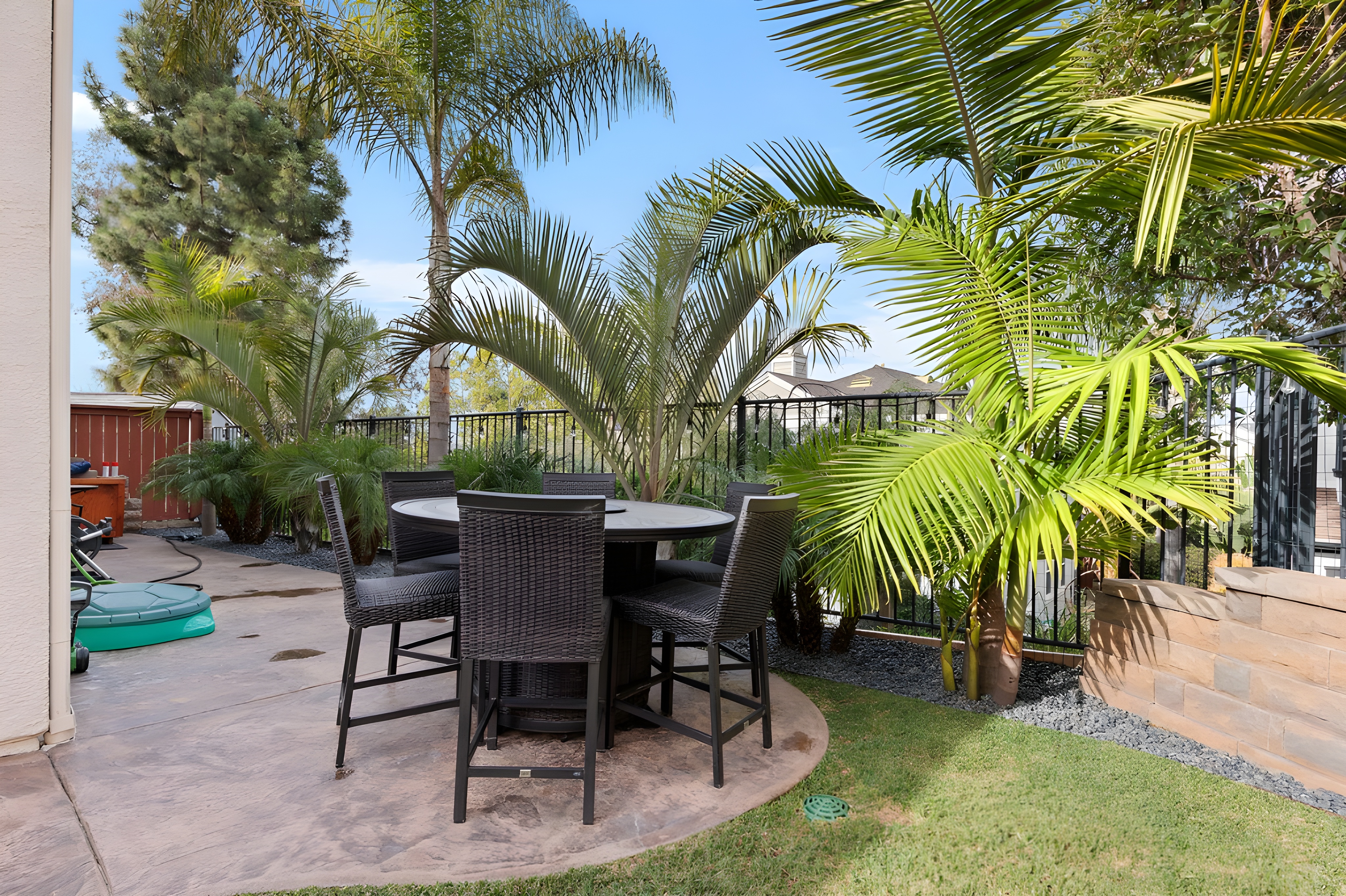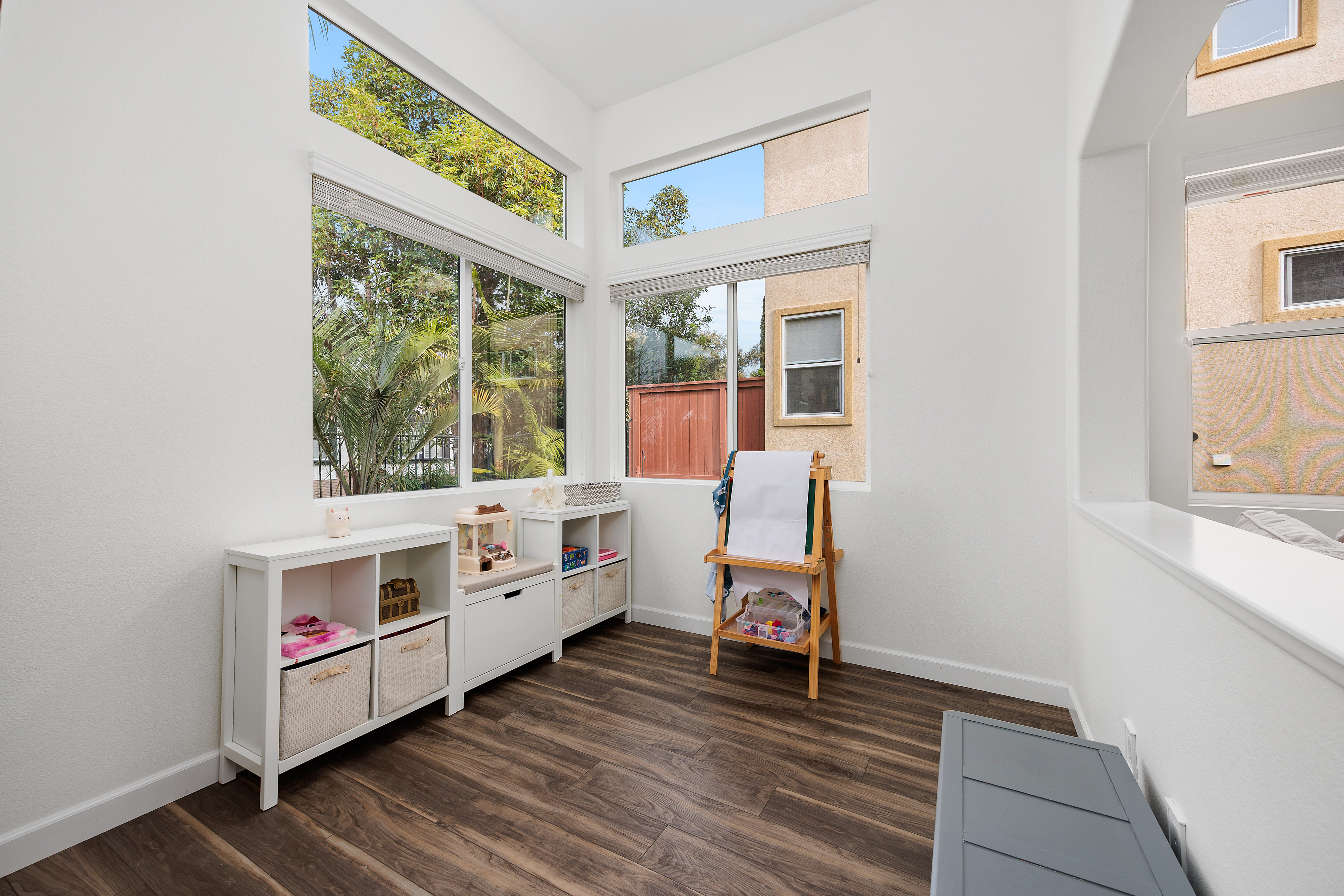 This inviting home in a quiet, gated enclave of Carlsbad offers an open-concept floor plan centered around a bright family room with a stone-tiled fireplace and soaring ceilings. Beautifully updated, the home offers a highly desirable main-floor primary suite with a fully renovated bathroom and custom walk-in closet. The remodeled kitchen features new stainless steel appliances, gas cooktop, farmhouse sink, custom backsplash, quartz countertops, and under-cabinet lighting. A versatile flex space adjacent to the family room and primary bedroom could be converted to an office or gym. Upstairs two additional bedrooms share a full bathroom. Sliding doors off the great room open to a beautifully manicured backyard with grassy lawn. Additional highlights include new lighting, new window coverings, and brand new upstairs carpet, plus a laundry closet with room for full-size side-by-side washer and dryer and a 3-car garage. Outdoors, the thoughtfully designed tropical landscaping includes multiple palm trees, birds-of-paradise, stone accents, and both sprinkler and drip irrigation systems. Neighborhood amenities include a playground, dog park, and dedicated RV/boat storage, and front yard maintenance for consistent curb appeal. Located within the sought-after Carlsbad School District, with convenient access beaches, shopping, dining, golf, freeways, and more! A truly turnkey home combining comfort, style, and versatility.