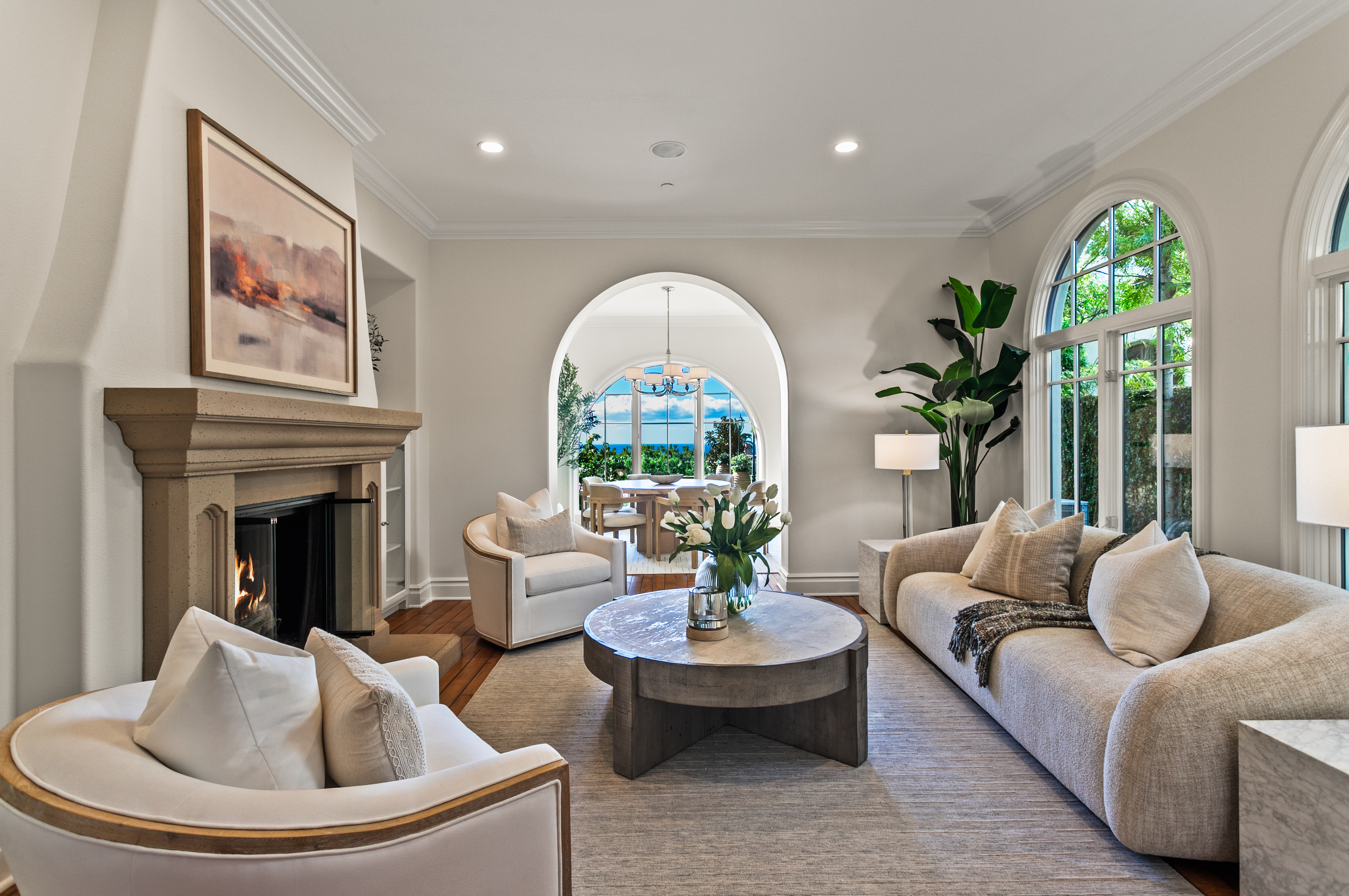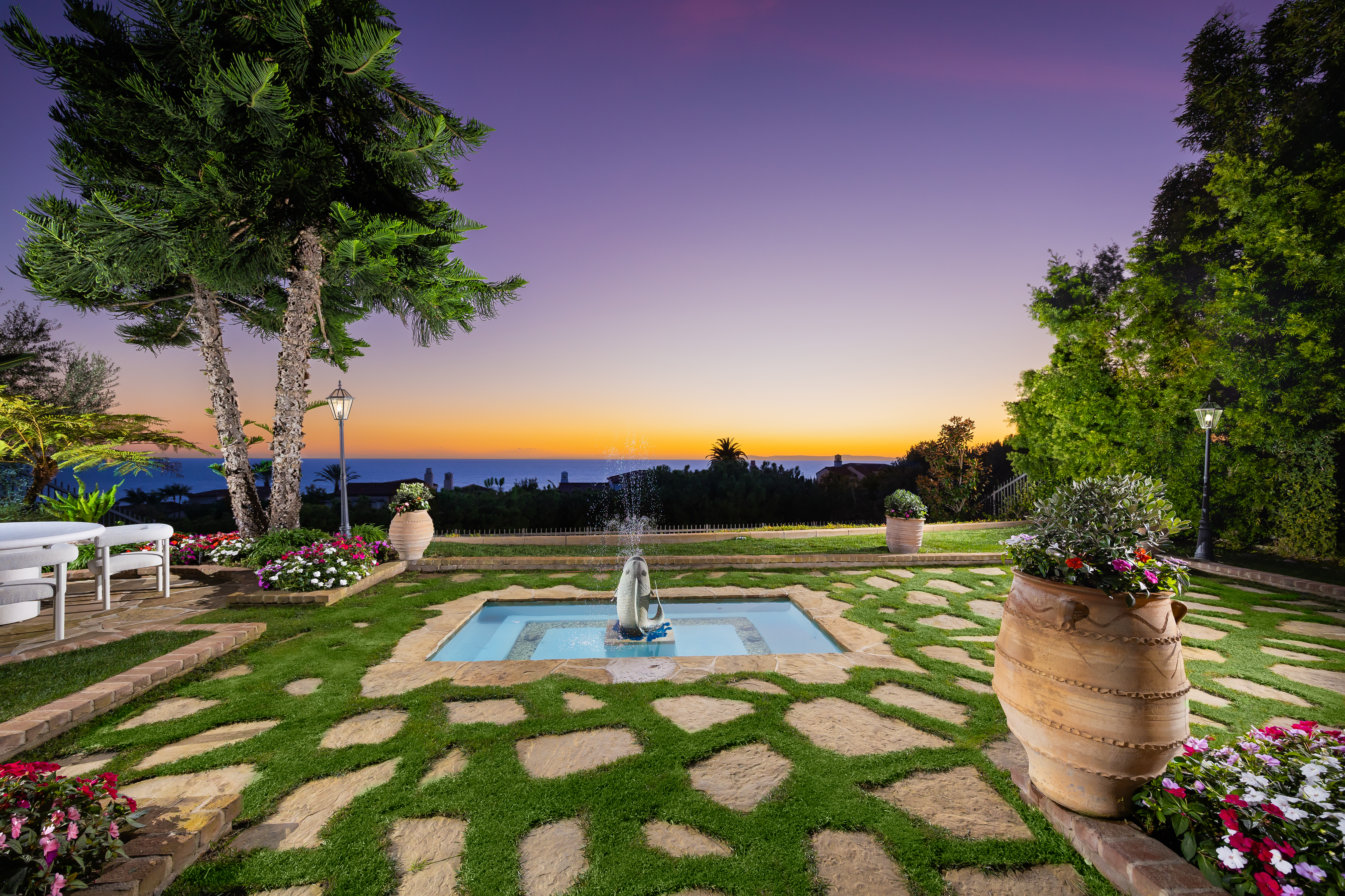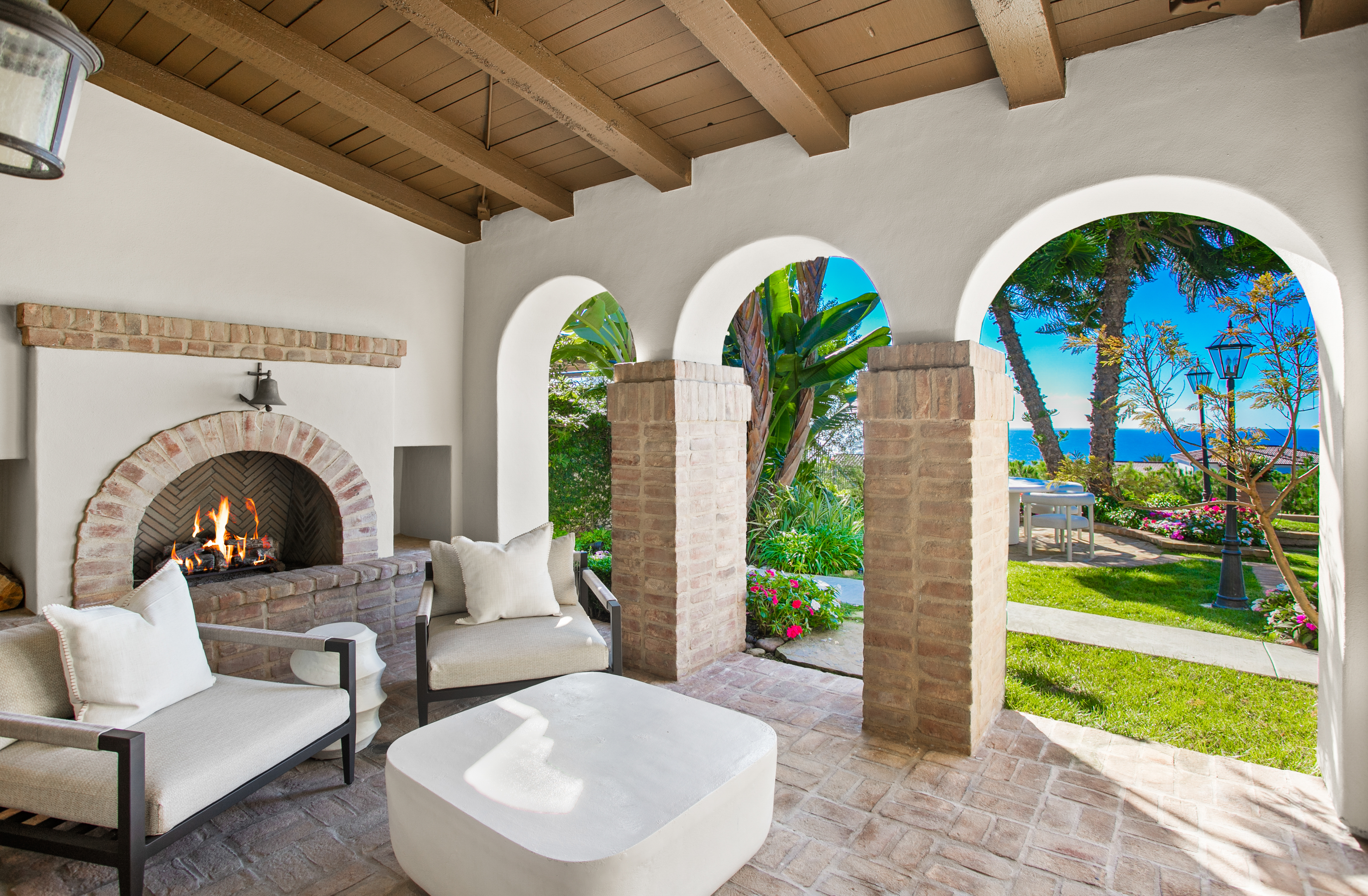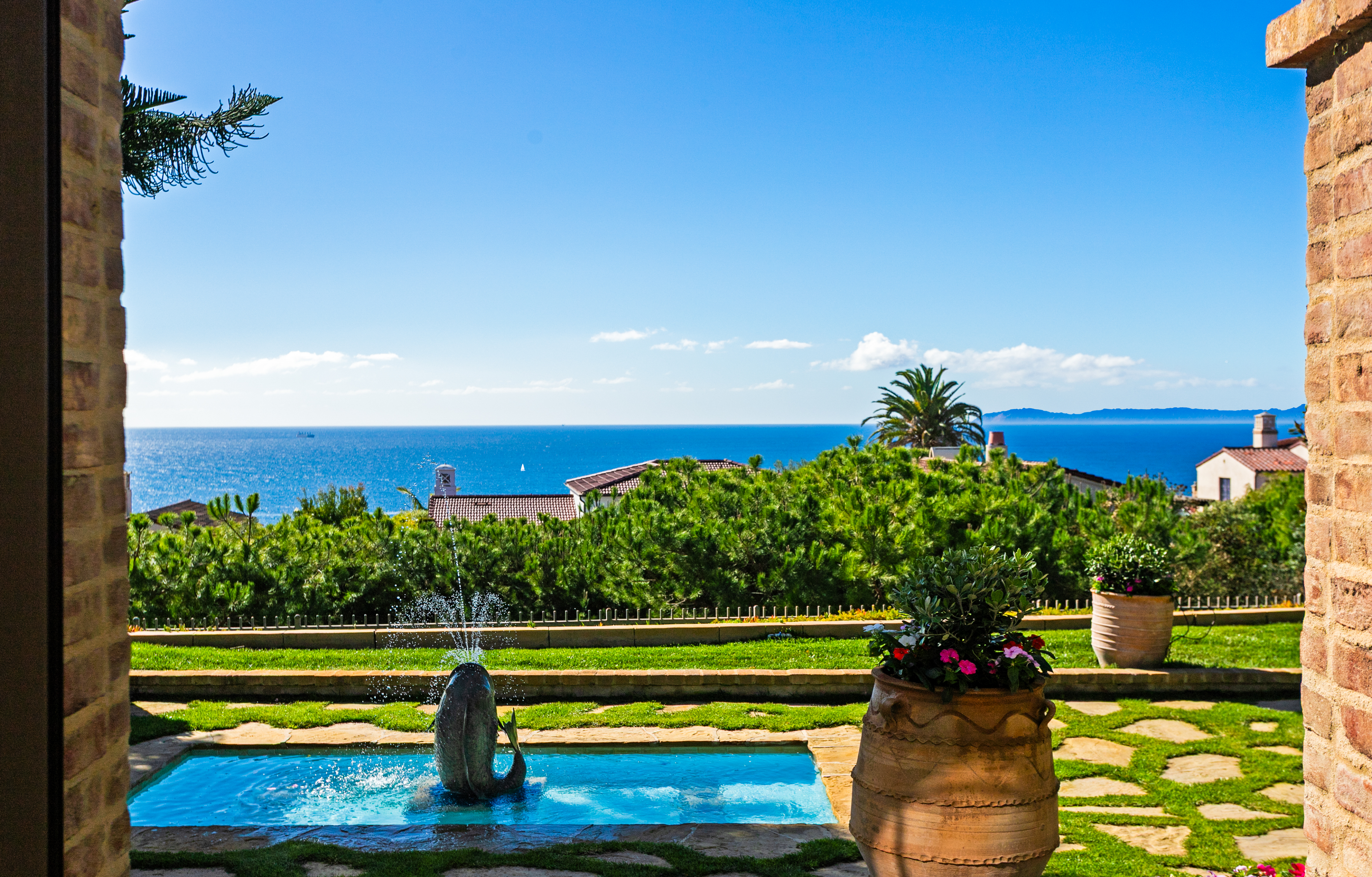 Set within the heart of Crystal Cove, 56 Archipelago is a rare coastal jewel: an exceptional single-level residence, a distinction held by fewer than five percent of homes in the community, with extraordinary ocean, sunset, and Catalina views. Once a former model for the Oceana tract, this home retains a sense of architectural intention and refinement, now recently refreshed to feel both elevated and effortlessly livable. Spanning approximately 3,631 square feet on an expansive 10,180-square-foot lot, the home contains 3 bedrooms and 4 bathrooms, an office, and a bonus room that could be used as a fourth bedroom. A stunning entry courtyard with tranquil fountain sets the tone; an intimate, sunlit arrival where ocean air drifts softly through brick and wood accents, offering a moment of calm before stepping inside. The single-level floor plan lives beautifully, allowing spaces to flow naturally from one to the next, ideal for both quiet daily living and relaxed entertaining. Large windows frame expansive ocean views, inviting natural light to dance across interiors finished in a thoughtful blend of wood, stone, and carpet flooring. The kitchen is warm and grounded, appointed with rich wood cabinetry, granite and stone countertops, and timeless materials that balance elegance with durability. Throughout the home, the finishes feel curated yet comfortable; refined without pretense. The home’s oversized lot enhances privacy and openness, while its central location offers rare walkability and access within Crystal Cove. Just moments away, the coastal trails and preserved beauty of Crystal Cove State Park meet the everyday conveniences and seaside charm of the Crystal Cove Shopping Center. Residents also enjoy the security of 24/7 guard-gated entry and exclusive access to the Crystal Cove Canyon Club; a private haven offering resort-style amenities, gathering spaces, and moments of leisure. Rare in form, generous in scale, and serene in setting, 56 Archipelago is a home defined by quiet luxury: where thoughtful design, coastal beauty, and an unmatched Crystal Cove lifestyle come together in perfect harmony.