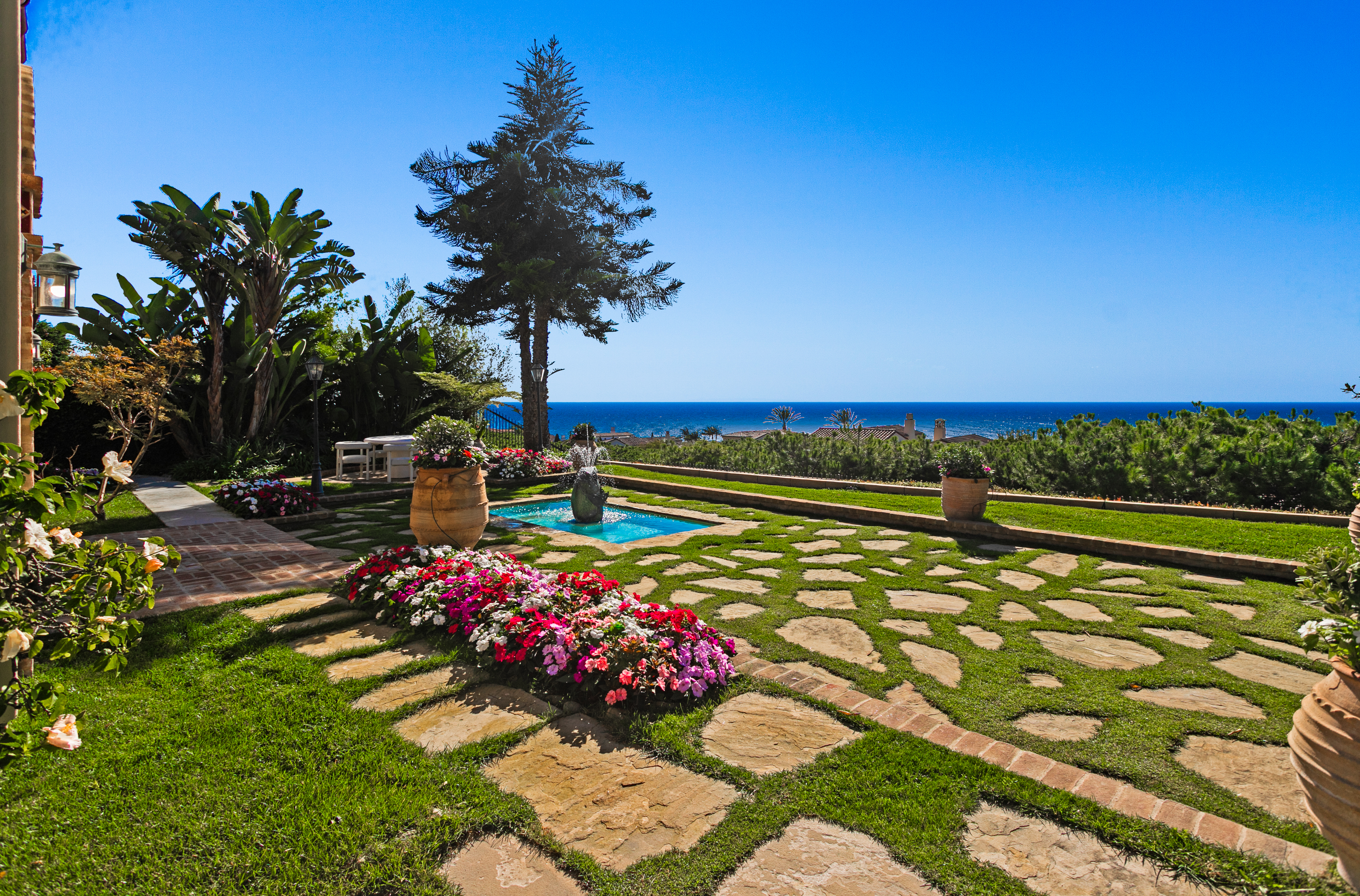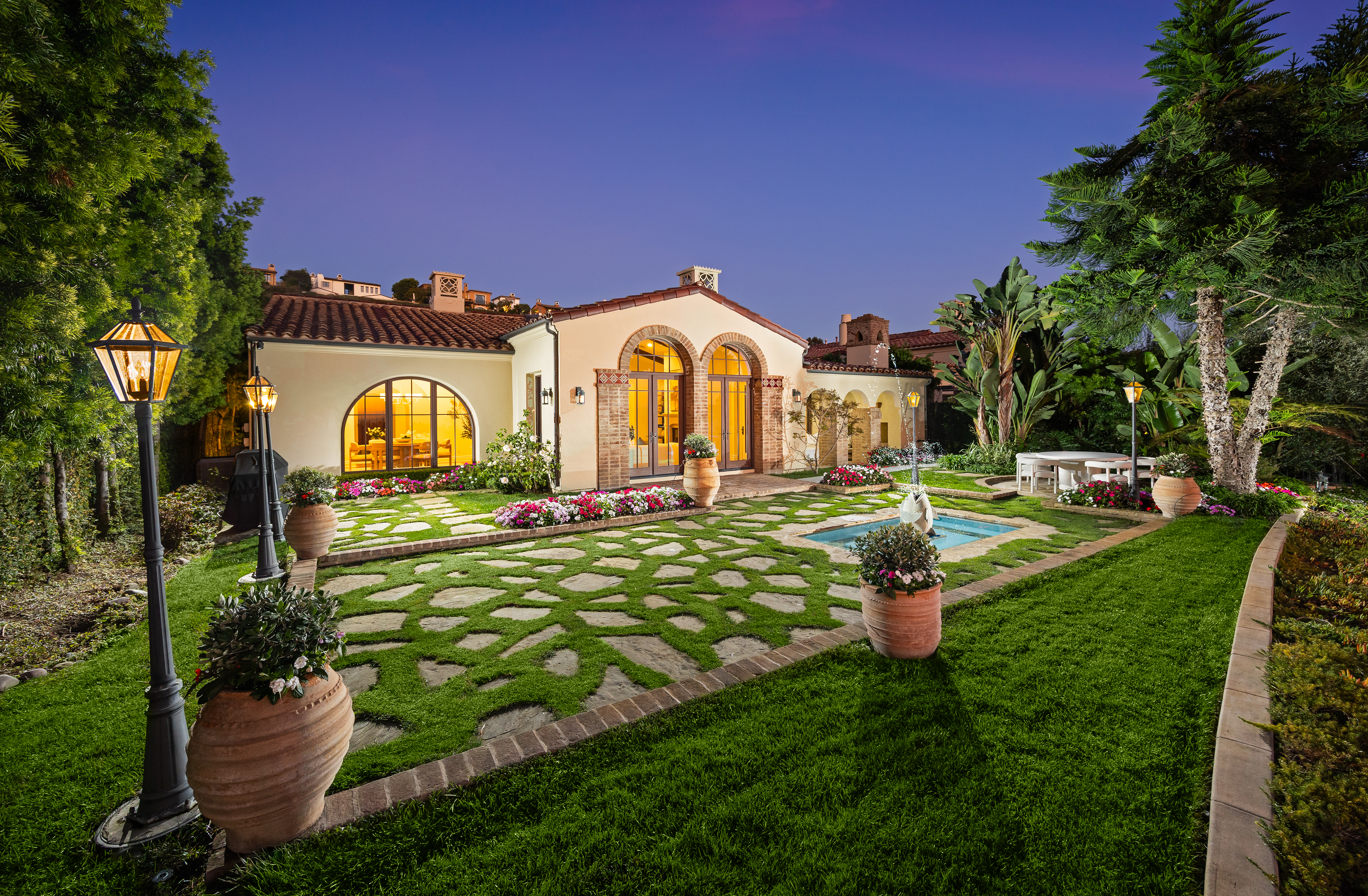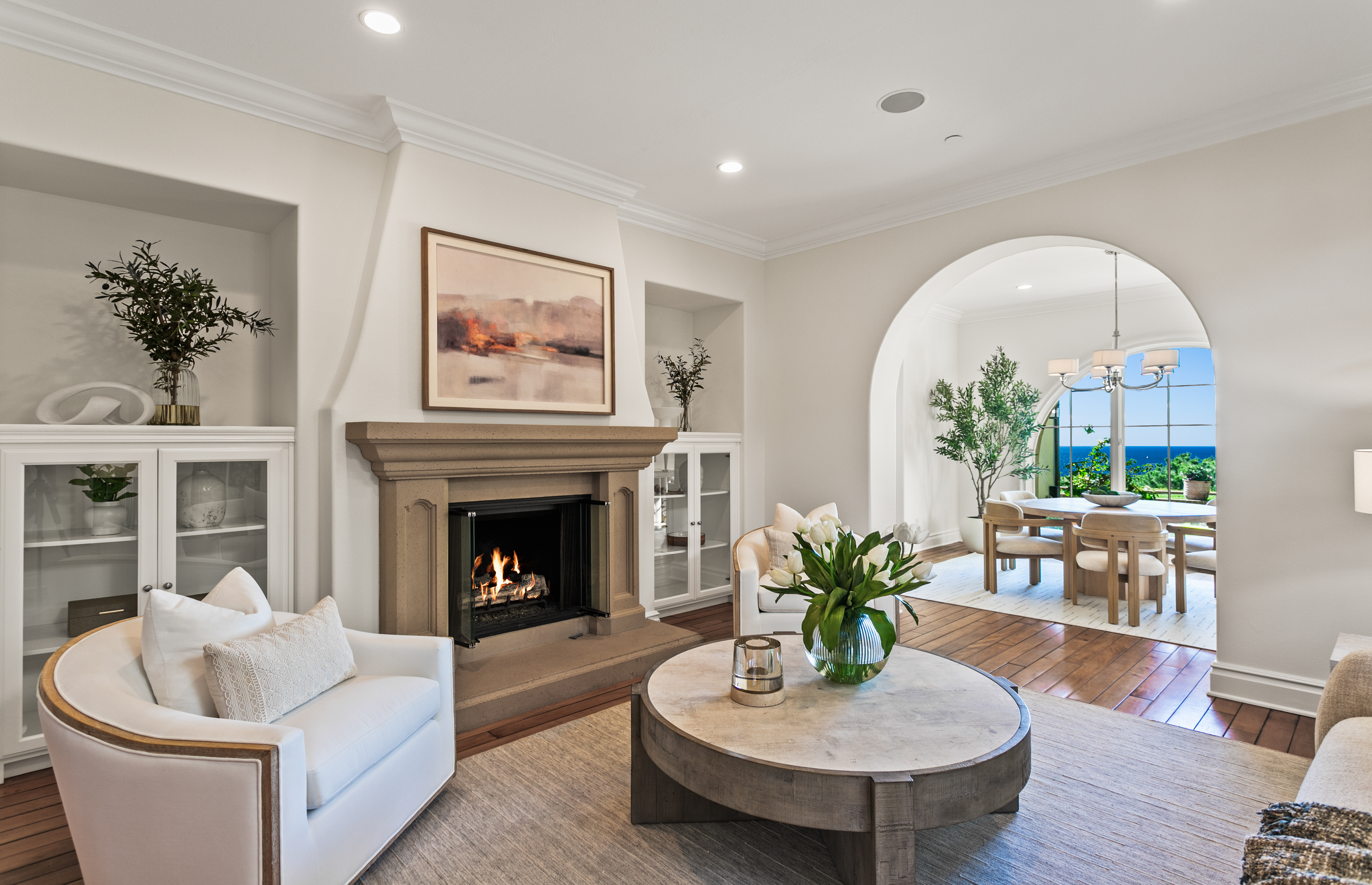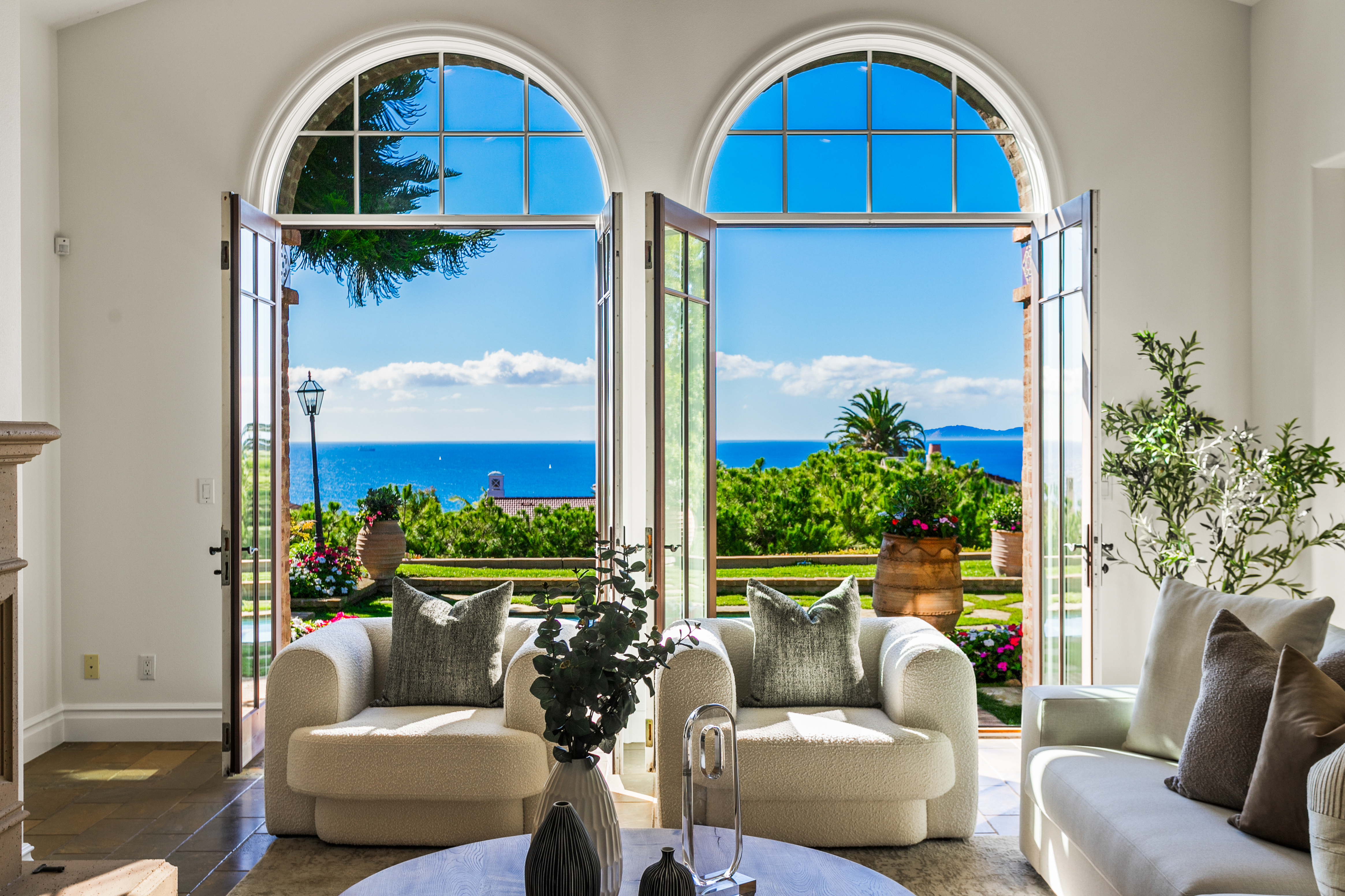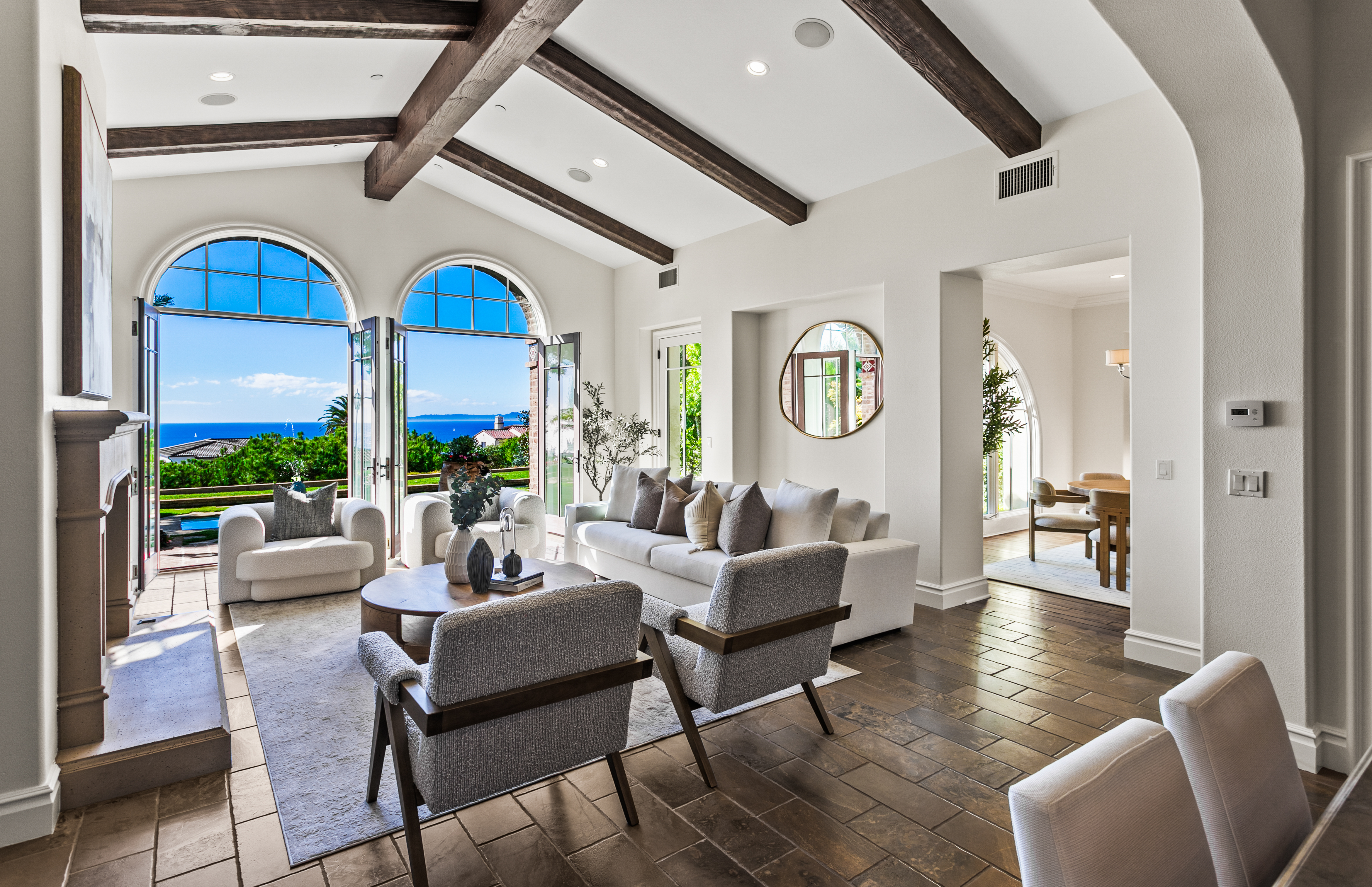 Set within the heart of Crystal Cove, 56 Archipelago is a rare coastal jewel: an exceptional single-level residence, a distinction held by fewer than five percent of homes in the community, with extraordinary ocean, sunset, and Catalina views. Once a former model for the Oceana tract, this home retains a sense of architectural intention and refinement, now recently refreshed to feel both elevated and effortlessly livable. Spanning approximately 3,631 square feet on an expansive 10,180-square-foot lot, the home contains 3 bedrooms and 4 bathrooms, an office, and a bonus room that could be used as a fourth bedroom. A stunning entry courtyard with tranquil fountain sets the tone; an intimate, sunlit arrival where ocean air drifts softly through brick and wood accents, offering a moment of calm before stepping inside. The single-level floor plan lives beautifully, allowing spaces to flow naturally from one to the next, ideal for both quiet daily living and relaxed entertaining. Large windows frame expansive ocean views, inviting natural light to dance across interiors finished in a thoughtful blend of wood, stone, and carpet flooring. The kitchen is warm and grounded, appointed with rich wood cabinetry, granite and stone countertops, and timeless materials that balance elegance with durability. Throughout the home, the finishes feel curated yet comfortable; refined without pretense. The home’s oversized lot enhances privacy and openness, while its central location offers rare walkability and access within Crystal Cove. Just moments away, the coastal trails and preserved beauty of Crystal Cove State Park meet the everyday conveniences and seaside charm of the Crystal Cove Shopping Center. Residents also enjoy the security of 24/7 guard-gated entry and exclusive access to the Crystal Cove Canyon Club; a private haven offering resort-style amenities, gathering spaces, and moments of leisure. Rare in form, generous in scale, and serene in setting, 56 Archipelago is a home defined by quiet luxury: where thoughtful design, coastal beauty, and an unmatched Crystal Cove lifestyle come together in perfect harmony.