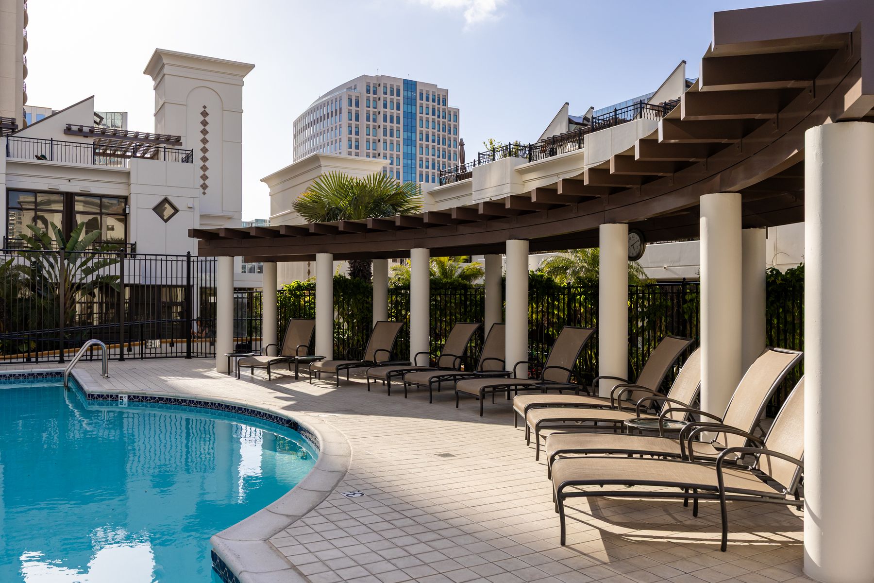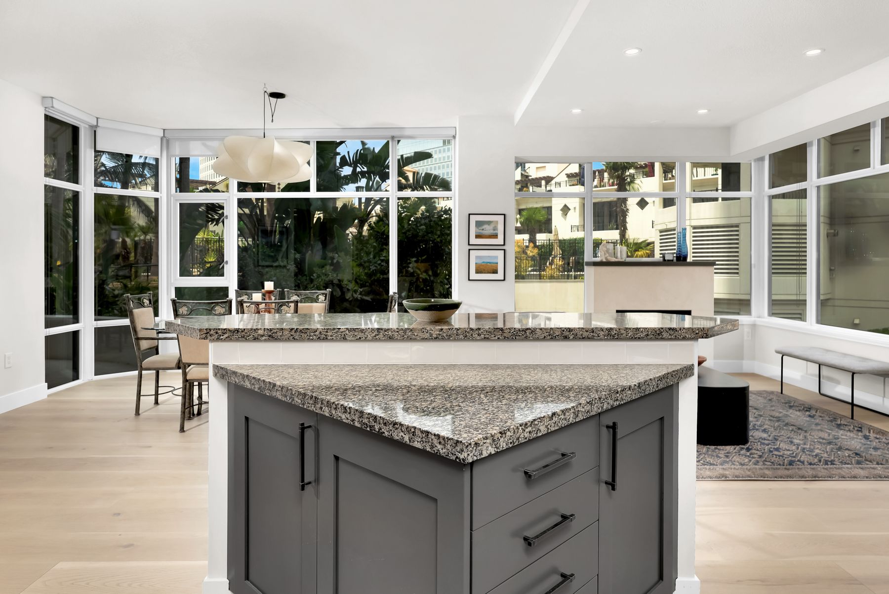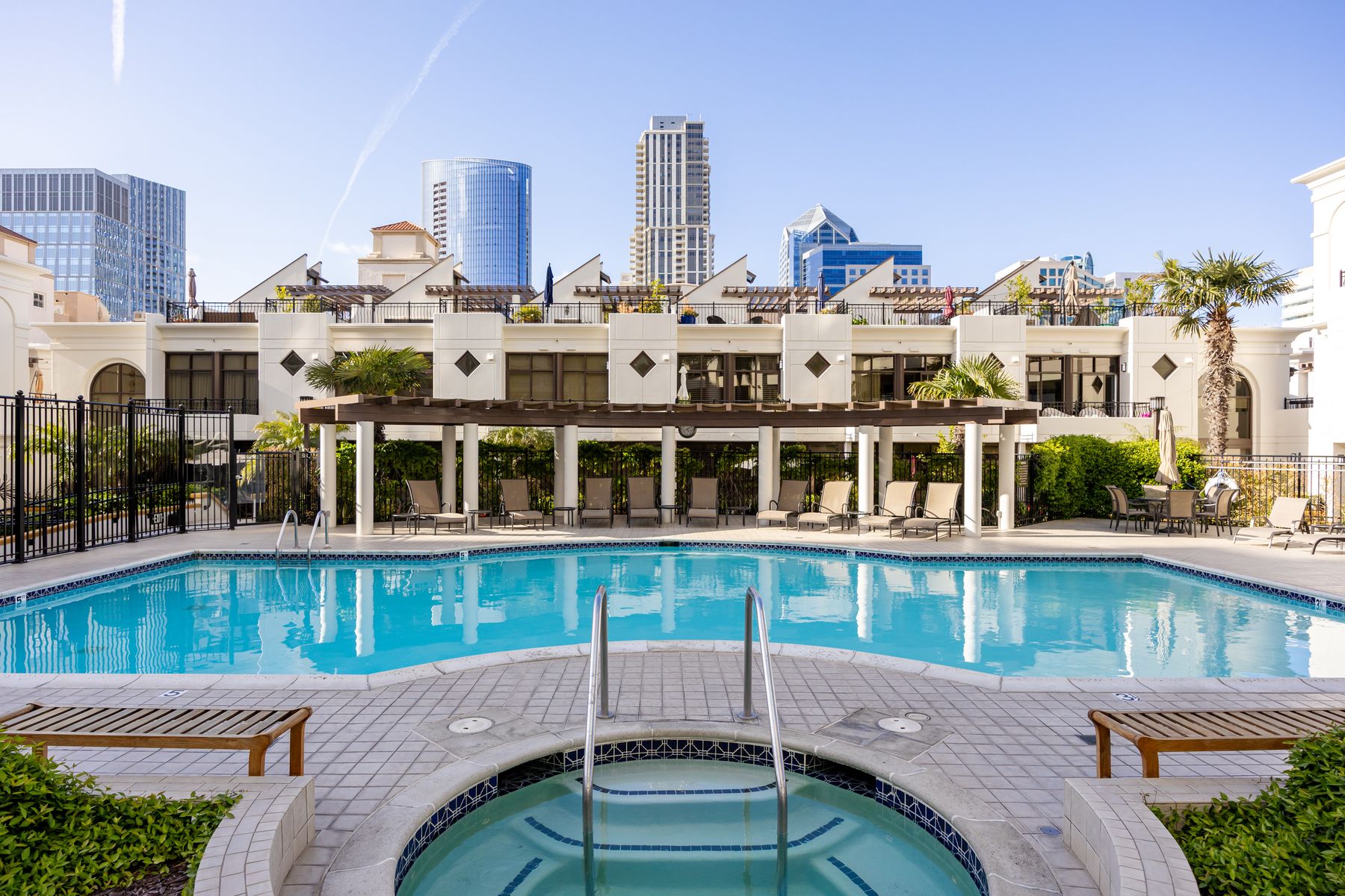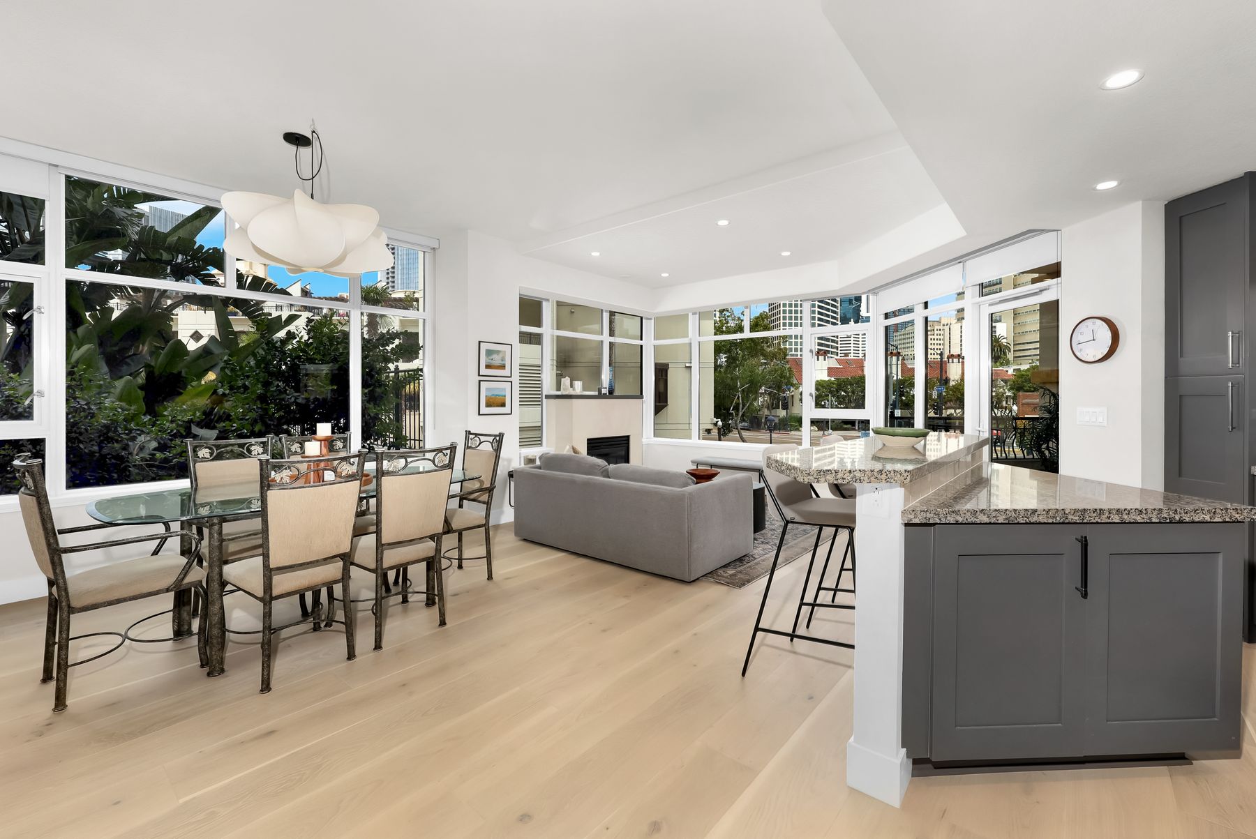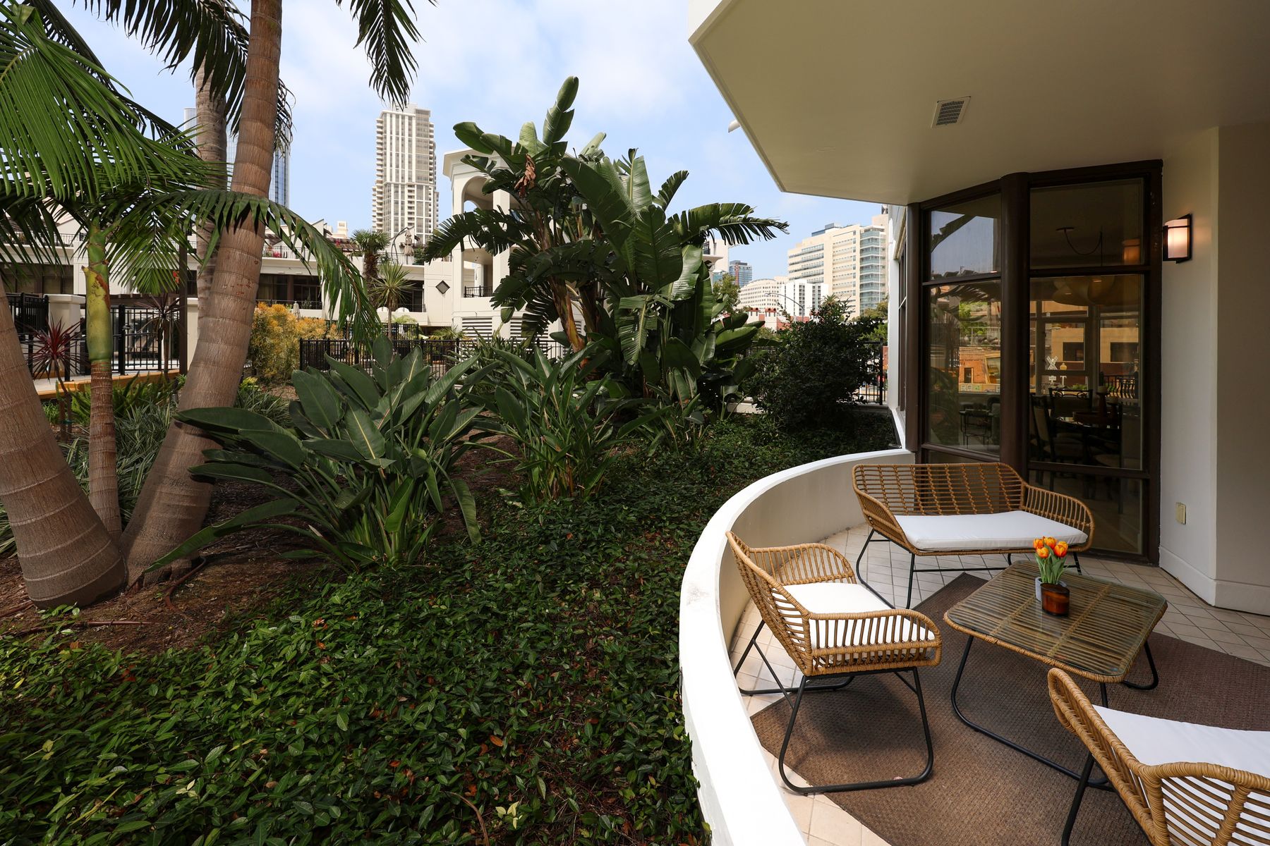 Welcome to 700 W Harbor Drive, Residence 201 — a refined urban sanctuary in the iconic Park Place, one of downtown San Diego’s most distinguished addresses. Perfectly positioned in the prestigious Marina District, this expansive two-bedroom plus bonus office residence blends sophisticated design with effortless comfort, offering the rare privilege of true indoor–outdoor living in the heart of the city. What sets this home apart is its exceptional privacy — quietly tucked into a secluded corner of the building with no shared walls and an entire hallway wing shared with only one neighbor. Its premier end location creates an atmosphere of calm and exclusivity rarely found in downtown living. Inside, brand-new wide-plank white oak flooring sets a warm, modern tone throughout the open-concept layout. The versatile bonus room provides the ideal space for a home office, creative studio, or guest retreat. Expansive floor-to-ceiling windows fill the home with natural light, while three private terraces invite al fresco dining, morning coffee, or quiet relaxation amidst lush, landscaped surroundings. The chef’s kitchen combines form and function with premium finishes and high-end appliances, while the spa-inspired bathrooms evoke the tranquility of a five-star retreat. Every detail reflects thoughtful design, creating a home that feels both luxurious and livable. Living at Park Place is more than a residence—it’s a lifestyle. Residents enjoy 24-hour concierge service, a resort-style pool and spa, a state-of-the-art fitness center, and a beautifully designed clubhouse. Step outside and you’re moments from the waterfront, Seaport Village, The Rady Shell, Petco Park, the trolley, and the very best of downtown San Diego.