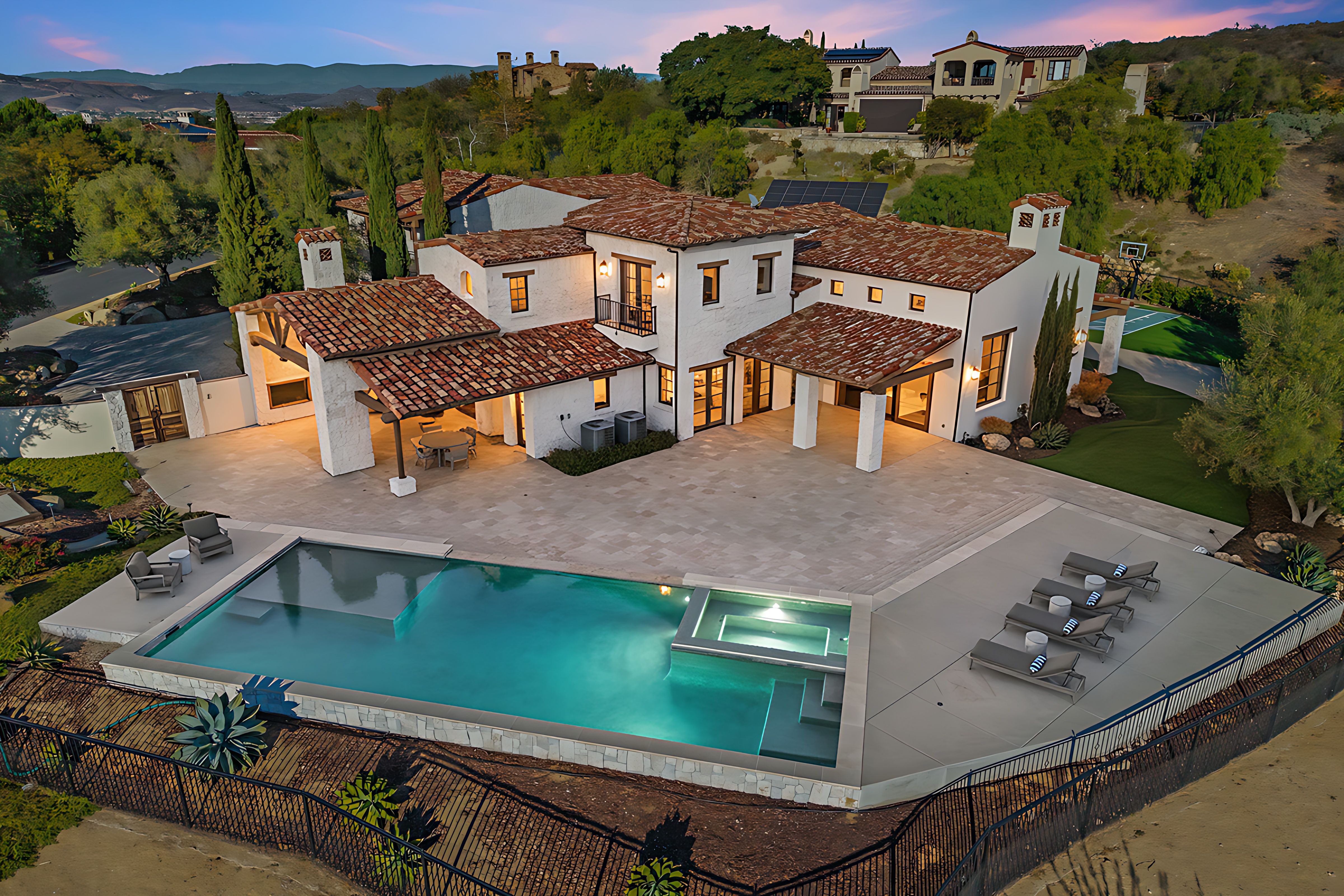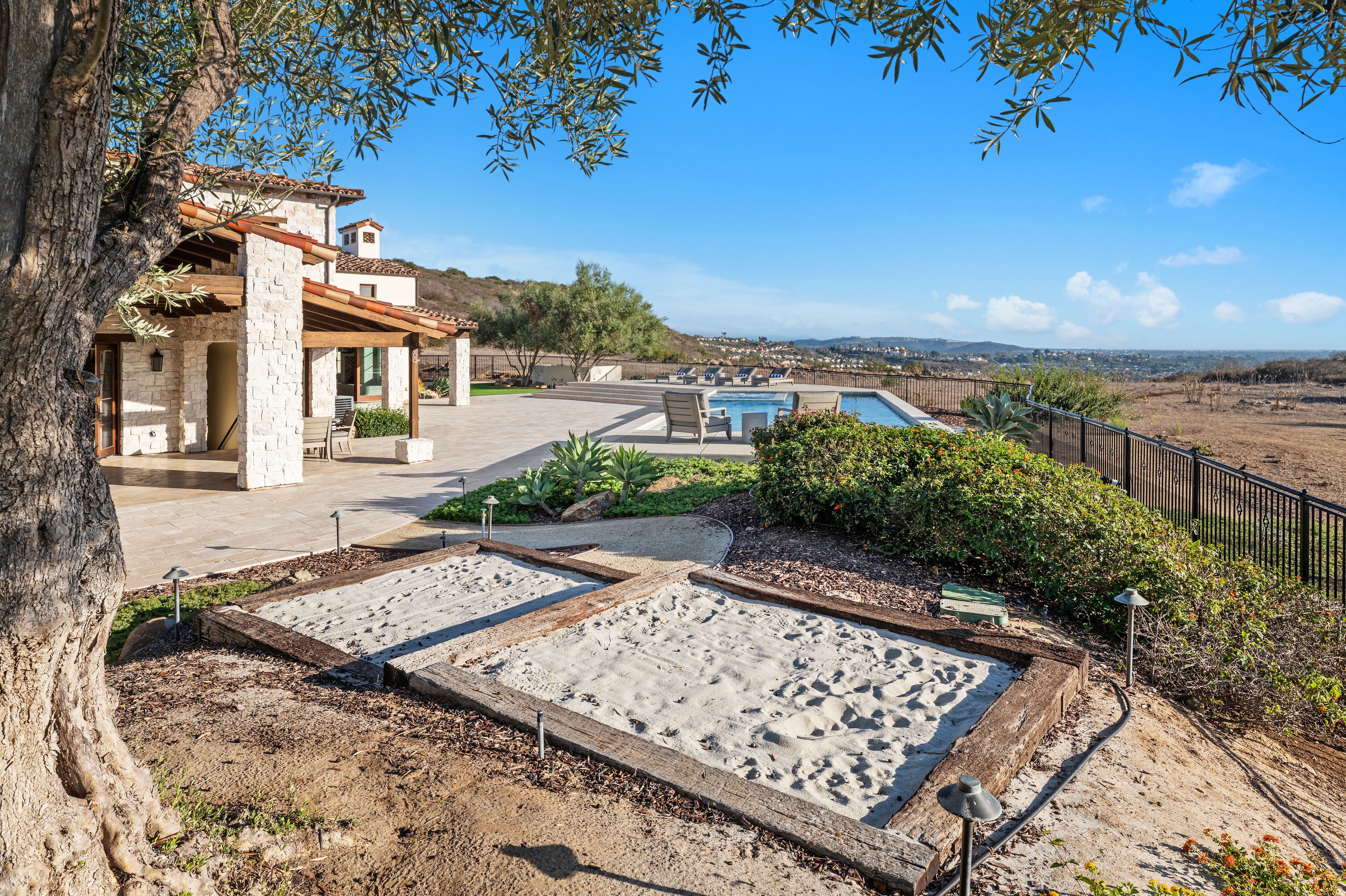 A rare opportunity to own a private Italian-inspired villa, extensively remodeled to blend modern luxury with timeless Tuscan elegance. This exceptional home in one of San Diego’s most exclusive gated golf communities offers unparalleled panoramic ocean and sunset views, complete privacy, and expansive living spaces ideal for entertaining. Seamlessly connect indoor and outdoor living through disappearing glass doors opening to covered patios overlooking a sparkling vanishing-edge pool and beautifully landscaped grounds. Features include a convenient elevator, separate guest casita, and dedicated movie theater. The primary living area spans one level, complemented by a stunning circular staircase leading to an upper office with breathtaking ocean views and a versatile lower level perfect for a playroom, wine cellar, or personal retreat. Set atop the coveted Santaluz community, enjoy access to the Rees Jones-designed golf course, 2,000+ acres of open space, scenic trails, and two exclusive clubs offering dining, fitness, spa, and tennis amenities. Centrally located near I-15 and I-5, this extraordinary property offers the ultimate Southern California lifestyle with sophistication, charm, and convenience.