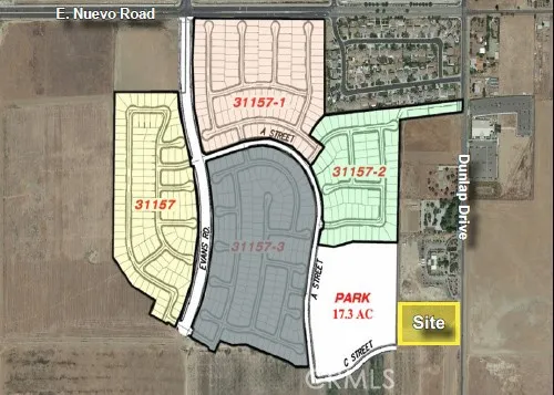 The subject property consists of approximately 5.0 acres of raw land on Dunlap Dr located just south of Nuevo Rd in the City of Perris, one of Riverside Countys fastest growing cities. The property has an expired TTM for 60 Townhouse Units with 370 feet of frontage along Dunlap Dr. The property is approximately 3 miles from I-215 at Nuevo Rd where there is a large commercial presence. Immediately to the west and to the south of the property is a large 534 acre property known as the Park West Specific Plan. This plan calls for 2,027 total residential units for a gross density of 3.8 DU/AC. The first phase of this development has already been sold to Pulte Homes who is actively building homes in the community. See the Surrounding Development Map included on the following page for additional insight on the area. The site has access to water along Dunlap Dr with sewer access available at the newly built church to the north on Dunlap Dr per the Eastern Municipal Water District. Additionally, Pulte Homes is currently installing sewer within Park West Dr which may also be a connection point for future development.