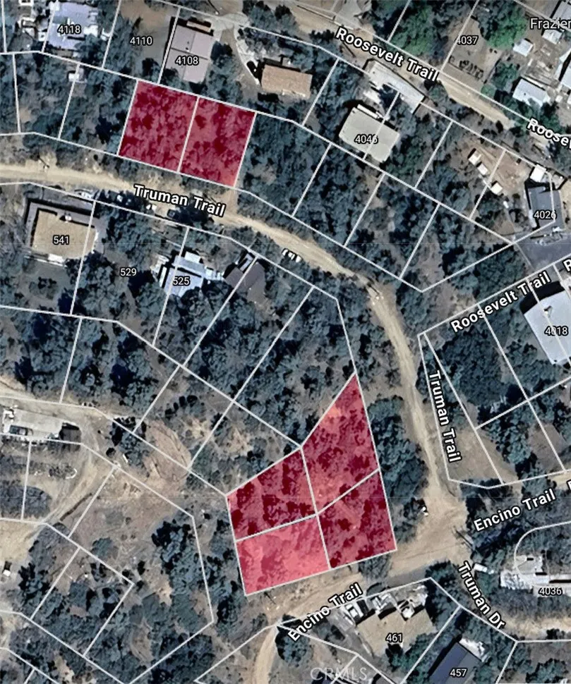 Not far from the library in Frazier Park, you'll find 5 contiguous treed lots where Encino Trail meets Truman Drive. Together these provide a building site which slopes up from the road. This view site totals 19,601 SF. Nearby are two more vacant lots adjacent to one another on Truman Drive, roughly across from 529 Truman Drive. These two lots slope downhill from Truman Drive. The 7 lots are being sold together. Utilities are available in the area. Drone photos will be provided shortly.