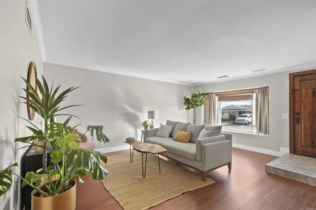 Set on a quiet, sidewalk-lined street in one of Santees most established neighborhoods, this warm and inviting 3-bedroom, 2-bath home is ready just in time for holiday gatherings and a fresh start in the New Year. With 1,032 sq ft of thoughtfully designed living space on a spacious 6,400 sq ft lot, the home blends comfort, character, and convenience in all the right ways. Engineered Hardwood floors add classic charm throughout the main living areas, while central AC, forced-air heating, and energy-efficient dual-pane windows provide year-round comfort. A versatile bonus California room / enclosed patio extends your living space. Its the perfect spot for holiday dcor, cozy winter mornings, or ringing in the New Year with friends. The large backyard offers room to entertain, play, garden, or dream up future outdoor projects. The attached two-car garage plus two-car driveway provides plenty of parking. Located close to parks, shopping, dining, and everyday conveniences, this Santee home offers the ideal blend of community and accessibility. Its move-in ready, full of warmth, and prepared for new memories this holiday season and beyond.