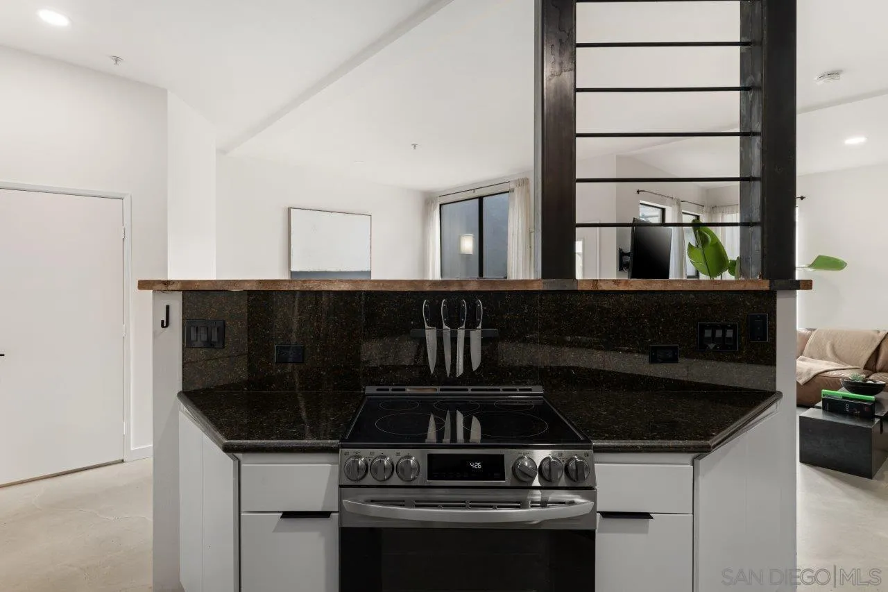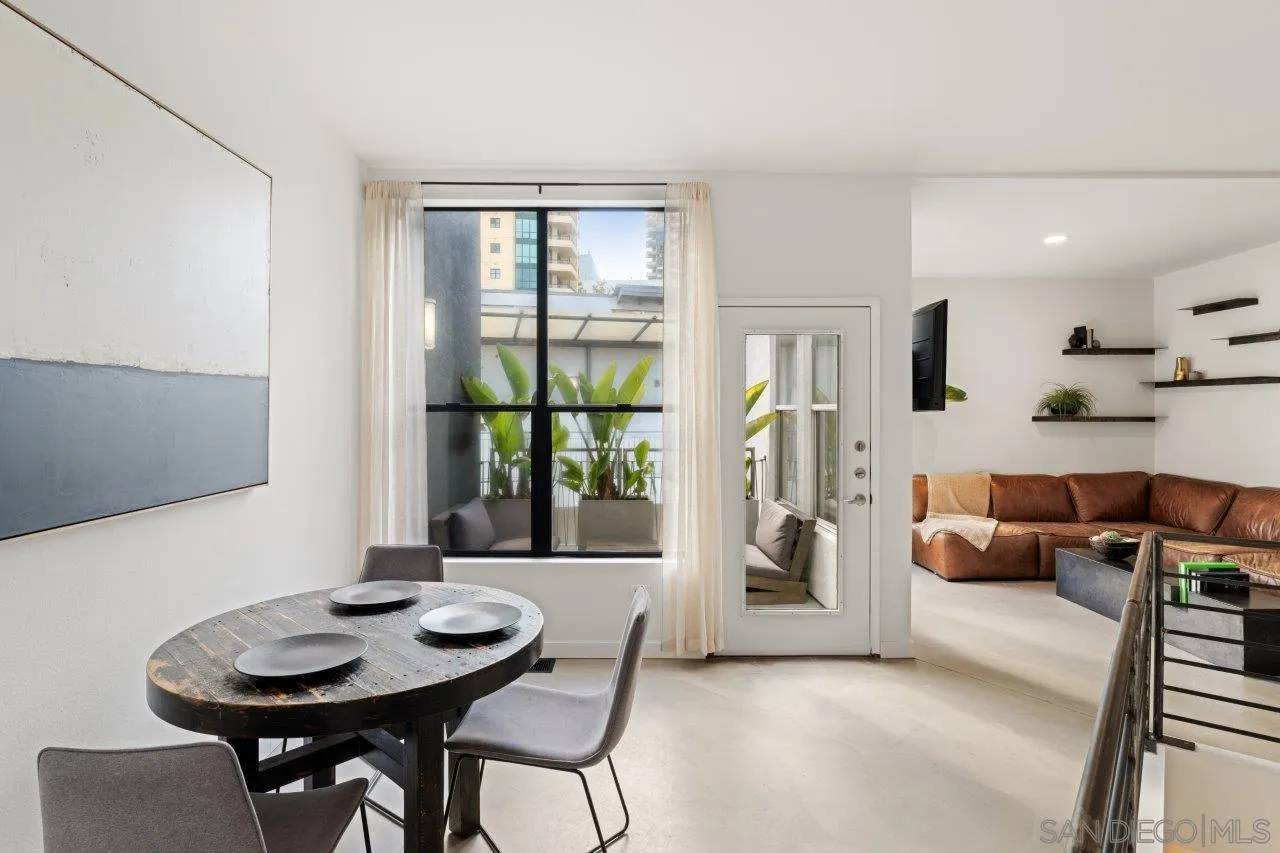 PENTHOUSE PERFECTION! This phenomenal top-floor Atria residence is a rare find, offering the ultimate in Downtown living with an open two-story layout, soaring ceilings, and a private patio tailor-made for a serene outdoor retreat above the city. The gourmet kitchen impresses with rich dark granite countertops and backsplash, stainless appliances, sleek white cabinetry, and warm wood open shelving for a perfectly curated mix of style and function. The polished concrete floors and inviting living area set a sophisticated tone. Both primary suites offer spacious walk-in closets while the spa-inspired bathrooms feature dark granite counters, white cabinetry, and matte black fixtures throughout. Additional highlights include a powder room, in-unit washer/dryer, and two dedicated parking spaces. Nestled in the heart of the Marina District, you'll enjoy effortless access to Seaport Village, the Embarcadero, Petco Park, and the vibrant Gaslamp District. Don’t miss this turnkey opportunity to own a one-of-a-kind retreat in Downtown San Diego!