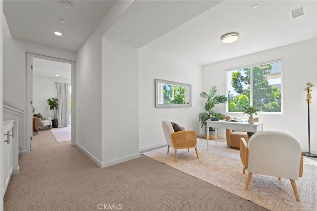 Located in the highly sought-after Cadence Park neighborhood, 101 Stage is a turnkey corner home that seamlessly blends modern luxury, privacy, and smart-home convenience. Equipped with cutting-edge technology, including an LG ThinQ refrigerator, Whirlpool Smart Oven, Leviton lighting system, Nest thermostat, Eero mesh internet, Ring doorbell, and Cove alarm system. This home offers comfort, connectivity, and security. A 220V garage outlet supports EV charging, while a whole-house fan ensures year round comfort. This residence features the largest and most popular Lyric floor plan by Tri Pointe Homes, with all three bedrooms and a den (easily convertible to a 4th bedroom) located on the same level. Although classified as a condo, it offers exceptional privacy with its own foundation and roof, plus an 8-inch air gap between neighboring homes. Abundant natural light fills the home, with no adjacent neighbor blocking the sunshine. The main living area flows effortlessly into the dining space and gourmet kitchen, showcasing a large center island, stainless steel appliances, quartz countertops, and ample cabinetry. Step outside to the sunny side yard featuring water-wise landscaping, a tranquil fountain, and space for outdoor dining, with no neighbor next door. The second floor hosts a spacious primary suite with high ceilings, custom window treatments, a walk-in closet, and an en-suite bath, along with two additional bedrooms, a secondary bath, laundry room, and flexible den/office/4th bedroom option. The third floor is ideal for entertaining, offering a large loft that opens t