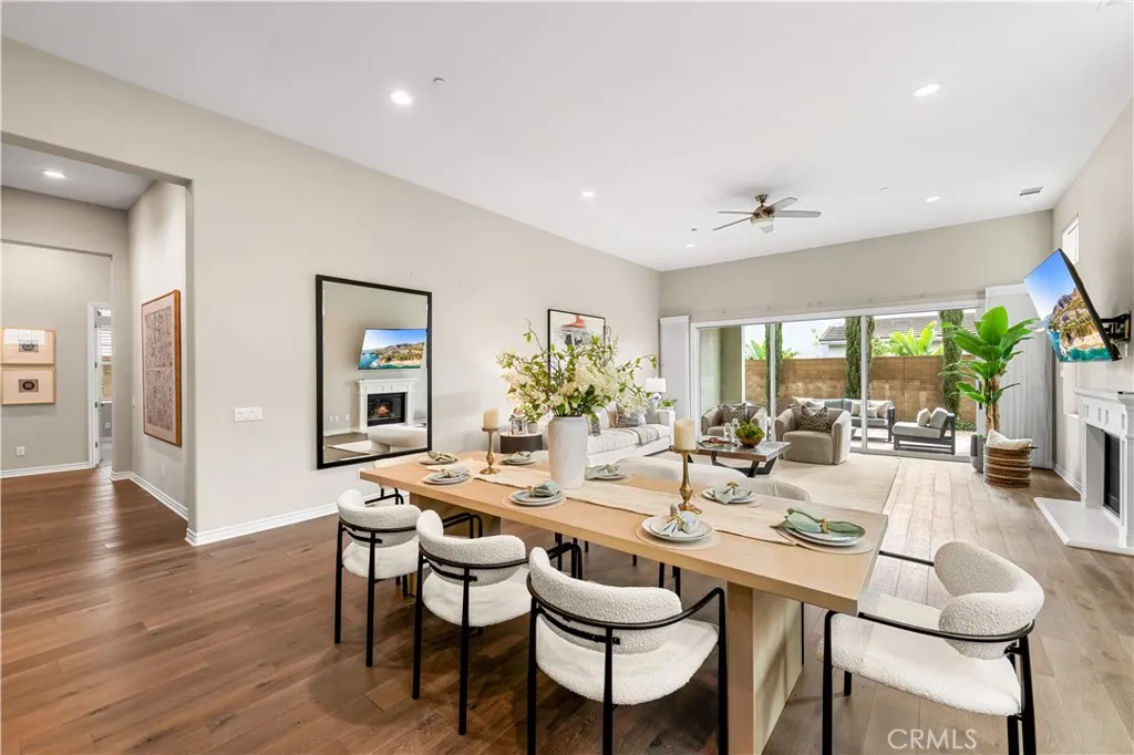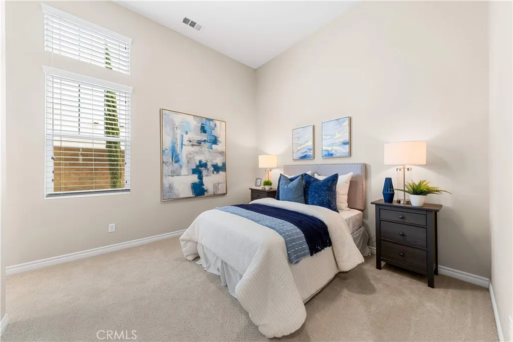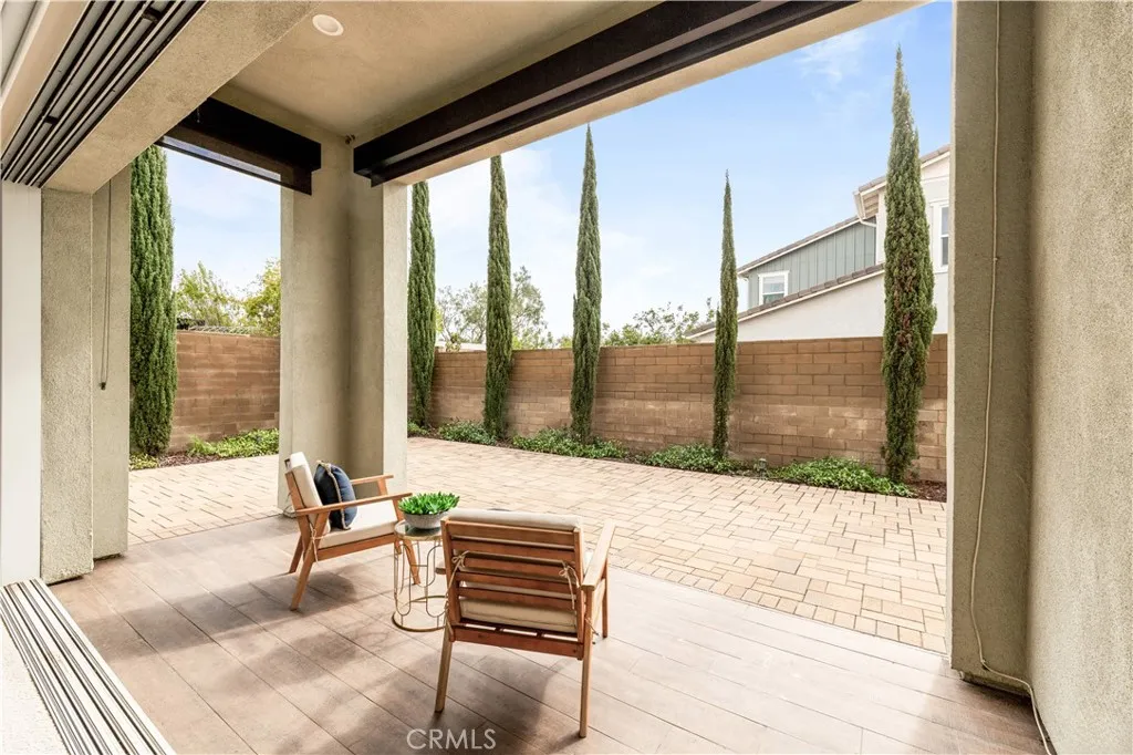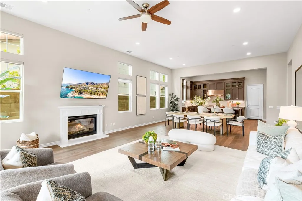 Rarely available single-story home nestled on a quiet cul-de-sac in the heart of Great Park. Situated on an oversized lot of nearly 7,500 sq.ft., this south-facing residence offers abundant natural light and exceptional privacy. Featuring soaring 12-foot ceilings and four ensuite bedrooms, this home showcases an open, seamless floor plan with high-end finishes throughout. Lightly lived in and meticulously maintained, it shows like a brand-new home. Beyond the welcoming front porch is a formal entry that leads to the expansive main living area. The kitchen, dining, and living spaces are thoughtfully connected and open to the California Room through large sliding glass doors, creating effortless indoor-outdoor living. The chefs kitchen is appointed with premium appliances, rich wood cabinetry, quartz countertops, and abundant windows that enhance the bright and airy ambiance. The living room features a cozy fireplace and generous natural light. The private bedroom wing is located on the opposite side of the home, offering four spacious ensuite bedrooms, including two primary suitesone at the front and one at the rear. The grand primary suite includes its own California Room, a luxurious spa-inspired bathroom, and ample closet space. Upgraded flooring includes wood throughout most of the home, elegant tile in the bathrooms, and plush carpet in the bedrooms. Conveniently located near Bosque Trail, the upcoming Canopy shopping center, Beacon Park School, and community pools and parks. Residents enjoy access to all of Great Parks exceptional amenities, including parks, pools, sce