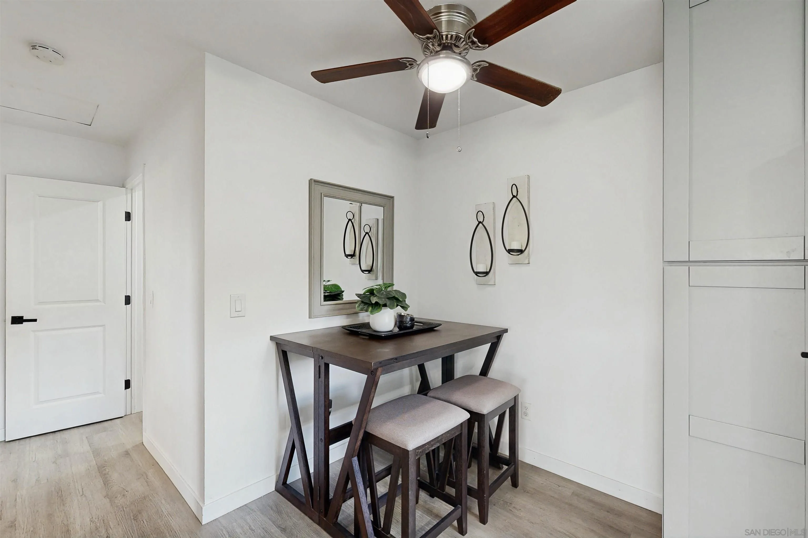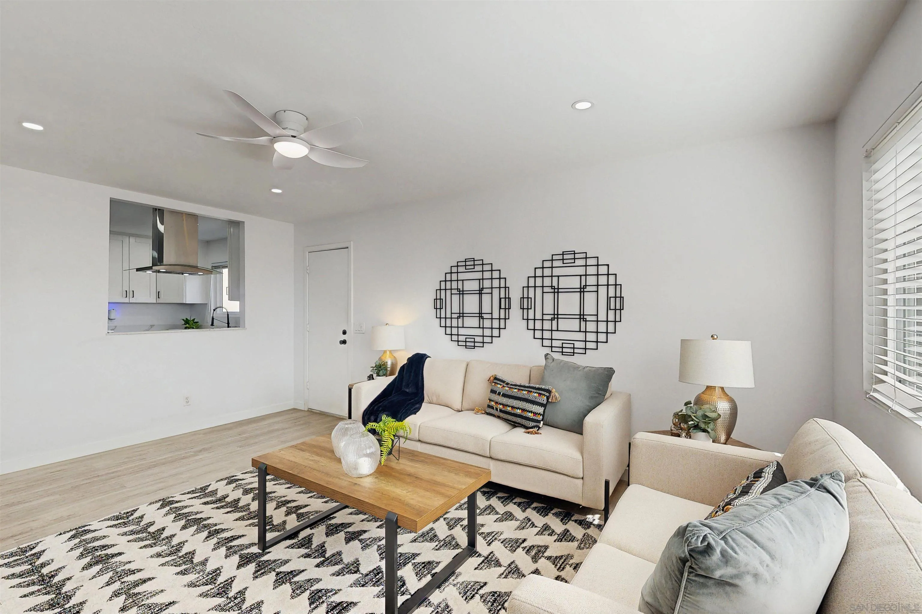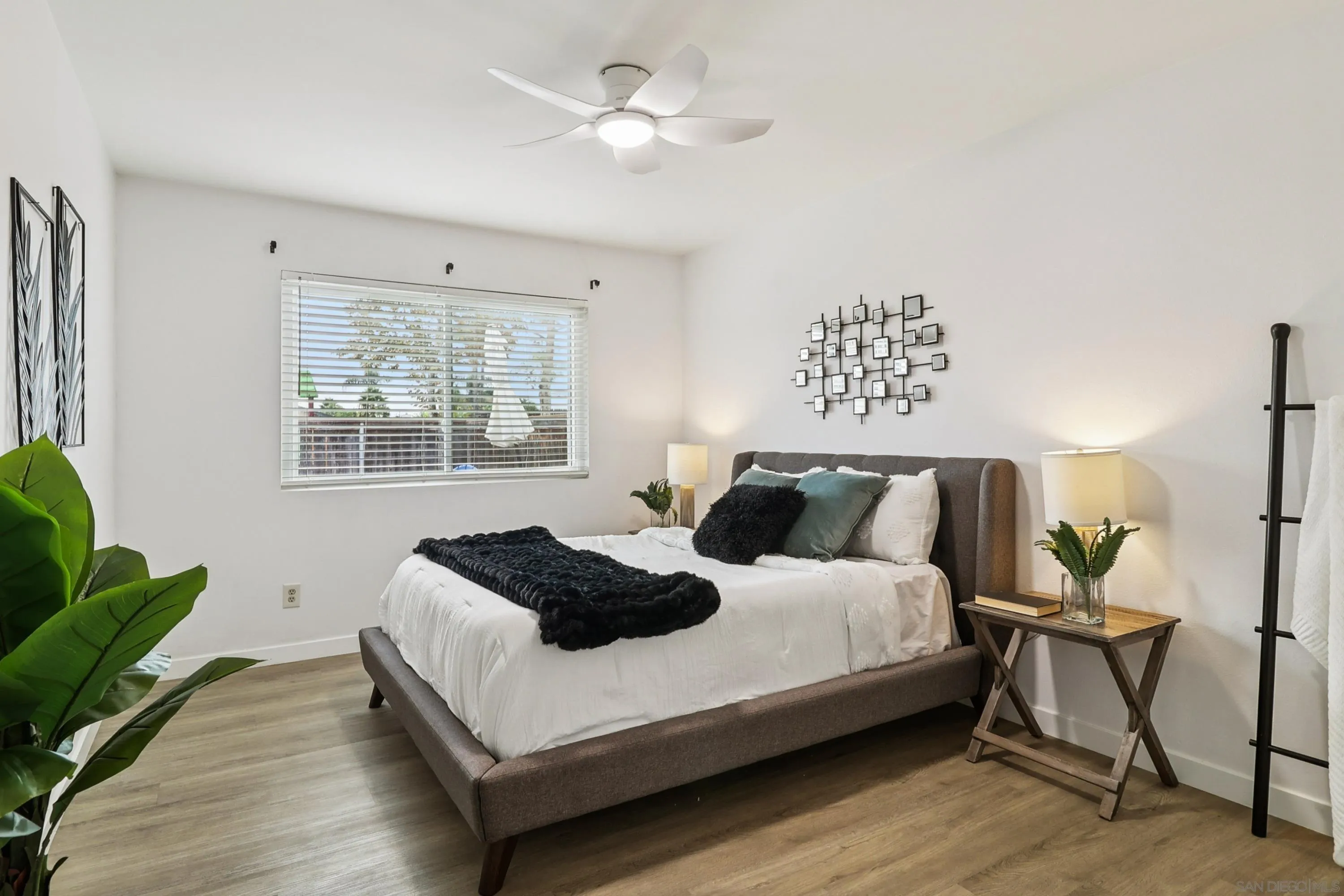 Incredible opportunity to own this beautifully updated 2BR, 1BA single-story corner unit in Riderwood Village. This home lives like a detached home with no one above and a generous-sized private yard perfect for relaxing, BBQs, gardening, or giving your pups room to play. Inside, you’ll love the refreshed kitchen layout with quartz counters, shaker-style cabinets, SS appliances, a smart slide-in gas range and a decorative overhead exhaust hood. The kitchen is open to the living room, creating a lighter, airier feel while keeping connection. Even more updates include recessed LED lighting, newer fixtures, and durable LVP flooring throughout. Dual-pane vinyl windows and owned solar with fixed-rate loan at $86.11/mo (buyer to assume) provide comfort, energy efficiency, and lower utility bills. Other features to love: a walk-in closet in the primary bedroom, full-size in-unit laundry, a 1-car attached garage plus an assigned parking space just outside. Don't forget the additional possible savings with the assumable VA loan at 4.99% (subject to buyer’s qualification and seller’s and lender’s approval). Riderwood Village includes greenbelts, 3 parklike playgrounds, and 2 pools one of which overlooks Woodglen Vista Park that features sports courts, walking paths, skate zone, BBQ areas, a dog park, and more. You’re also close to Trolley Square, YMCA, and Sportsplex Santee for even more shopping, dining, and recreation options. Convenience, comfort, and community all in one. WOW ~ Welcome Home!