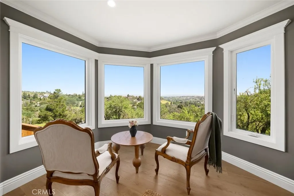 Capturing one of Paso Robles most breathtaking panoramas, this newly renovated residence is a seamless blend of timeless design and contemporary luxury. Thoughtfully reimagined inside and out, every detail reflects elevated craftsmanship and refined living. A beautifully finished paver and concrete driveway with ample parking is complemented by a detached two-car garage with private office complete with air conditioning and aesthetics matching the main home. The grounds are equally captivating. Lush, professionally designed landscaping with a full sprinkler system surrounds the home, while a serene terrace shaded by a majestic oak tree invites gathering and relaxation beside a charming outdoor fireplace. Inside, the main residence unfolds into an open-concept living space. The living room centers around a striking fireplace with an intricately detailed surround and custom built-ins. The dining area opens directly to an expansive deck, where sweeping vistas of Paso Robles create an unforgettable backdrop. The kitchen is both elegant and functional, featuring custom European-style cabinetry, quartzite countertops, a designer tile backsplash, and a generous island with seating. Premium appliances include a six-burner gas range and a fully integrated, paneled refrigerator for a seamless aesthetic. A sunlit breakfast nook offers tranquil views toward the terrace and eastern hills. Designed for both entertaining and retreat, a stylish game room with wet bar flows effortlessly to the backyard, where an in-ground pool and outdoor shower create a private resort experience. The prima