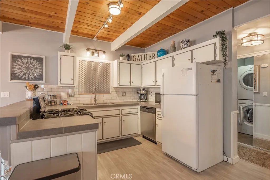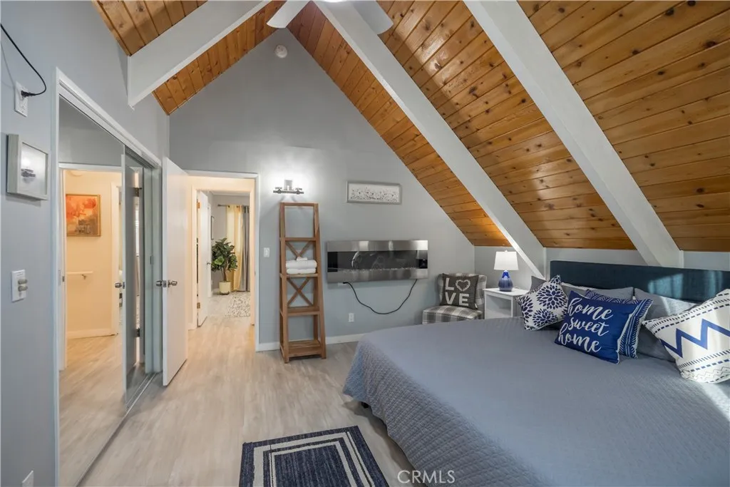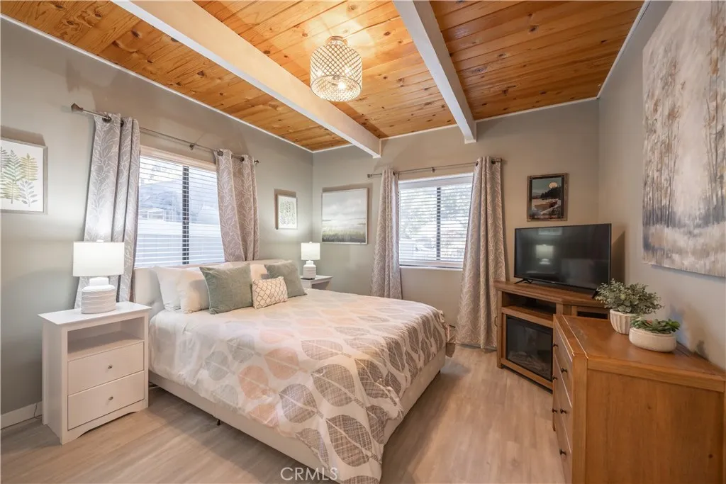 Experience elevated mountain living in this beautifully remodeled two-story Big Bear retreat. Thoughtfully designed with comfort and style in mind, this home offers a warm lodge ambiance blended with modern finishes, including granite countertops, stainless steel appliances, updated baths, and multiple electric fireplaces throughout. The open living area features rich wood accents, a traditional wood-burning fireplace, and seamless flow into the kitchen and dining spaces great for entertaining or simply unwinding after a day on the mountain. Upstairs includes well-appointed bedrooms plus versatile bonus rooms, perfect as an office, lounge, or flex space. Step outside to a fenced backyard oasis complete with a hot tub, gas fire pit, BBQ area, and ambient patio lighting creating a peaceful setting for year-round enjoyment.