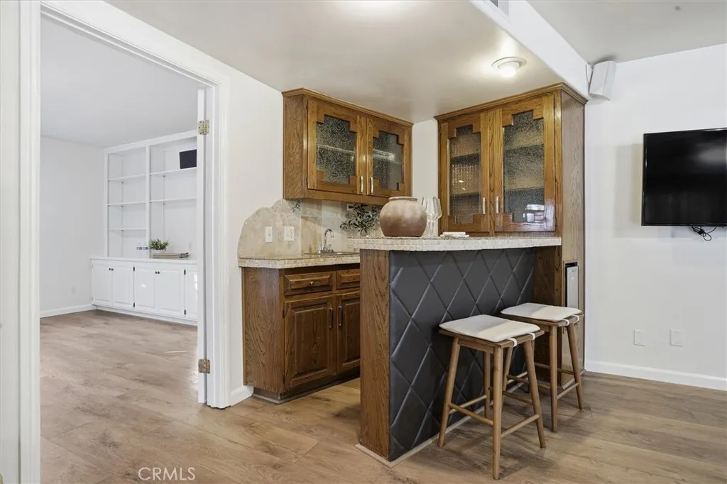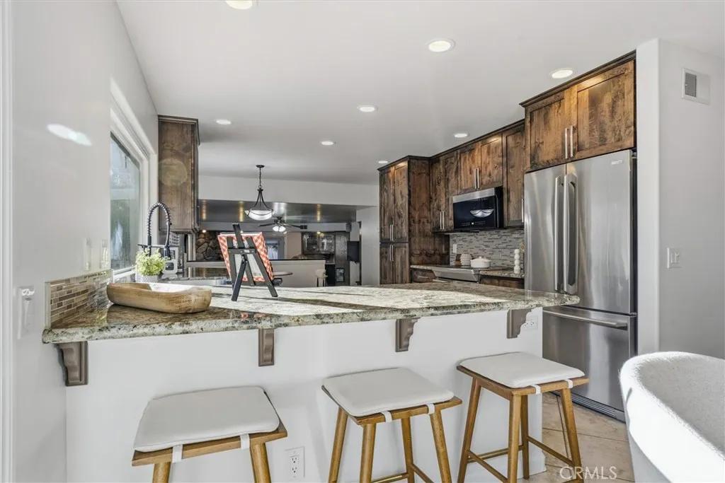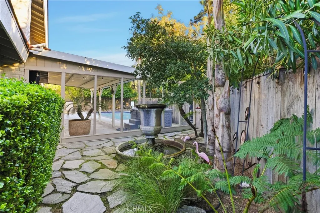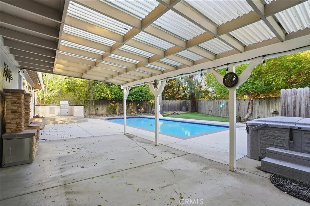 Spacious 4-bedroom, 3-bath home with an office AND flex room are a few of the highlights in this 2,713 sq ft home. Recently updated with brand-new luxury vinyl flooring and fresh interior paint throughout. Enjoy energy savings with paid-off solar. The remodeled, gourmet kitchen overlooks an entertainer's backyard featuring an inground pool, hot tub, outdoor kitchen, small putting green and beautiful fountain features. Cozy fireplaces highlight both the formal living room and den. Enjoy serving cocktails or coffee from the wet bar also. This home is complemented by a formal dining room off of the kitchen for gatherings. Gated RV storage provides added convenience and flexibility.