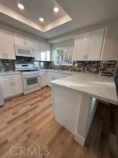 Experience a fully renovated, designer- styled home where every detail has been elevated with high-quality materials. This stunning 4-bedroom, 3-bathroom residence features a cohesive, modern aesthetic throughout with all new interior and exterior paint, new waterproof laminate and carpet, new baseboards, a new staircase, newly designed fireplaced, new interior and exterior doors, new low maintenance landscaping in the front and backyard, upgraded vents, a new thermostat, and a professionally tested HVAC system. The plumbing system, irrigation lines, and exterior watering components have been replaced for long-term efficiency and peace of mind. The kitchen has been completely remodeled with new white shaker cabinetry, new quartz slab countertops, a designer-selected backsplash, new sink and faucet, and a full suite of new white appliances-all included. Crafted with quality and intention, this kitchen blends timeless style with fresh, elevated finishes. Each bathroom has been fully remodeled with permitted improvements and professionally designed selections. New bathroom mirrors and upgraded bathroom windows are scheduled for installation, and a custom shower glass door has been ordered and will be installed prior to the close of escrow. Outside, enjoy brand-new landscaping complemented by mature fruit trees and refreshed plantings. Every improvement has been thoughtfully completed with quality, care and design intention - offering a truly move-in-ready home with elevated finishes throughout.