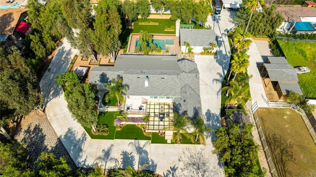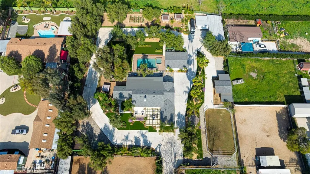 Welcome to the equestrian-friendly community of Shadow Hills, where serenity meets modern living. Situated on approximately 1.35 acres, this beautifully remodeled home offers comfort, style, and resort-inspired outdoor living.The main residence spans approximately 2,400 sq. ft. and features two spacious primary bedrooms and tastefully upgraded bathrooms with a sleek, contemporary design. Recessed lighting enhances the homes refined finishes, while the bright open-concept layout is filled with an abundance of natural light. The high-end modern kitchen is both elegant and functional ideal for a family that values comfort and tranquility.A separate one-bedroom guest house of approximately 900 sq. ft.provides incredible flexibility, perfect for visitors, a home office, studio, or game room.Step outside into your private retreat featuring a brand-new pool, covered patio, and built-in barbecue area the ultimate setting for entertaining. Thoughtfully designed landscaping creates a true resort-style atmosphere, with multiple seating areas that allow for seamless indoor-outdoor living.For hobbyists, collectors, or creatives, the property includes a detached workshop of approximately 1,500 sq. ft. along with a 4-car garage, making it ideal for projects, storage, or a studio setup. RV parking adds even more convenience and versatility.Equestrian amenities complete this exceptional estate, including horse stalls, a riding corral, and chicken coops, all set within a peaceful, kid-friendly environment.This one-of-a-kind property offers space, versatility, and an elevated lifestyle in o
