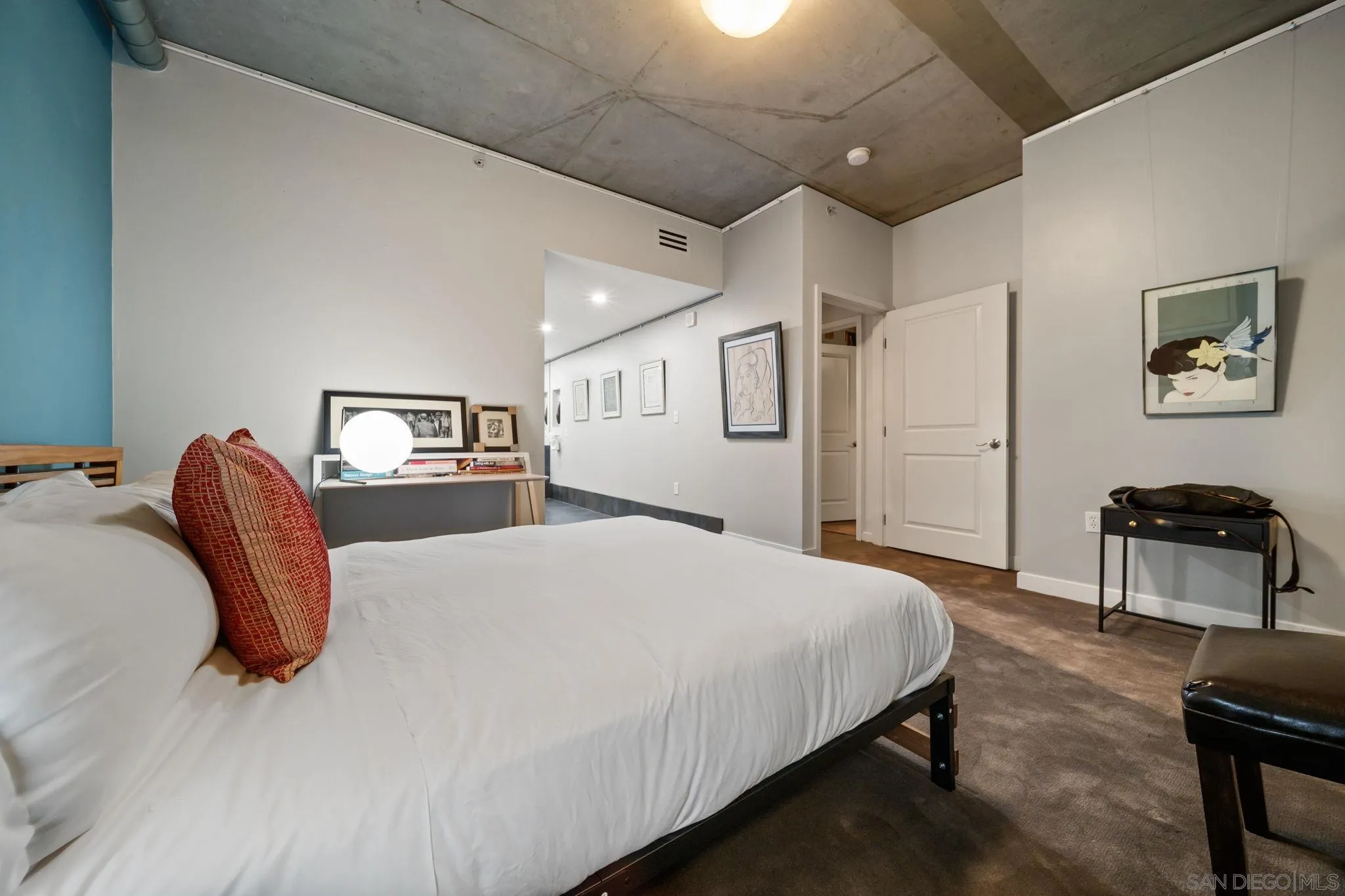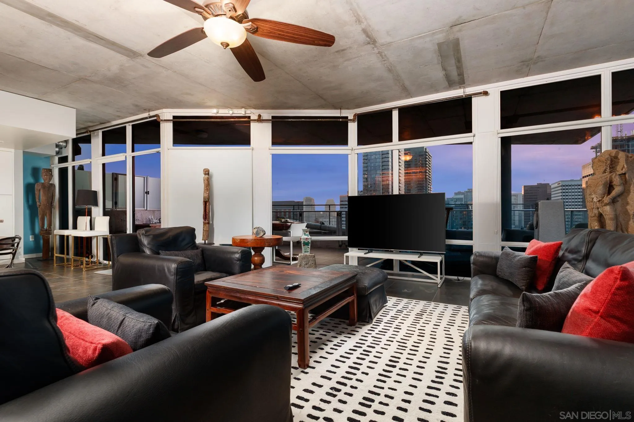 FURNISHED MIDTERM & LONG-TERM RENTAL — The Gallery Loft: Downtown’s Finest Modern-industrial 2BR / 2BA high-rise condo with sweeping bay and skyline views from every room. Floor-to-ceiling windows flood the space with natural light, while curated art and sculptural pieces give a gallery-style sophistication. Spacious terrace and private lanai offer front-row seats to San Diego’s iconic sunsets and city lights. Open-concept layout includes a sleek kitchen with high-end appliances, indoor/outdoor dining spaces, and comfortable living area ideal for entertaining or unwinding. Primary suite features en-suite bath and direct terrace access; second bedroom offers equally stunning views. Building amenities include a rooftop jacuzzi, lounge seating, and panoramic views of downtown and the bay. Unit includes A/C, in-unit laundry, and secure on-site parking. Located in the heart of East Village—steps to world-class dining, rooftop bars, galleries, shops, Petco Park, and the Gaslamp Quarter—with easy trolley access throughout the city. Sleeping Setup (max 4): BR1 Queen • BR2 Queen • 2 Full Baths Minimum 30-day stay. Monthly rates vary by lease length; please inquire for an exact quote. Rates reflect short-term rental pricing and vary by season and duration. Published amounts are estimates; final pricing, fees, and availability are subject to change until a signed agreement.