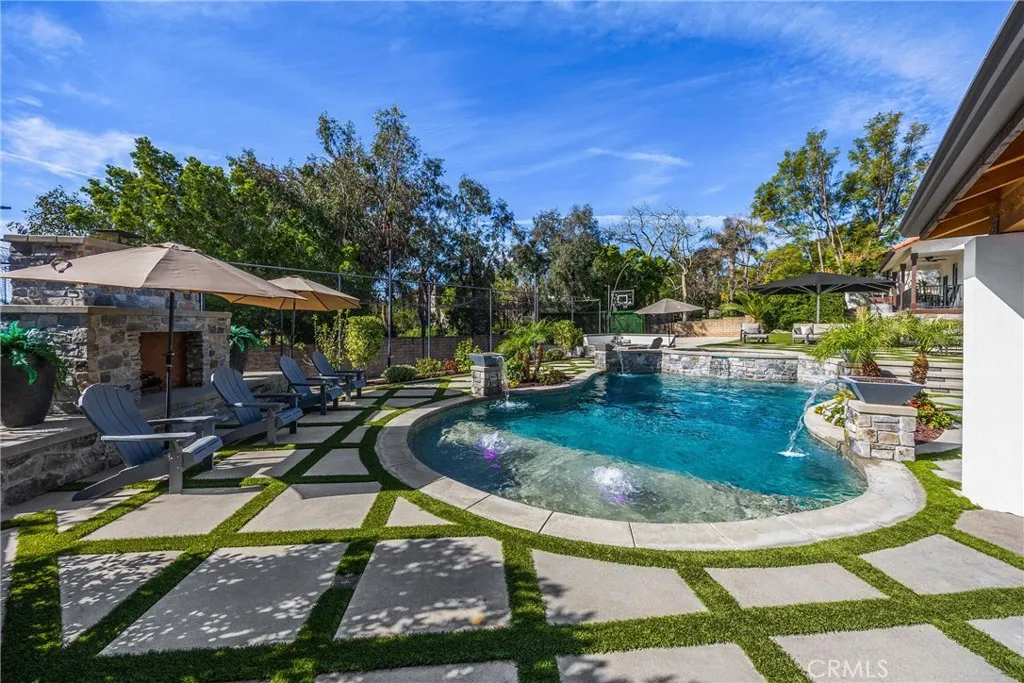 Welcome to 10829 Boulder Canyon rd nestled on a picturesque, tree-lined street in the exclusive Deer Creek Community. This fully upgraded smart estate is a masterclass in modern luxury. From the moment you arrive, the curb appeal sets a sophisticated tone. A stunning entry welcomes you into the formal living and dining room, leading seamlessly to the kitchen and family room overlooking the backyard oasis. The kitchen is anchored by quartz countertops and premium cabinetry, while wood-look tile spans the entire main level. The home features one bedroom on the main level, three bedrooms upstairs, and a bonus family room below the main level complete with a full bathroom and direct access to the backyard. The backyard is an entertainers paradise, framed by incredible views. A sparkling pool with cascading waterfalls is accented by dramatic fire bowls, a fire pit, and a cozy outdoor fireplacecreating year-round ambiance. Managed by the Pentair ScreenLogic system, you can control pool features and lighting directly from your smartphone. Offering resort-style recreation at home, the backyard also features a batting cage, basketball court, and an in-ground trampoline. A covered outdoor kitchen is complete with a built-in BBQ, natural gas burners, a sink, a drop-in cooler, and commercial-grade refrigeratorsperfect for effortless entertaining. Three dedicated Sonos speaker zones with wireless amps ensure the perfect soundtrack for any gathering. In addition, an ADU built in 2021 mirrors the same high-end finishes as the main residence. Featuring 1 bedroom, 1 bathroom, full kitchen,