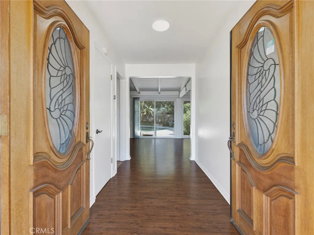 In the Granada Hills Charter High School district. Beautiful single-level 3-bedroom, 2-bathroom home nestled in the desirable Porter Ranch neighborhood. This gated property offers privacy and charm, featuring an inviting pool and a cabana-style lounge areaperfect for relaxing or entertaining. An electric gate provides secure access to the rear alley driveway. The home features a newer kitchen, remodeled bathrooms, wood flooring, and fresh interior paint, creating a warm and move-in-ready atmosphere. 53 Solar panels provide energy efficiency for both the pool and the homes electricity, offering major utility savings. The property is also equipped with an electric vehicle charging outlet for added convenience. Lush landscaping surrounds the property, offering exceptional privacy and a serene outdoor setting. Enjoy multiple fruit trees, including apple, cherrymoya, Moringa and jujube, enhancing both the beauty and functionality of the yard. Granada Hills High School District.