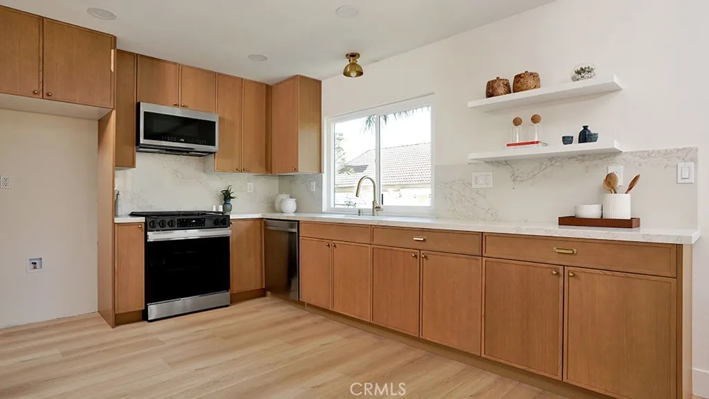 Discover the epitome of modern elegance at 11 Jameson in the desirable community of Foothill Ranch, CAa fully renovated, move-in-ready gem that blends sophisticated updates with unbeatable location perks. Nestled in the vibrant heart of Foothill Ranch, this stunning home offers seamless access to major freeways for effortless commuting, plus proximity to top-tier amenities. Enjoy convenient shopping and dining at Foothill Ranch Towne Centre, and embrace outdoor adventures just minutes away at Whiting Ranch Wilderness Park, with its miles of scenic hiking and biking trails, oak woodlands, and striking red rock formations. The exterior welcomes you with fresh, lush landscaping and a charming wood porch enhanced by updated hardware and stylish exterior lighting. Step inside to a bright, contemporary interior featuring premium white oak luxury vinyl plank flooring, energy-efficient LED recessed lighting, and crisp modern baseboards throughout. A dramatic entryway, illuminated by a designer chandelier, flows effortlessly into the main living spaces and upper level. The completely reimagined kitchen is a chef's delight, showcasing oak-paneled cabinets, sleek quartz countertops and backsplash, a quartz undermount sink, high-end designer fixtures, and brand-new luxury appliancesincluding a premium range, dishwasher, microwave, and garbage disposal. The open-concept living and dining areas revolve around a refined fireplace, framed by oversized dual-pane windows that flood the space with natural light. New sliding glass doors lead out to a beautifully re-landscaped backyard, perfect