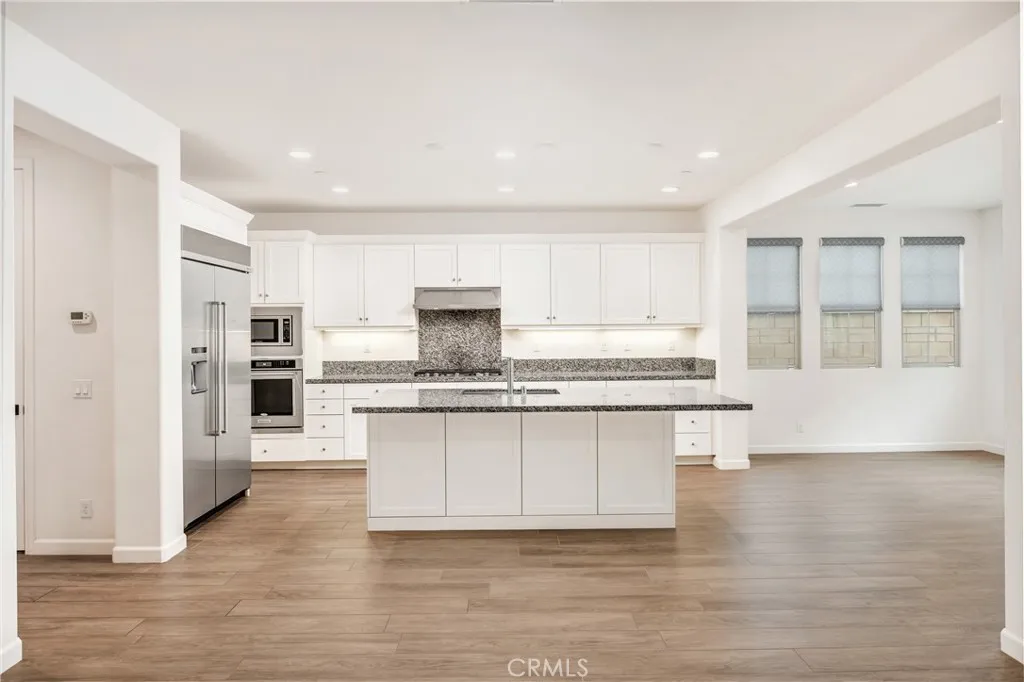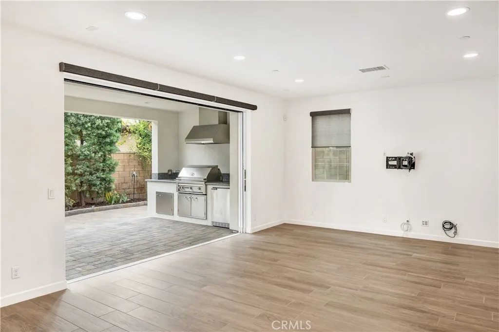 Ideally located in the highly sought-after Greenwood Community in Tustin Legacy Area. Boasting 4 bedrooms, 4.5 bathrooms, Residence 3 with outdoor kitchen. This turnkey home will greet you with the warm wide wood plank tile floors. Main level open floor plan with one bedroom downstairs. Well-appointed kitchen, complete with granite counter tops, KitchenAid stainless-steel appliances and Kohler farmers sink. Kitchen opens to the bright dining and living room area with multi-panel pocket doors to the yard. Ascending to the second level, youll discover three bedrooms and family room. The primary suite impresses with en-suite bathroom and dual walk-in closets, soaking tub and separate shower. Bedroom three with en-suite bathroom and fourth is spacious and bright. Second floor laundry with lots of storage. Landscaped backyard with covered outdoor room with outdoor kitchen with gas grill, hood and fridge, sink. Two car garage with electric car outlet. Notable enhancements, custom shutters and draperies, neutral paint, functional floor plan. This community has pool and spa, clubhouse, parks and BBQ area and childrens playgrounds, basketball courts. Located near to shopping, parks, and freeways.