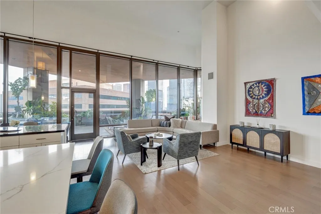 Rare 17th-Floor Live/Work Condo with Private Balcony & Direct Rooftop Access Exceptional 2-story Live/Work residence located on the 17th floor, one of only nine units in the building offering a private balcony and direct access to the rooftop pool and sky deck. This 2-bedroom, 2-bathroom home features high ceilings, spacious living areas, and panoramic views stretching from the Hollywood Hills to Dodger Stadium and the Downtown LA skyline. Enjoy approximately 500 sq. ft. of private outdoor space with unobstructed city viewsideal for entertaining or relaxing. Both bedrooms include en-suite bathrooms, providing comfort and convenience for residents, guests, or work-from-home use. Additional building features include: Two reserved parking spaces with EV charging access Extended guest parking Gym, Business Center, & Multimedia Theater Room On-site storage rentals Amazon package lockers 24-hour concierge and security The 17th-floor Sky Deck offers resort-style amenities including a pool, spa, cabanas, lounge seating, wet bar, and BBQ area. A rare opportunity to own one of the buildings most desirable and uniquely positioned units in the heart of Downtown Los Angeles.
