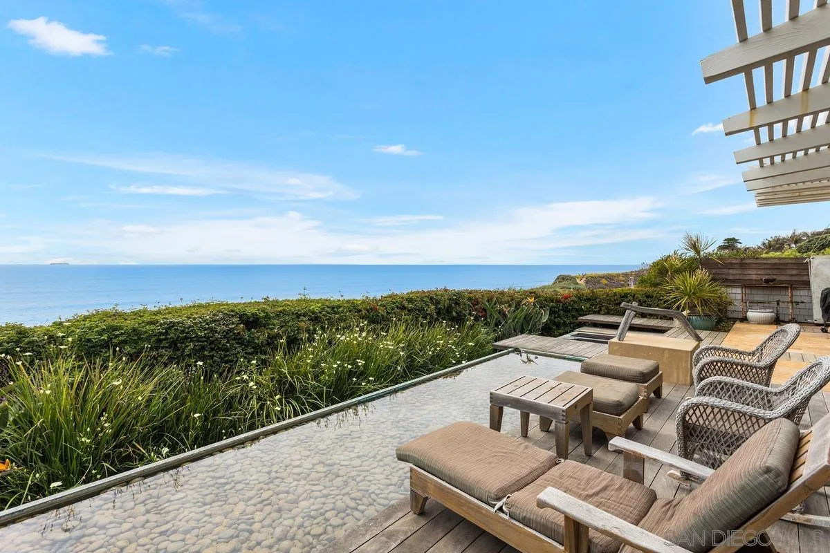Fully furnished, ocean front monthly rental offered at $25,000/month. Renovated 3 bed, 2.5 bath modern oasis on the oceanfront of the iconic DelMar beach. Stare into the beautiful blue waves of the Pacific Ocean & catch sunsets from the most epic spot on the coast! Enjoy panoramic unobstructed oceanviews throughout. This exceptionally designed property was completed with no detail overlooked. Functional, open floor plan with the very best of indoor / outdoorliving. The family room opens to the gorgeous wood deck complete with jacuzzi, cold plunge, covered outdoor patio space, fire pit, sauna, outdoor shower, beautifulspa-like water feature & more. On the entry level is the kitchen, family room, master bed / bath & secondary bedroom with murphy bed & powder bath. Downstairsyou will find a large bunk room bedroom, full bathroom with tub & laundry room. The garage has been converted into the Murphy bed room so parking includes onecarport space. Do not miss this gorgeous oceanfront gem!
