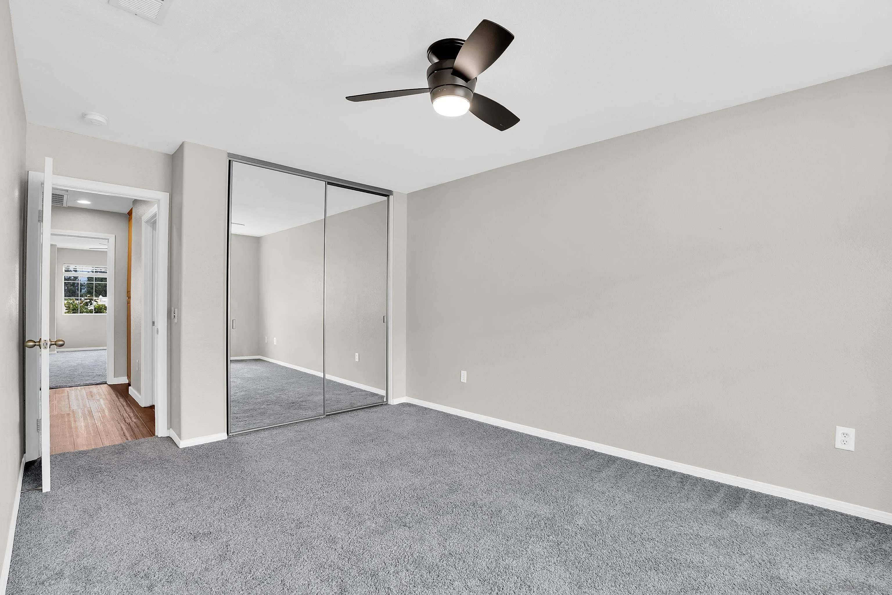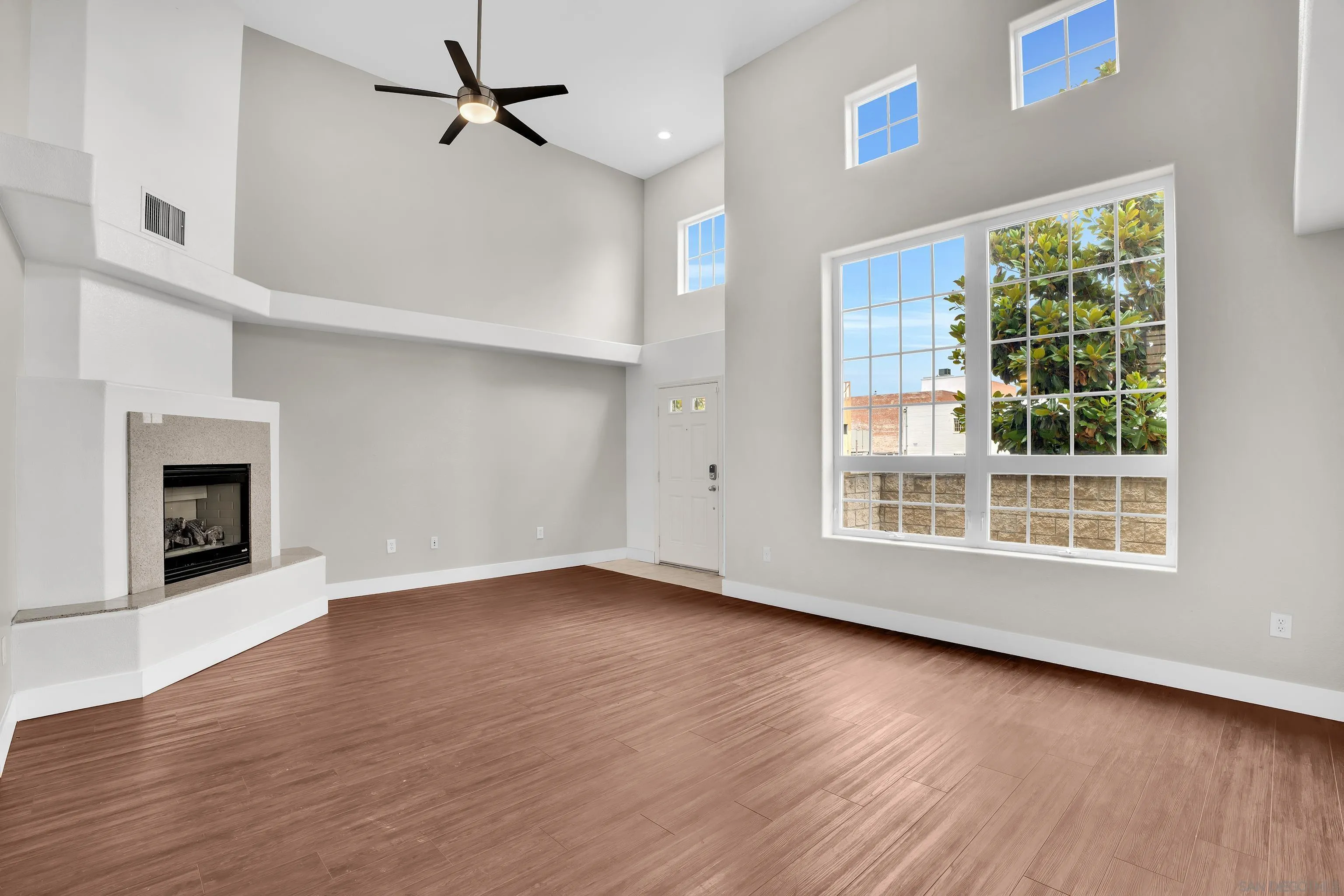 Security deposit special: ONLY $1200 for tenants moved in by 12/1/25. Want cheaper electric? This property has solar panels to bring down your costs dramatically! Go ahead and run that new and powerful air conditioner! Do not miss this Incredibly spacious townhome with towering living room windows and ceilings, 2 car garage, Laundry in unit, Espresso plank flooring, modern rail stairwells, and 3 spacious bedrooms with 2.5 baths! This home has a newer air conditioning system, solar panels to help keep yo! ur electric bills low, and cieling fans too! A nice patio in front opens up to the downtown El Cajon neighborhood right across the street where cafe's, restaurants, shopping and more are right at your fingertips!