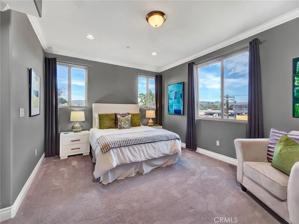 Bright, spacious and private 3 bed, 2.5 bath top-floor, end-unit condo with city views, high ceilings, and a cozy fireplace. The kitchen features a peninsula countertop and stainless steel appliances. The primary bedroom includes an en-suite bath and walk-in closet, while two additional bedrooms share a central bath and offer ample closet space. Enjoy in-unit washer/dryer, 2-car tandem parking in a gated subterranean garage, and access to the on-site gym in this 2008-built building. Fantastic location, walking distance to Valley Village Park and close to studios, Amazon Fresh, Studio City, Tujunga, and the NoHo Arts District. Photos show prior staging; unit will be delivered unfurnished. Sorry, no pets.