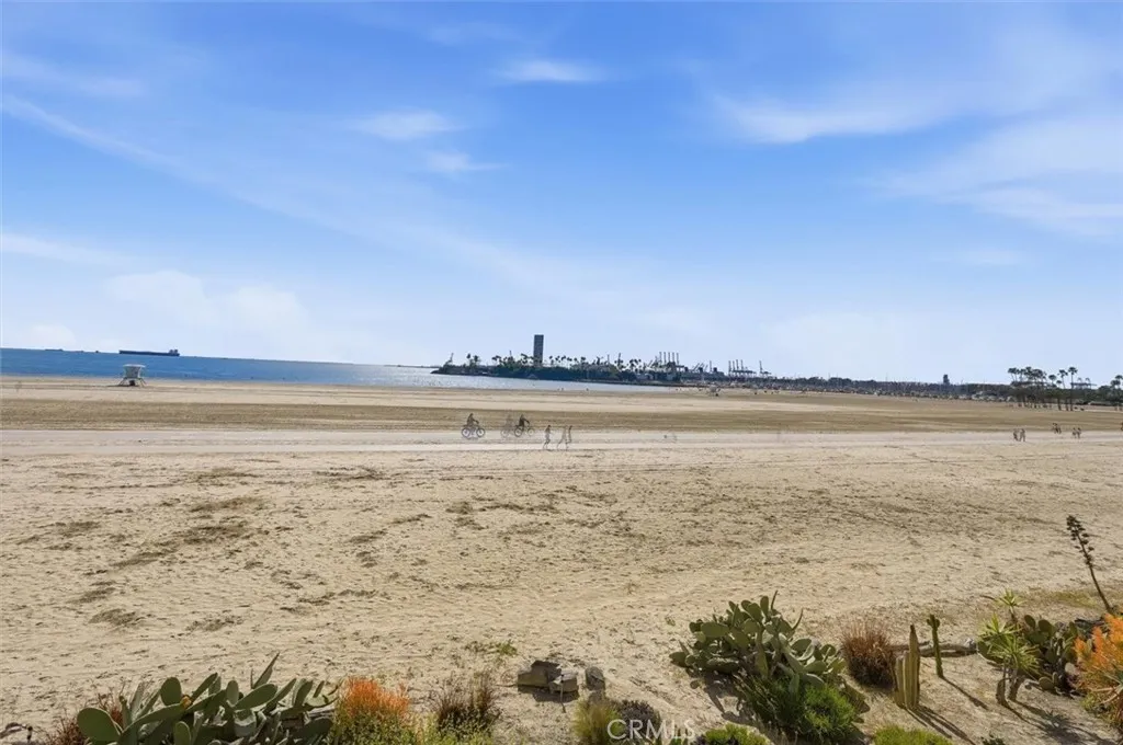 This extensively renovated one-bedroom, one-bath residence is positioned directly above the sand at Alamitos Beach, offering unobstructed southern ocean and white-water views from nearly every room. Completed in 2020 with a full down-to-the-studs renovation, the home reflects a cohesive, high-quality design throughout. Engineered hardwood flooring, recessed lighting with dimmers, upgraded baseboards, and modern interior doors create a clean architectural finish. The kitchen features custom solid wood cabinetry, Bosch appliances, and thoughtful storage, opening seamlessly to the main living space oriented toward the water. A generously sized private balcony extends the living area outdoors, providing a comfortable setting for both quiet mornings and evening sunsets. The ocean-facing bedroom is complemented by a custom walk-in closet with integrated storage and built-in seating. The bathroom offers a spa-caliber feel with a hardwood floating vanity, dual sinks, marble tile, Moen fixtures, and a Brizo waterfall shower. A mounted Smart TV adds a subtle but elevated touch. Additional upgrades include a built-in dry bar with wine refrigeration, Nest thermostat, new HVAC system, and secure ground-level parking with dedicated storage. Residents enjoy resort-style amenities including an ocean-view pool, expansive patio with BBQ areas, fitness center with locker rooms and spa, community room, bike storage, and secure direct beach access. Ideally located near waterfront paths, dining, entertainment, and Rosies Dog Beach, this home delivers a refined coastal lifestyle with everyday con