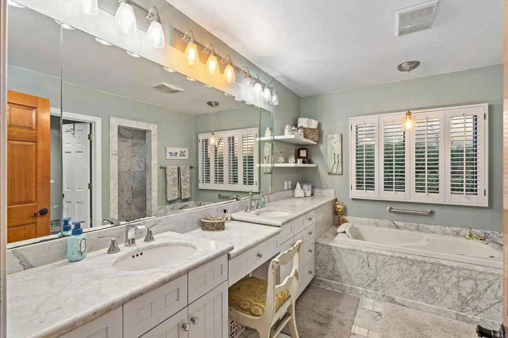 Welcome to Jugador Ct in Lake San Marcos...Set on a quiet private cul-de-sac in the sought-after Lake San Marcos community, this enchanting cottage-style custom home offers 3 bedrooms and 3.5 bathrooms across approximately 2,984 square feet of light-filled living space. Positioned on an elevated .28-acre lot, the property enjoys sweeping golf course, mountain, and sunset views, along with a sense of privacy rarely found. Vaulted ceilings and vinyl windows enhance the homes airy feel and timeless charm, while thoughtfully updated bathrooms provide modern comfort. A dedicated library adds warmth and character, creating an ideal space for reading, working, or quiet retreat. The elevated setting and generous outdoor areas invite indoor-outdoor living, perfect for entertaining or relaxing while taking in the surrounding scenery. Ideally located near golf, lake amenities, walking trails, dining, and resort-style offerings, this home offers a rare blend of charm, views, space, and the Lake San Marcos lifestyle. NO HOA