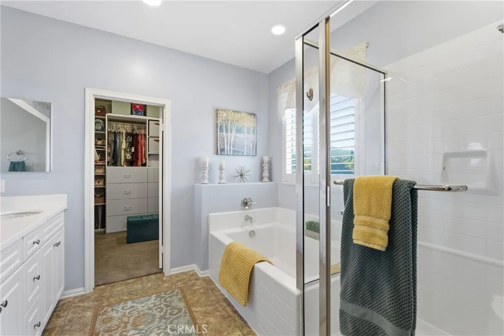 PRICE IMPROVEMENT BY $50,000. Welcome to Serrano Ridge, a gated enclave within the master-planned community of Sycamore Creek. As you enter the gates, youre greeted by a beautifully maintained neighborhood complete with its own private amenities. From the moment you arrive at the property, the curb appeal stands outfeaturing newly installed turf and elegant exterior steps. The charming front porch offers a cozy spot for morning coffee or evening relaxation. Step inside to a stunning foyer showcasing soaring ceilings and an eye-catching drop-down chandelier. The first-floor features wall-to-wall laminate wood flooring and an open layout filled with natural light. The family room offers breathtaking panoramic views, complemented by a cozy fireplace. The kitchen impresses with grey and black granite countertops, abundant white cabinetry, a walk-in pantry, and an additional flex space perfect for extra storage or a small workstation. A stylish half bath for guests and a spacious linen closet complete the lower level. Upstairs, youll find a versatile loft ideal for an office, playroom, or second living area. Two generously sized secondary bedrooms share a full bathroom with dual sinks and a separate tub and shower. The laundry room is conveniently located upstairs as well. The expansive primary suite offers incredible space and comfort, featuring dual sinks, a standalone shower, a soaking tub, and a beautifully upgraded walk-in closet with custom shelving. Additional upgrades include custom interior paint and plantation shutters on most windows throughout the home. Step into the